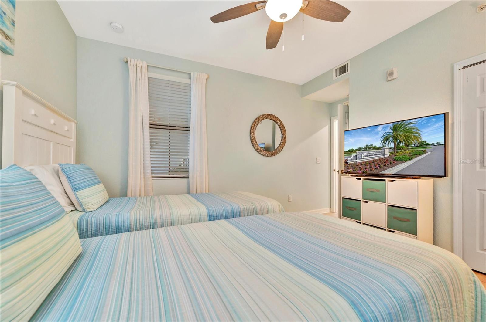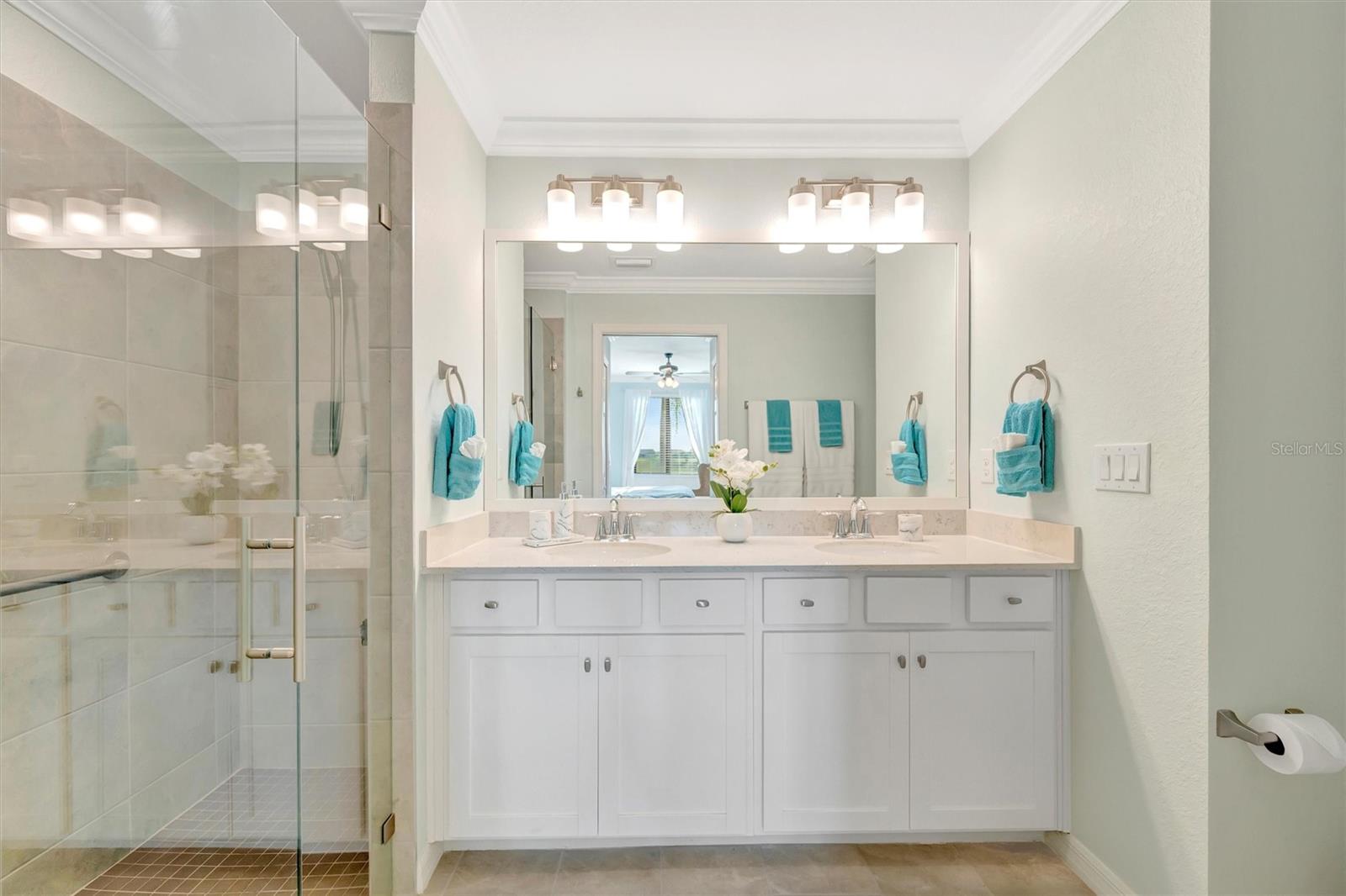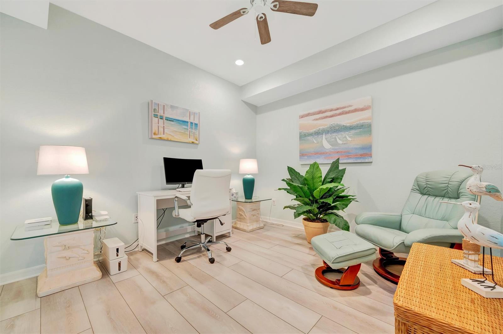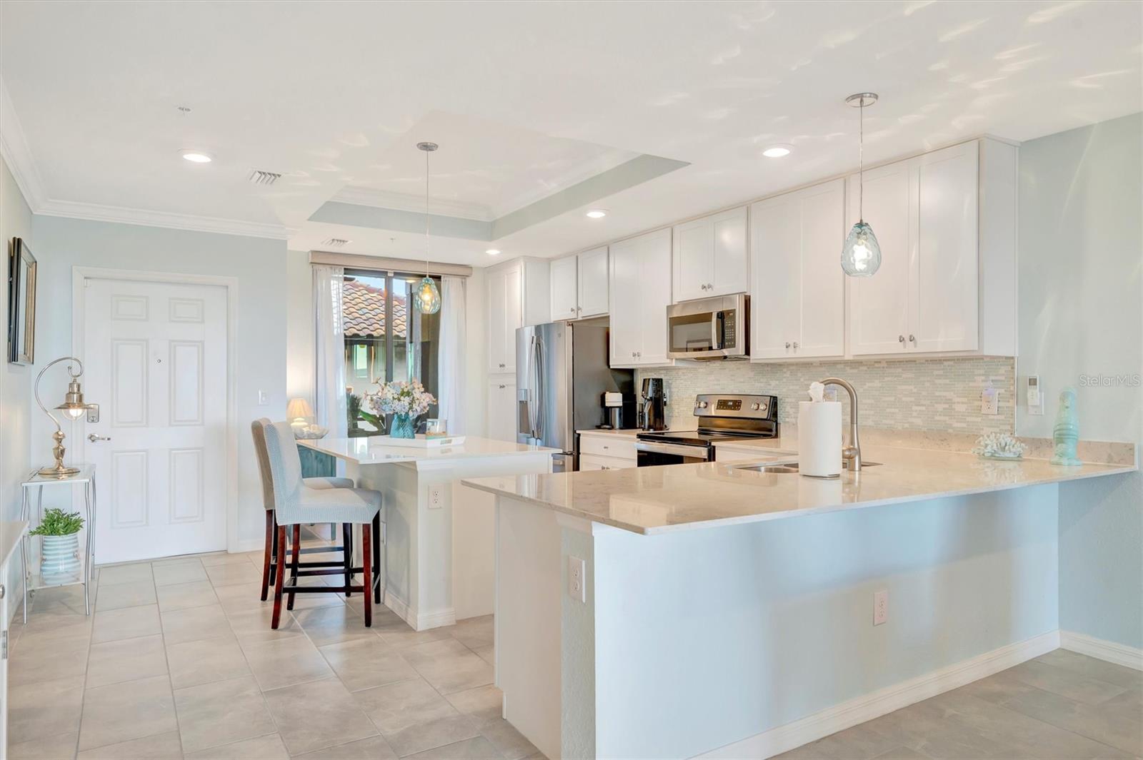 This exquisite home in the prestigious Lakewood National Golf community is a true gem, featuring a wealth of luxurious upgrades that enhance its charm and functionality. Step inside to find stunning luxury vinyl plank flooring that flows seamlessly through the spacious bedrooms, and the den,which can also be used as another bedroom. In the master bathroom, indulge in a spa-like experience with elegant glass shower doors that add a touch of sophistication. Thoughtfully designed custom closets throughout the home offer ample storage, while the striking custom media wall, complete with a cozy electric fireplace, creates an inviting focal point in the living area. Entertain guests effortlessly in the wet bar area, which comes equipped with a specialty refrigerator, perfect for keeping your favorite drinks cool. The kitchen dazzles with custom lighting that illuminates the space beautifully, complemented by fresh, custom paint throughout the home that creates a warm and welcoming ambiance. Enjoy the convenience of motorized shades that provide privacy and control for the large sliders in the kitchen and living area. Finally, the garage features a sleek epoxy-coated floor, adding to the home's overall appeal. Nestled on the 10th hole of the picturesque Piper course, this property offers both luxury and an enviable location for golf enthusiasts,GOLF MEMBERSHIP Included.Enjoy tons of amenities which include;zero entry pool with two waterfalls,tiki bar,fitness center,full service spa,pickleball,tennis,bocce ball and a gorgeous 28,000-square foot clubhouse!