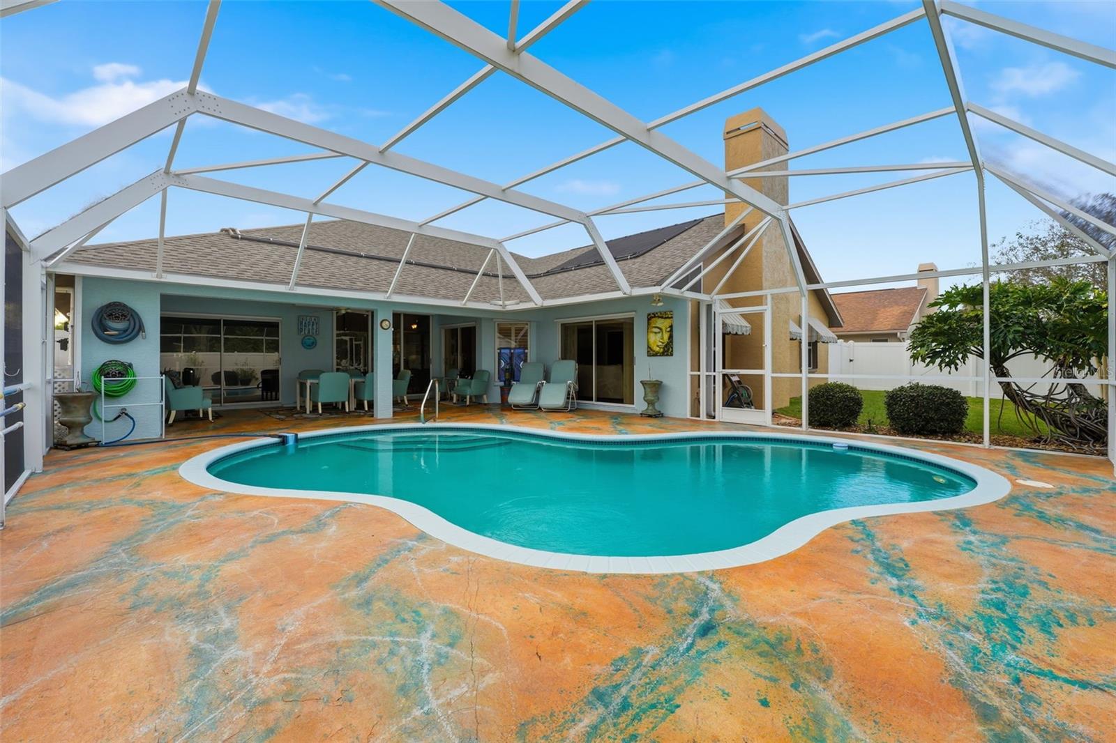 Welcome to the updated Split Bedroom Pool home in the community of River Landings Bluff. Relaxing West facing entry porch sits just off the front double doors. Once inside, one is welcomed by the open and airy concept Living/Dining Room combo. Look straight ahead to the lovely heated pool screened lanai, accessed by triple sliders. From there, stroll to the updated kitchen/family Room with plenty of eating and gathering space for all. The standout in this room is the lovely center focal floor to ceiling fireplace for cozy enjoyment. On one side of the home is a large primary bedroom with dual walk-in closets and a great en-suite bathroom with dual vanities plus separate tub and shower. Two additional good sized bedrooms and updated bath grace the opposite side of the home. Outside, a private fenced yard awaits with an array of potted and planted offerings-all with updated irrigation for convenience. The lanai enclosure was replaced in 2018 and concrete floor finished. The pool - with new pool pump - is heated by both solar and heat pump, so year round swimming is in your future! The roof and soffits were replaced in 2022 and new A/C evaporator coil and lines. Hurricane Shutters, epoxy garage floor and stamped concrete driveway are just a few of the nice surprises in this home. River Landings Bluff is a small community with a pool and day dock with access to the Braden River, Ward Lake and Jiggs Landing. From the pool/dock area, manatees and dolphin are occasionally spotted! The community is very convenient to SR70, I75, University Park and Lakewood Ranch.