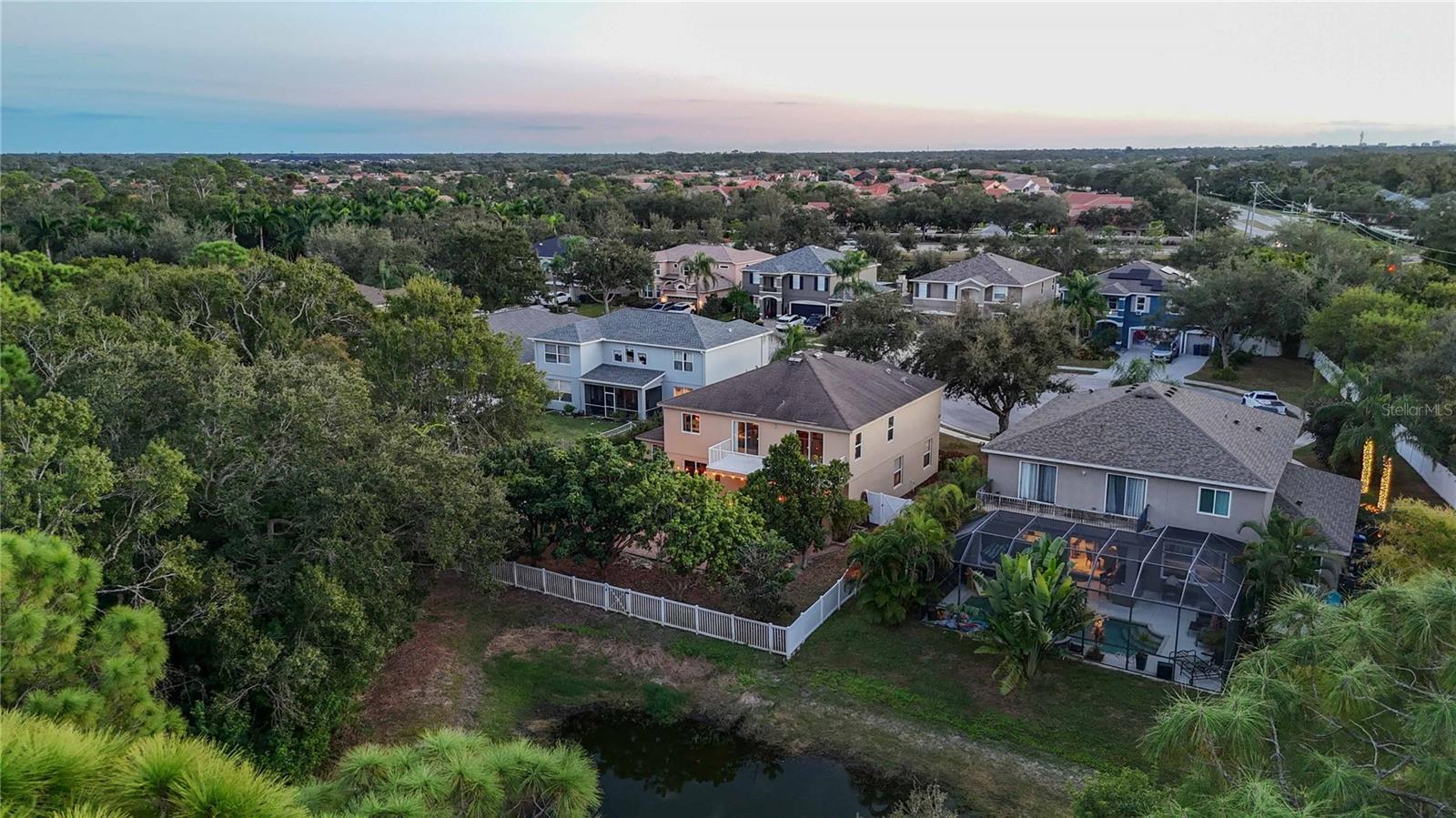 Welcome to one of Barrington Ridge’s most picturesque settings! This exceptional homesite is tucked away at the end of a quiet cul-de-sac and offers serene views of a tranquil pond framed by a lush preserve. The combination of natural beauty and thoughtful positioning provides outstanding seclusion and a soothing, scenic backdrop for everyday living. Step inside to tall ceilings and an abundance of natural light that fills the casual living and dining areas, creating a welcoming sense of space from the moment you enter. The gourmet kitchen is thoughtfully designed and perfectly positioned to keep you connected while cooking and entertaining. Just off the kitchen, an inviting family room provides a comfortable space for gatherings, movie nights, or relaxed conversation. With 3,270 square feet, this home features a wonderfully flexible layout that includes 4 generous bedrooms, 3.5 bathrooms, an office/den, and a versatile bonus room complete with its own private second-floor balcony—ideal for enjoying sweeping water and treetop views. Outdoor living shines here as well. The extraordinary paver patio and custom built fire pit set the stage for memorable evenings, peaceful morning coffee, or hosting friends in an alfresco setting. Located in the highly desirable Barrington Ridge community, residents enjoy access to a sparkling resort-style pool with waterslides and a charming park with a playground. All of these amenities are just moments from UTC Mall, SRQ Airport, shopping, dining, and countless local conveniences.