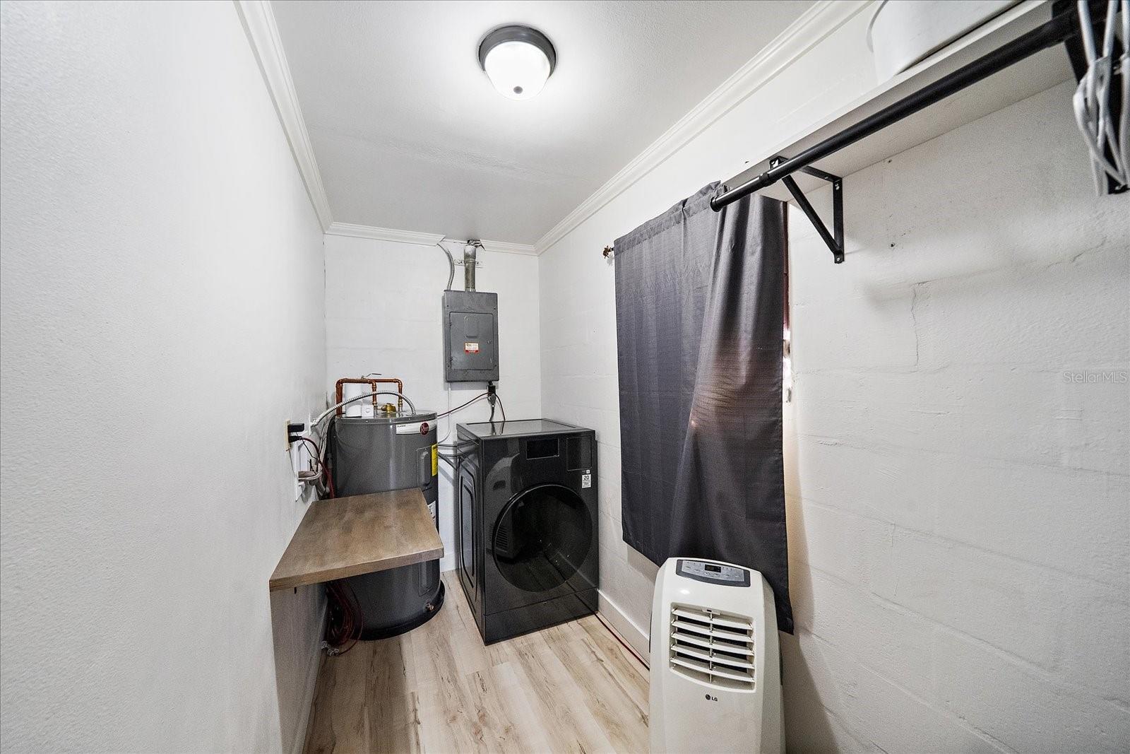 This extensively updated home in Bradenton, Florida offers a rare combination of central location, privacy, and usable lot size. Set back from the street, the property provides a quiet residential feel with generous space between neighboring homes while remaining close to everyday conveniences. The home has been thoughtfully improved over several years with major system upgrades already completed. Updates include a new roof in 2020, HVAC system replaced in 2023, additional blown-in insulation added in 2025, and a new water heater installed in 2025, offering long-term peace of mind for the next owner. Inside, the kitchen has been remodeled with new appliances, a tile backsplash, butcher block countertops, freshly painted cabinets with updated hardware, and a custom pantry cabinet with a glass door added in 2025. The layout is functional and welcoming, designed for functional daily living. Flooring throughout the home has been upgraded, including porcelain tile in the main living areas, replaced carpeting in secondary spaces, and luxury vinyl plank flooring in the laundry and closet area. The laundry and closet remodel also include custom shelving, storage cabinetry, trim, & a combo washer and dryer unit. All baseboards throughout the home were replaced in 2025, creating a cohesive and updated interior finish. The bathroom has been refreshed with a new vanity with quartz countertop and a modern skirted Kohler toilet, continuing the home’s clean and contemporary aesthetic. Updated ceiling fans and door hardware add to the move-in-ready appeal. Outside, the property features a fully fenced backyard with a six-foot wooden privacy fence and double gate, ideal for pets, trailers, boat/RV storage, outdoor entertaining, or future enhancements, the home also includes 2 storage sheds and a hot tub. The front yard landscaping was completed in late 2025 with fresh marble chip gravel beds, improving curb appeal and ease of maintenance. Located near G.T Bray Park, Easy access to the beach, State College of Florida, and the USF Sarasota-Manatee campus, this home offers convenient access to education, recreation, shopping, and dining while maintaining a private residential setting. With major updates already completed and a desirable central Bradenton location, this home is well positioned for full-time living, rentals, & long-term ownership.