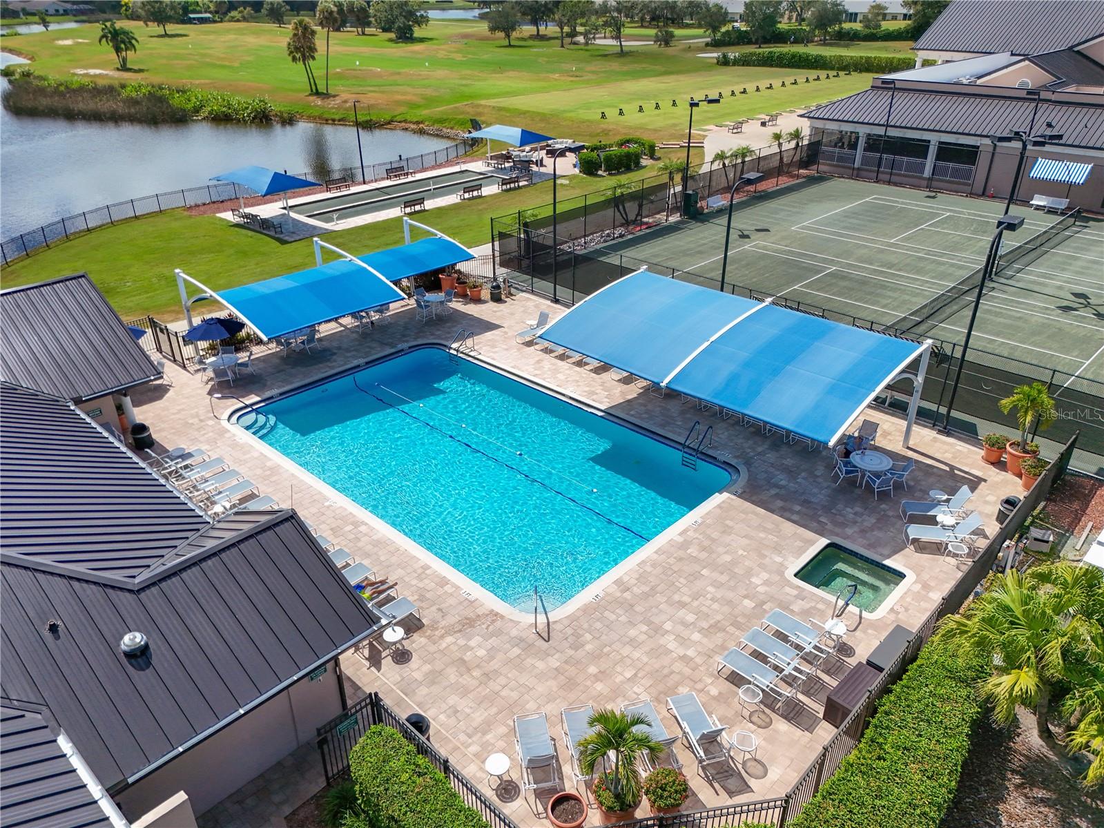 All I can say is WOW! Second floor bedroom/2 full bath remodeled condo in the Terraces Association of Tara Golf and Country Club, has it all. Turn-key furnished with new AC in 2025 (10 year transferable warranty) Hurricane sliders on the lanai, ( $15,000 value) with screens, which overlooks the second hole of the championship golf course and picturesque lake. Fantastic sunsets are yours as you retreat to your lanai or primary bedroom. Lanai has a sleeper sofa and privacy shades for an extra guest room when needed. Kitchen has been remodeled, walls down to open it up. New cabinetry, stainless appliances, large island and bar frig, granite counters, double stainless sink and pull down stainless faucet. Computer/desk area. New luxury vinyl plank flooring throughout the home. Both baths have been updated with tasteful vanities. Living room has storage closet. Great location, close to the private pool and hot tub for the Terrace residents only. Bright morning sun in the kitchen and afternoon sun fills the lanai with breathtaking sunset views. New Pickleball facility is open with 5 courts and undercover area with rest rooms. Clubhouse to be remodeled in 2026. No assessments to the community on any of the projects. Close to shopping, dining, highways, airports and the best beaches on the west coast of Florida. Class A membership . Welcome to Taradise!