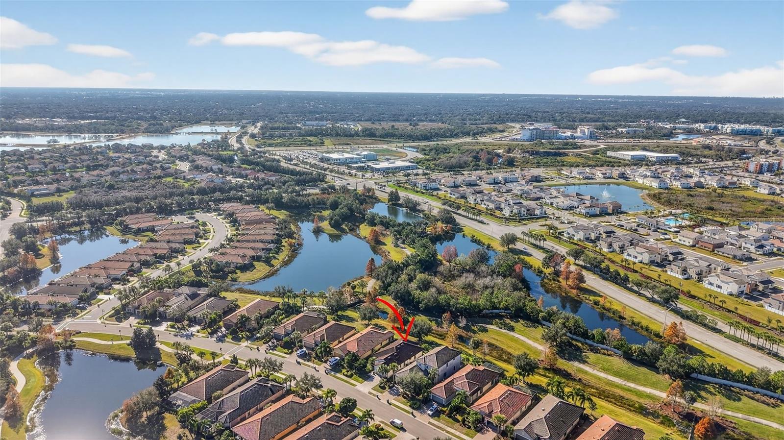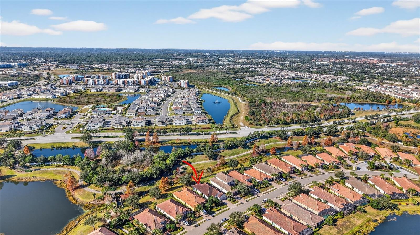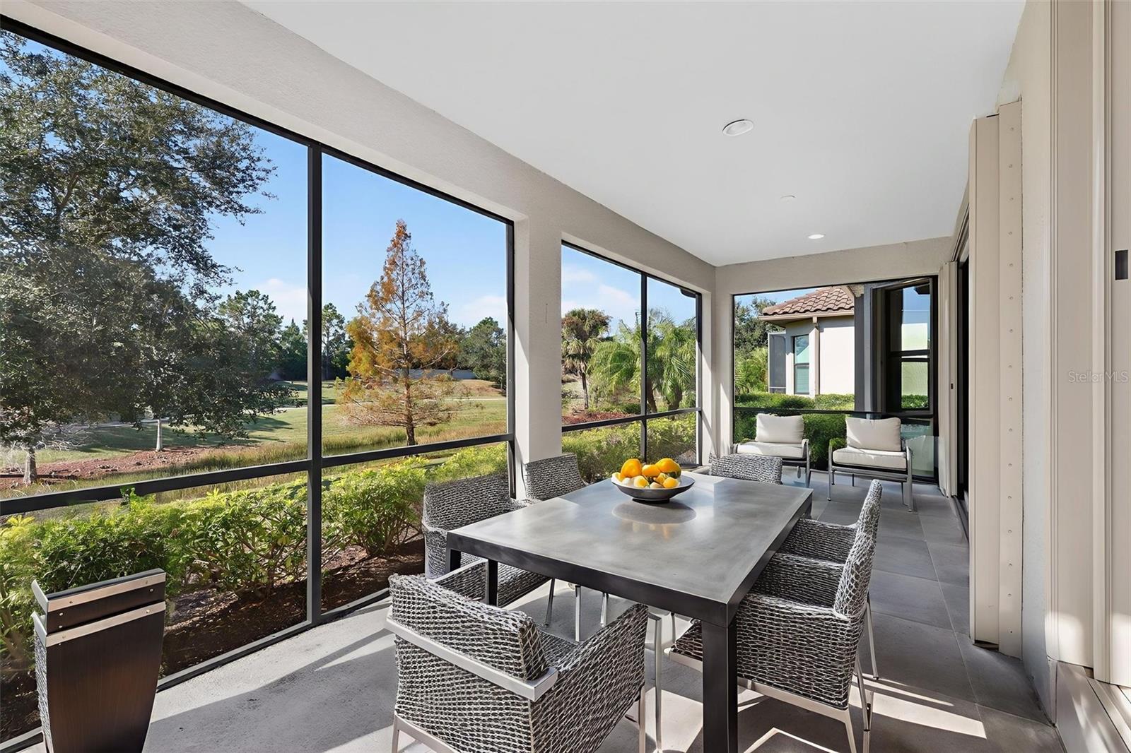 One or more photo(s) has been virtually staged. One or more photos have been virtually staged. Welcome to this stunning, sun-drenched home in the highly sought-after Esplanade Golf & Country Club at Lakewood Ranch, where resort-style luxury meets low-maintenance living—and there are no mandatory golf dues! This beautifully updated residence features 2 spacious ensuite bedrooms, a stylish half bath, and a versatile flex space ideal for a home office, library, or den. Perfectly situated just a short walk to the vibrant Amenity Center, this home combines comfort, convenience, and elegance. Step inside to find an open and airy layout filled with natural light, enhanced by wood-look luxury vinyl flooring and fresh, neutral tones throughout. In 2024, plush carpet was added to both bedrooms and the flex room, adding warmth and comfort. The chef-inspired kitchen was completely transformed in 2025 with gorgeous professionally installed cabinetry, sparkling granite countertops, an oversized under-mount granite sink, sleek new faucet, stainless steel microwave, eye-catching backsplash, and a generously sized center island—perfect for entertaining. The serene primary suite offers a spa-like retreat with a large walk-in closet, dual vanities, upgraded lighting, and designer touches. Additional features include freshly painted exterior (2021), accordion hurricane shutters (2021), and enhanced tropical landscaping for added curb appeal. Set within a lushly landscaped, gated community, residents enjoy access to world-class amenities including resort pools, a full-service fitness center, tennis and pickleball courts, spa, on-site dining, walking trails, and more. With a pay-to-play golf model, you can enjoy the lifestyle without the dues. Don’t miss the chance to make this exceptionally upgraded, move-in ready home your own!