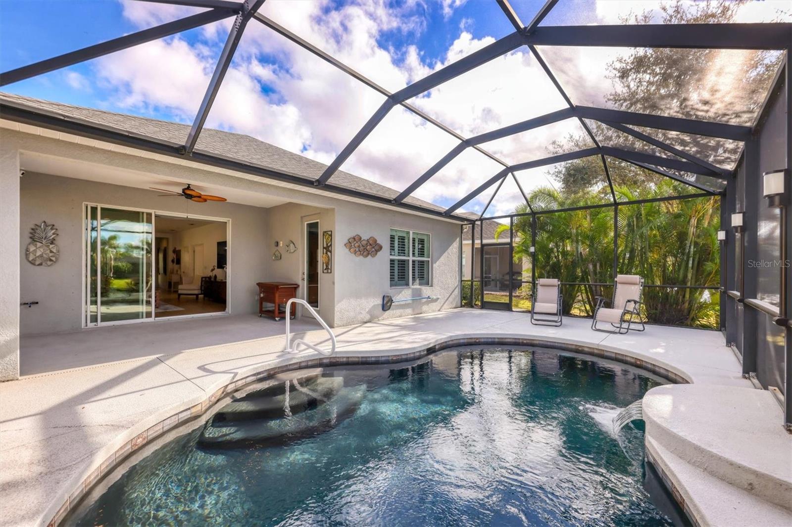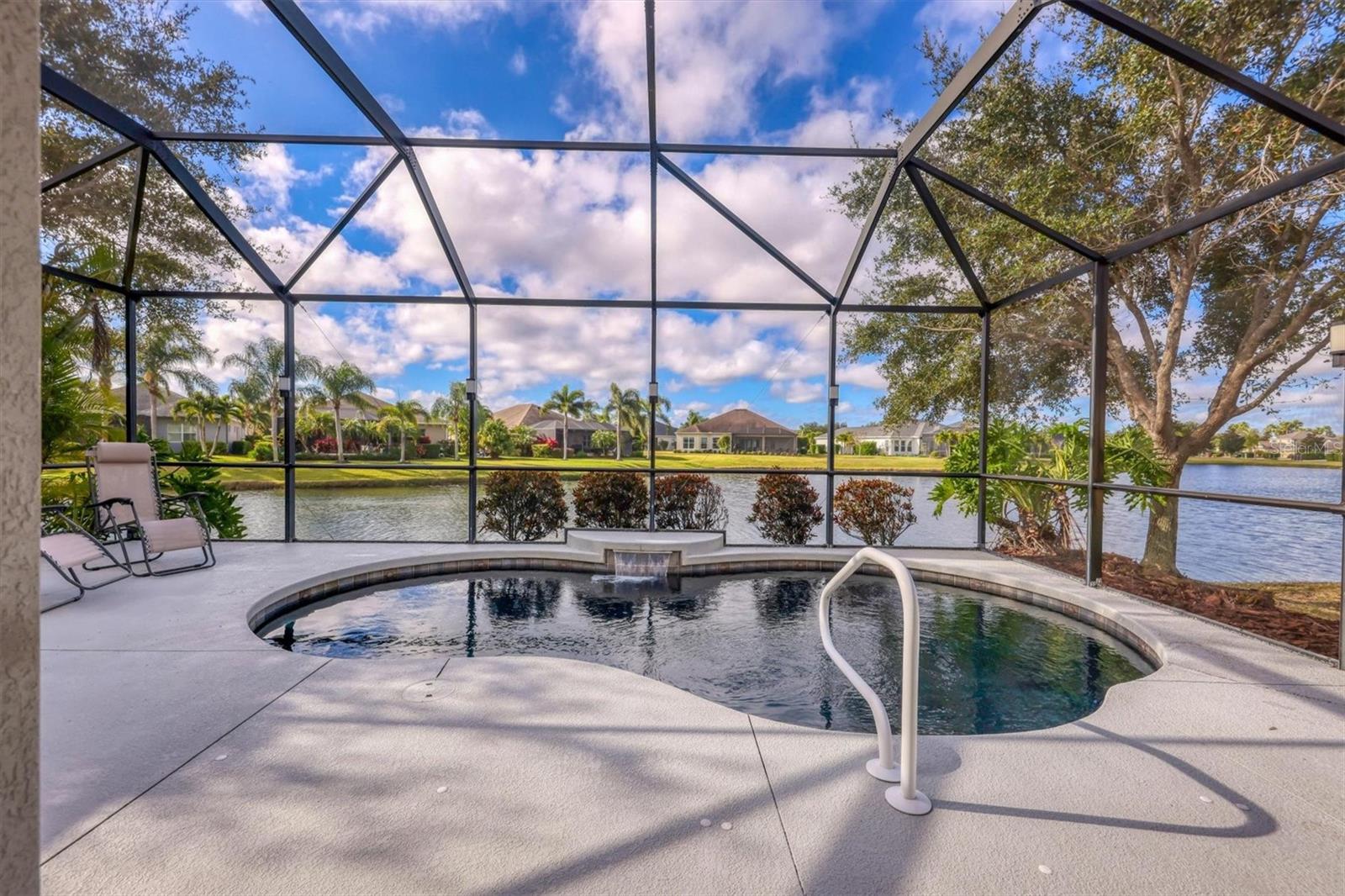 Welcome to your piece of Paradise! This Turnkey-Furnished 3-bedroom, 2-bath home with a den/office/flex room perfectly positioned on a serene lake with a screened, heated saltwater pool and unobstructed water views is just what you have been looking for! Designer furnished throughout with high-quality Tommy Bahama furnishings, no expense was spared in this immaculate residence. Located in the gated community of Central Park, the home features a spacious great room, open floor plan, and an impressive list of upgrades. Highlights include newer windows, upgraded cabinetry, cultured marble countertops, and top-of-the-line GE Monogram stainless steel appliances with natural gas. The luxury primary suite offers dual sinks, tray ceilings, upscale fixtures, and a huge walk-in closet with custom shelving. Additional features include plantation shutters throughout, recessed lighting, security system, whole-house surge protector, custom closet systems, and tile in all wet areas. The extended screened lanai is ideal for entertaining, featuring ambient lighting surrounding the heated saltwater pool and showcasing breathtaking lake views. Central Park offers low HOA fees and outstanding amenities, including a 10-acre park, two dog parks, tennis and pickle ball courts, sports field, and splash pad. Enjoy the convenience of being near the elementary and middle schools and just minutes from I-75, UTC Mall, Lakewood Ranch Main Street, top-rated dining, and the beautiful Gulf Coast beaches. Taxes include CDD fee. Schedule your private showing today—this exceptional home is truly a must-see!