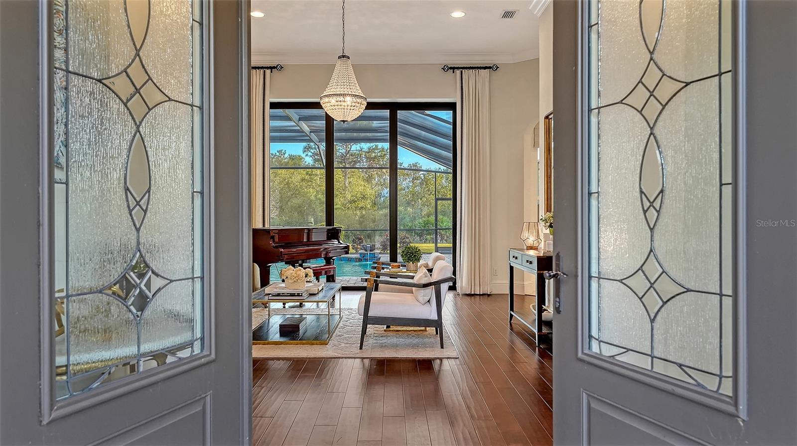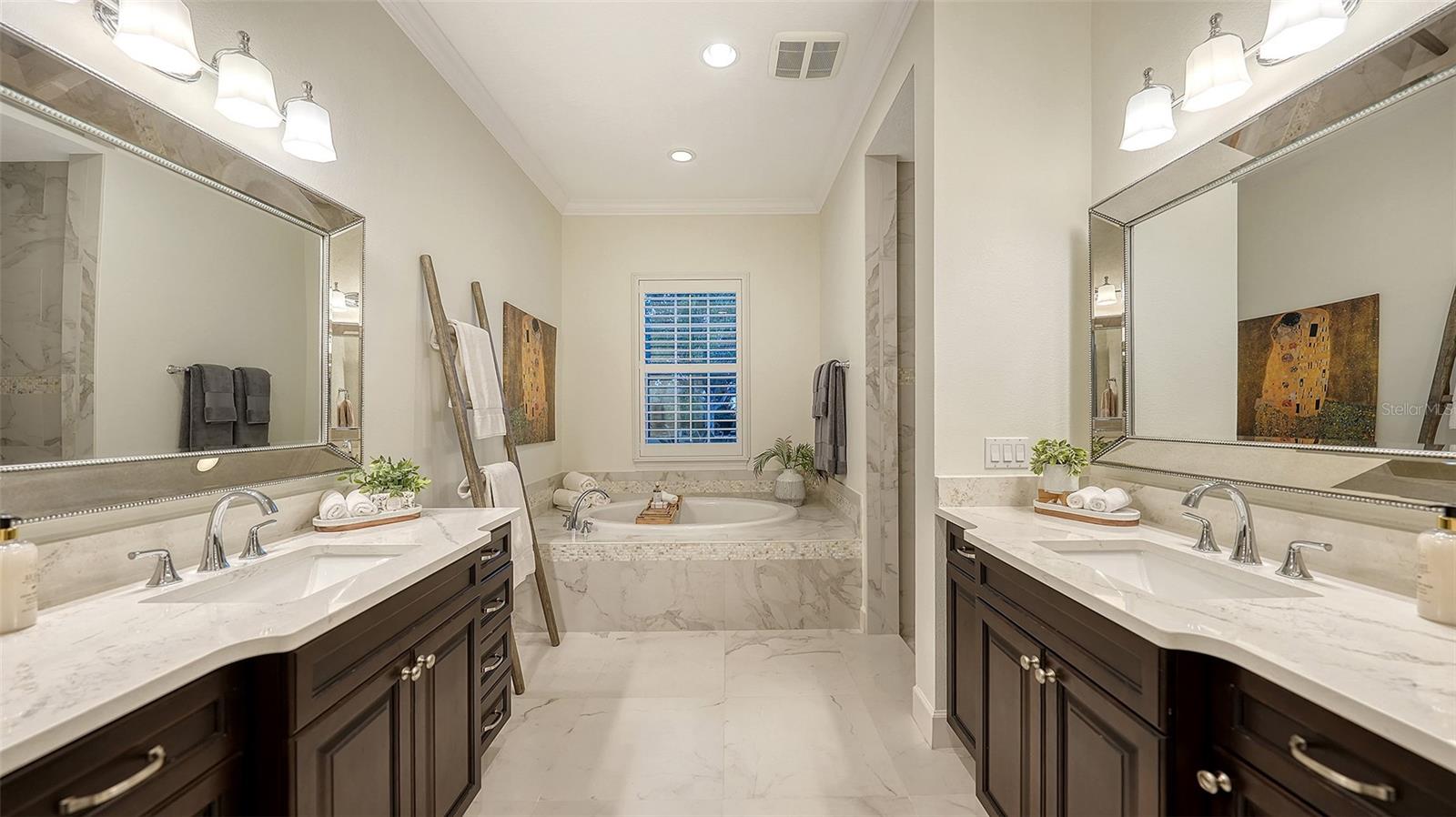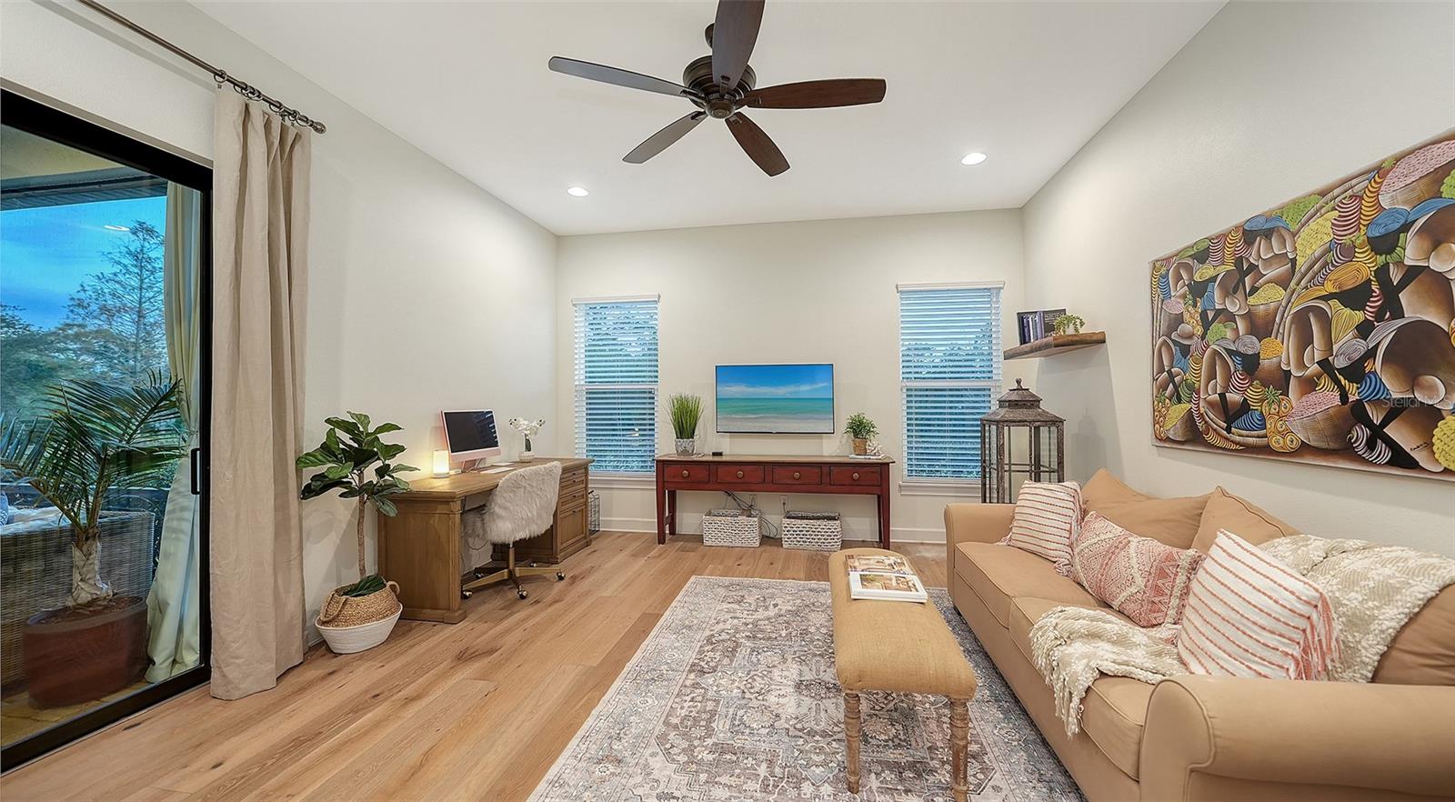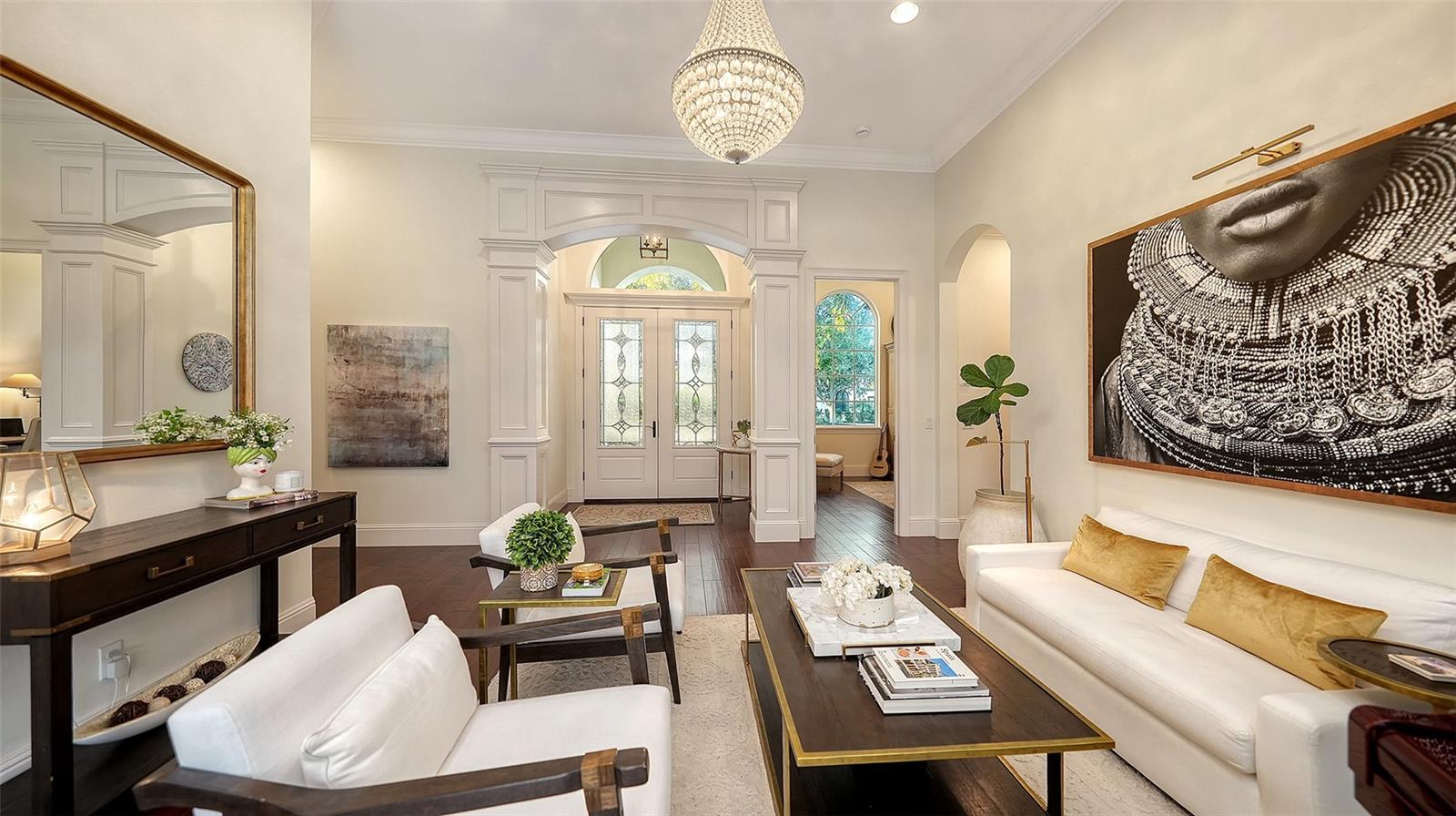 Set within the prestigious gates of The Concession, this exquisite four-bedroom John Cannon residence captures the essence of refined Florida living. Sunlight pours through expansive windows and glass doors, illuminating beautifully curated interiors and framing tranquil preserve views. Thoughtfully designed to balance elegance and comfort, the home offers both formal and casual living spaces ideal for entertaining or unwinding in style. Rich wood and tile flooring, crown molding, and timeless architectural details create a warm, sophisticated atmosphere throughout. The formal living room flows seamlessly to the pool terrace, setting the stage for memorable gatherings. At the heart of the home, the gourmet kitchen impresses with quartz countertops, a statement center island, designer tile backsplash, and top-tier appliances—perfect for hosting everything from intimate dinners to festive celebrations. A flexible den and spacious bonus room provide endless possibilities for work, relaxation, or play. The serene primary suite is a private retreat featuring wood floors, a generous walk-in closet, and a spa-inspired bath with soaking tub and separate walk-in shower. Step outside to your own resort-style escape on the screened lanai, where a sparkling heated pool, covered entertaining area, and peaceful preserve backdrop invite year-round enjoyment. Additional highlights include a large laundry room, impact windows, and a three-car side-entry garage. The Concession is renowned for its majestic estates, privacy, and timeless elegance—offering a lifestyle of distinction just minutes from premier shopping, dining, world-class beaches, and Sarasota’s vibrant arts and culture scene.