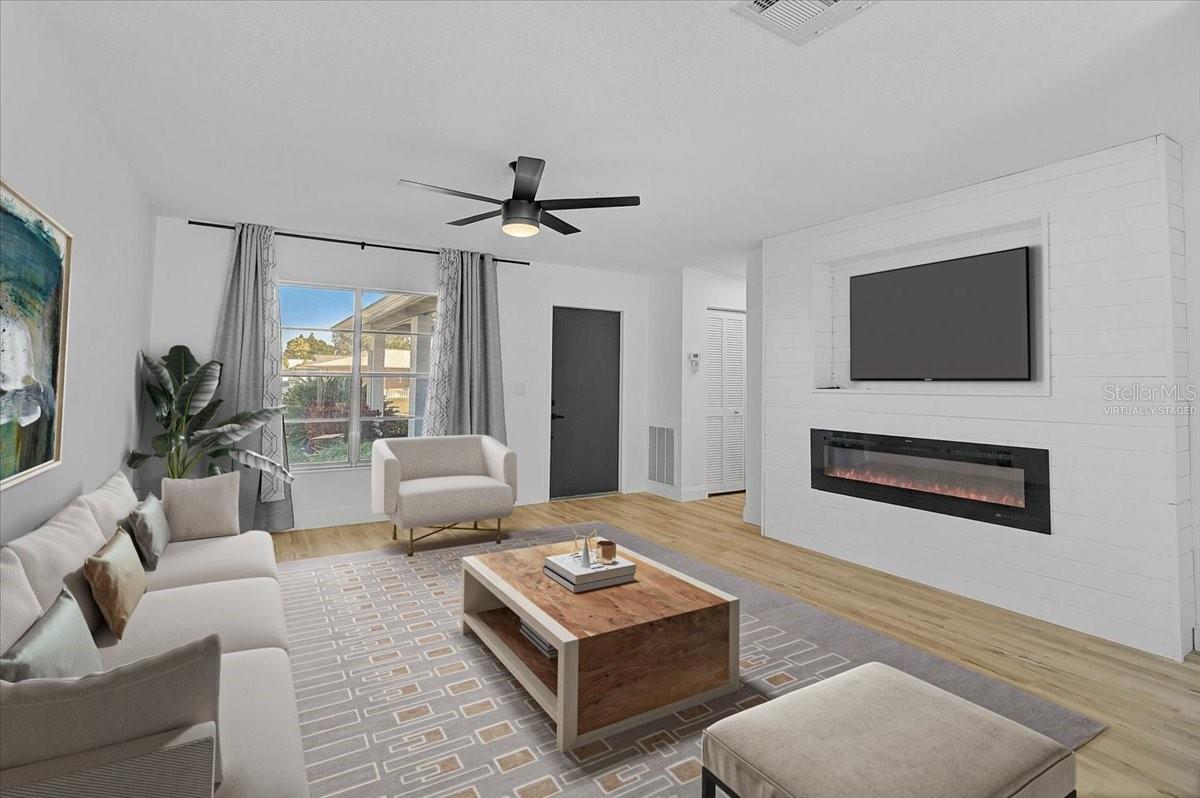 One or more photo(s) has been virtually staged. Step inside and feel instantly at home in this beautiful, immaculately maintained home located in one of Bradenton’s most desirable neighborhoods. Nestled in the picturesque Village Green community, this inviting residence offers a prime location with spacious interiors and effortless comfort, a perfect fit for year-round residents, snowbirds, or anyone seeking that ideal Florida lifestyle. Major updates include a Brand-New Roof and Recently Installed HVAC System, providing added peace of mind and making this home truly move-in ready. The updated galley-style kitchen features shaker-style cabinetry, quartz countertops, and a convenient service window that opens directly to the spacious, sun-filled Florida room. This versatile living space serves as an inviting setting for morning coffee, relaxing after a day at the beach, hosting guests, or simply streaming your favorite TV shows. The living room features a beautiful electric fireplace, creating a warm and inviting focal point. Updated bathrooms add modern comfort, while the spacious primary suite includes a walk-in closet with custom built-ins, excellent for organization and storage. The large, fully fenced yard provides exceptional flexibility with plenty of room for a future pool, outdoor gatherings with family and friends, and ample space for RV or boat parking, ideal for those ready to embrace coastal living. The two-car garage offers extensive built-in storage, easily accommodating household items, beach and fishing gear, tools, and seasonal belongings, an added bonus for snowbirds seeking convenience and organization. An optional HOA allows flexibility with NO Deed Restrictions, making this home well suited for full-time living, seasonal use, or an investment opportunity. Located less than seven miles from Anna Maria Island and Bradenton’s spectacular Gulf beaches, or just a short drive to De Soto National Memorial and the nature trails and kayak launches of Robinson Preserve. Minutes from vibrant Downtown Bradenton, home to the Riverwalk, farmers markets, live music, art galleries, waterfront dining, and convenient access to public boat ramps. Do not miss your opportunity to own this exceptional home, schedule your private showing today and start enjoying the Florida lifestyle!