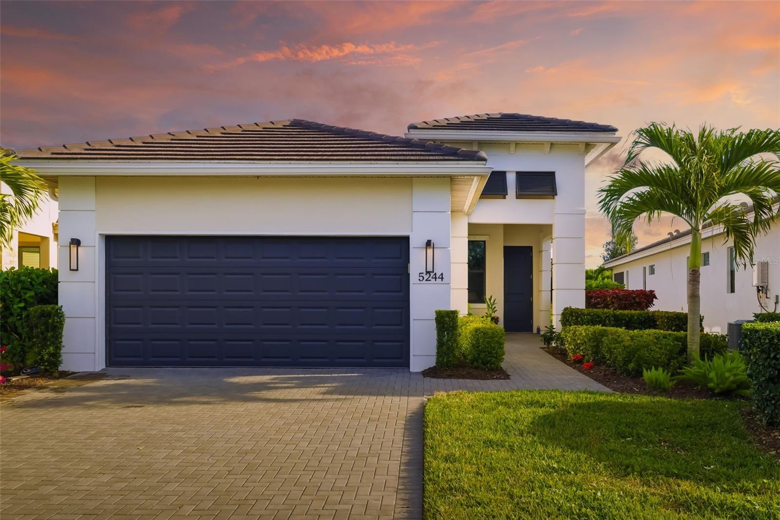 Welcome to a sleek, modern residence in Cresswind at Lakewood Ranch, a premier 55-plus community defined by clean architectural lines and sophisticated design. This 1,852-square-foot home features two bedrooms, two baths, a den, and an open floor plan that enhances both functionality and style. The interior showcases a crisp palette of polished white tile and pale walls, with automated window treatments and abundant natural light throughout. The kitchen is designed for seamless integration and visual clarity, offering quartz countertops, high-gloss white cabinetry, an oversized island, and a walk-in pantry. The primary suite includes a walk-in closet and a spa-style bath with a walk-in shower accented by a vertical listello. Additional highlights include a den ideal for remote work or media, and a two-car garage with epoxy flooring. Sliding glass doors connect the great room to a spacious screened lanai with stone pavers, ideal for outdoor dining and lounging. Cresswind is a vibrant, amenity-rich community that promotes connection, wellness and leisure through regular resident events, a smart fitness center, resort-style and resistance pools, tennis and pickleball courts, a dog park, and an event plaza hosting food trucks, concerts, and social gatherings.
