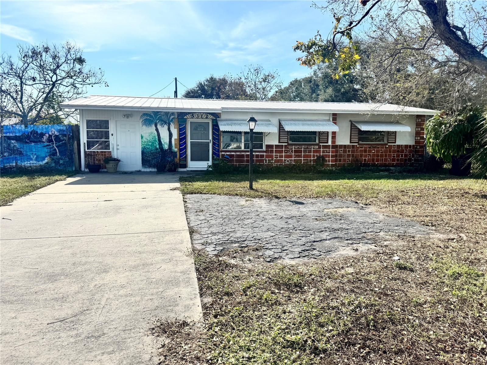 This 2 bedroom, 1 bath single family home has a versatile opportunity, perfect for a permanent resident, investment property or a vacation rental, especially with no deed restrictions and allowing short term rentals in the neighborhood. Nestled on just over a 1/4 of an acre lot, the property showcases a Florida room, screened lanai, leading to a spacious backyard. The metal roof was installed in 2017, provides durability, and the home's open floor plan enhances it's appeal. The previous carport was converted by the previous owner and was converted into a storage area, features a separate entrance that allows it to serve various purposes, such as a in law suite or teen retreat. Located conveniently near shopping and restaurants and just a short drive to the beach in one direction and I75 in the other direction. Lots o f possibilities here, come today and take a look!