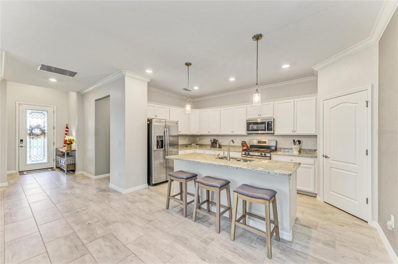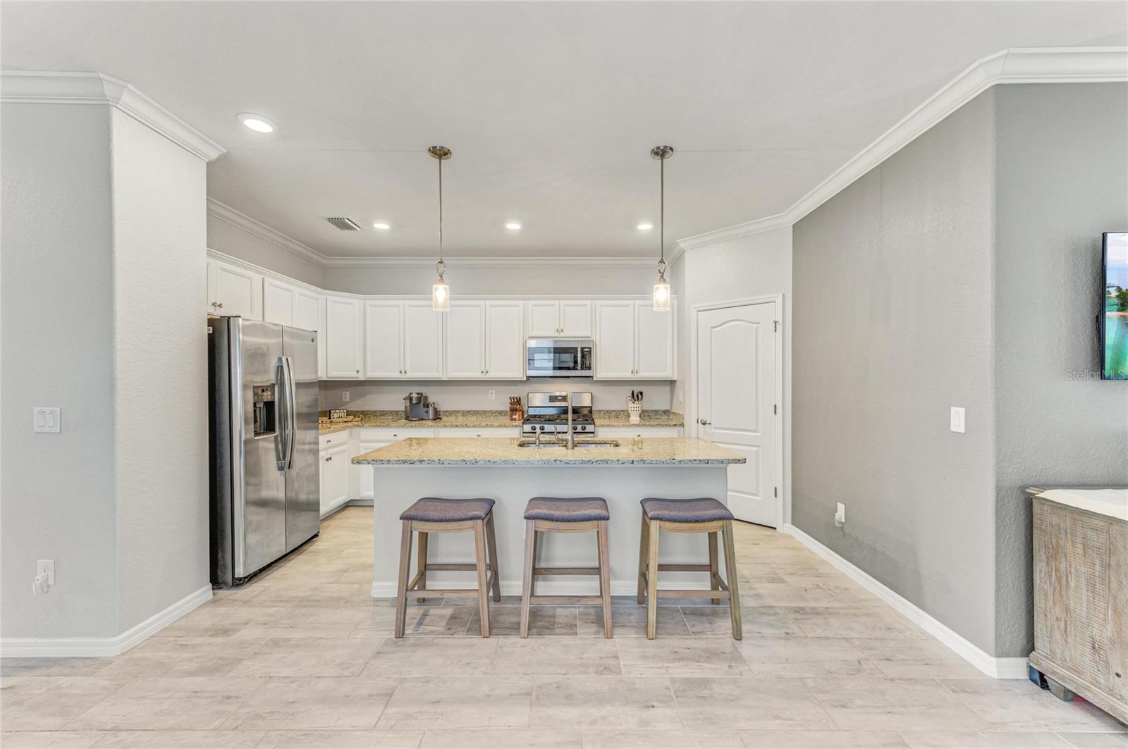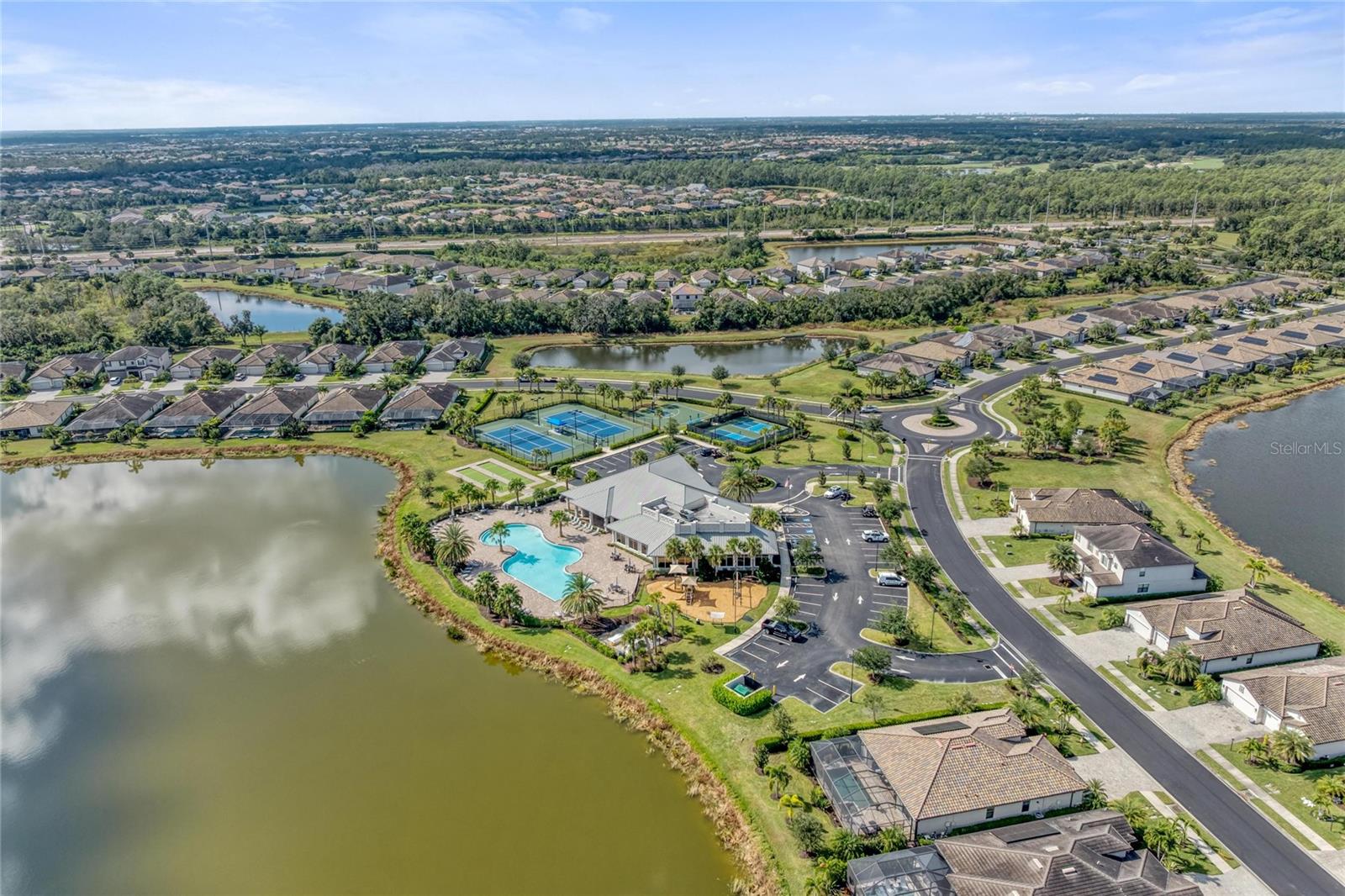 Discover this move-in-ready gem in beautiful Lakewood Ranch! Located in the gated community of Polo Run, this is Lakewood Ranch's ONLY solar-powered community. This home features an open-concept living room and dining room, with a modern open kitchen, equipped with a spacious quartz island and stainless steel appliances, including a natural gas stove. Soft close cabinetry, smart home technology throughout, a tankless water heater, and a durable tile roof add to the ease and comfort of this home. With 3 bedrooms and 3 full baths, you have plenty of room to host family and friends or set up a home office. In addition to a beautiful interior, the seamless lanai and modern, sleek, custom built heated pool and spa make this property perfect for enjoying the beautiful Florida weather. Equipped with a fenced-in backyard, that looks out onto greenery and a pond, you can enjoy all of these top-notch features with exceptional privacy. Flow effortlessly from the open floor plan interior to the beautiful and tranquil exterior for entertaining ease. With a North-South exposure you can enjoy sunlight from sunrise to sunset! Enjoy premium community amenities such as a resort-style clubhouse, heated pool, BBQ area, fitness studio, tennis, pickleball, bocce, basketball, dog park, and playground—all in a prime location minutes from trendy shopping, renowned restaurants, the UTC Mall, Lakewood Ranch's Town Center, schools, parks, premier sports fields, and easy access to major airports. You won't want to miss this opportunity!