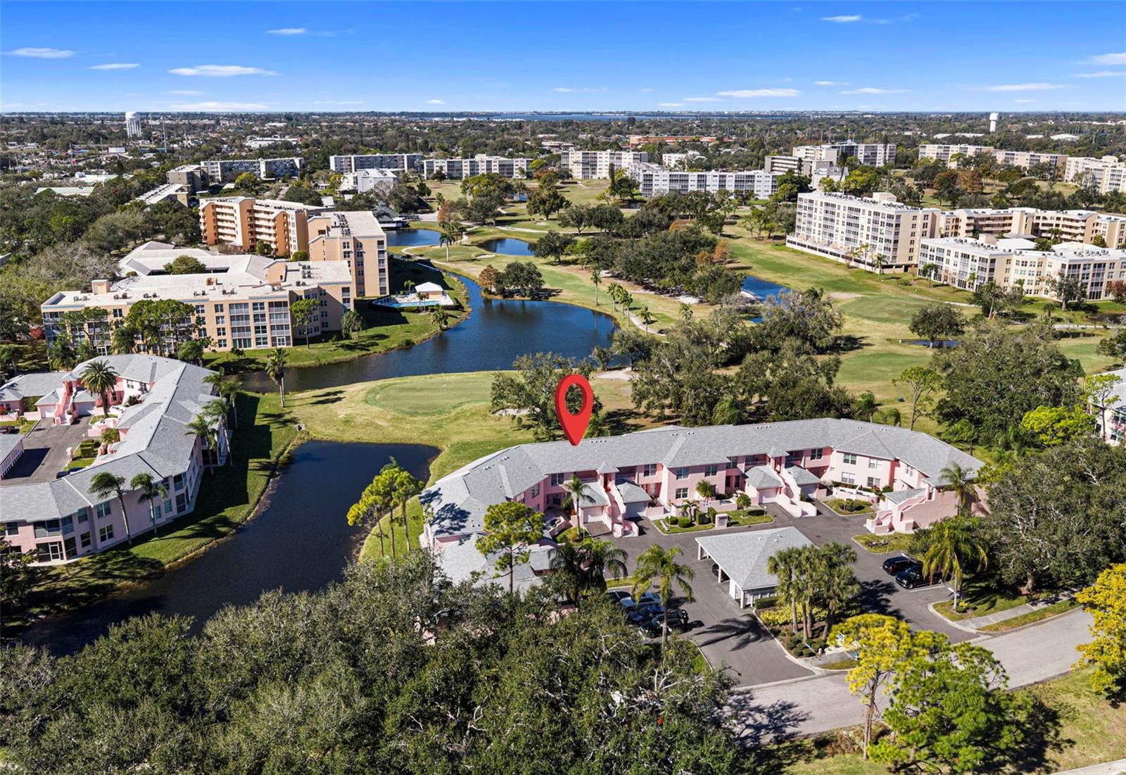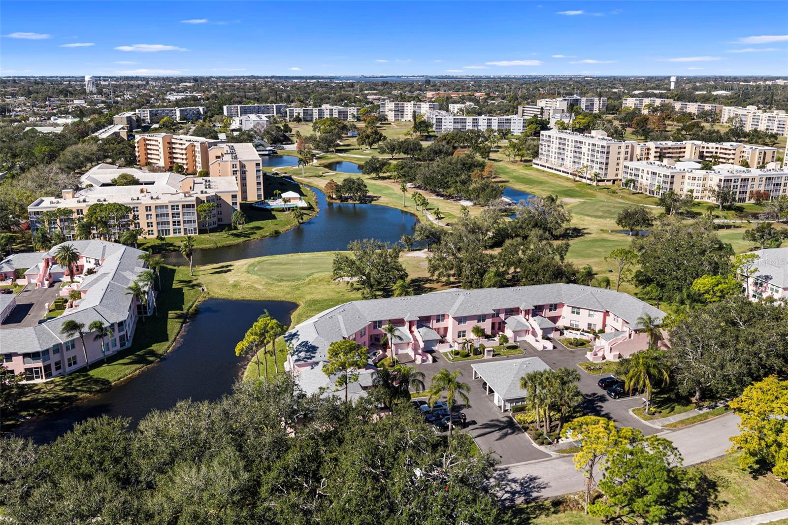 YOU DON'T HAVE TO PLAY GOLF IF YOU LIVE HERE, BUT IT'S A LOT MORE FUN IF YOU DO...THIS BEAUTIFUL UPDATED, SECOND FLOOR RESIDENCE HAS WATERVIEWS AND GOLD COURSE VIEWS. THIS UNIT OFFERS HIGH CEILING. As you walk in, the living room area welcomes you, it's nice and bright The kitchen features granite, new cabinets and is open to the dining room and there is an eat-in space right by the kitchen window overlooking the front of the condominium. Completing the living area you have the den, and the porch which is enclosed with sliders. THE NEXT BEST THING TO A GOLF COURSE IS (of course) A SANDY BEACH, and nearby is World renowned Anna Maria Island and those fabulous beaches are only minutes away. You can ride, bus or bike your way there. There is a shady carport for your auto. The condo is fully furnished, TKF and tastefully decorated. There is a laundry room just off the kitchen and easy to clean wood floors .