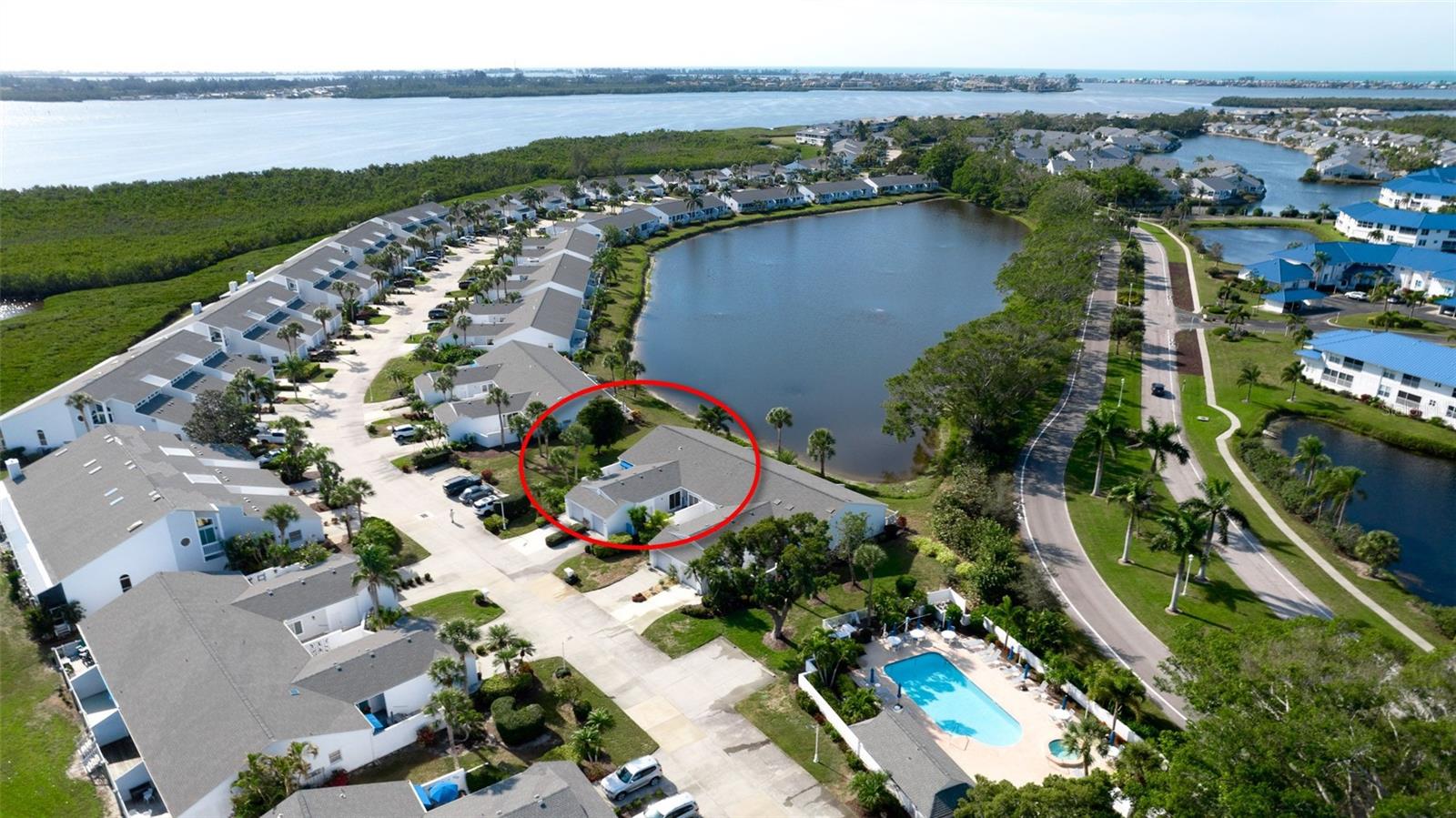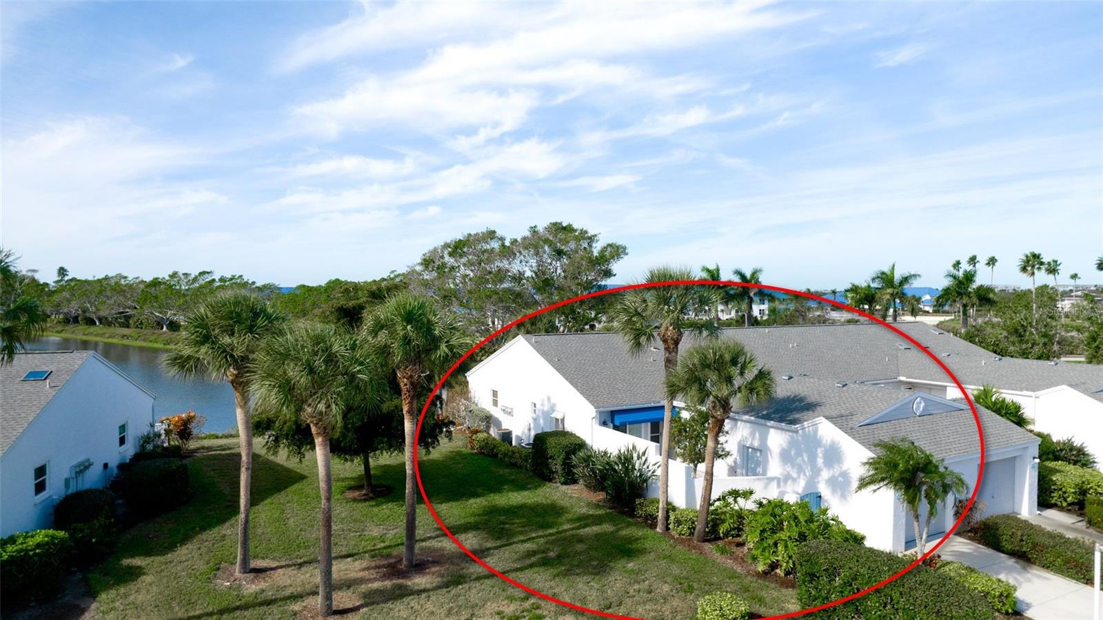 Ready to move into this beautiful freshly painted villa with only ONE attached neighbor to this duo. Bright natural light permeating in with only utilizing one shared wall. Enjoy a grassy area between your villa and the next set of homes. Impact windows throughout add to your security and quietness while inside. The entry patio wall painting has also just been completed. So inside & out, this home is literally ready for the next owner to love as it is completely detailed for you! This 2 bedroom, 2 bath home has a spacious split plan for privacy from your guests complete with each having its own en-suite and walk in closets. The vaulted ceilings add to the spaciousness of the great room which hosts your dining & living space. Your kitchen overlooks your front patio with a full picture window for natural light. The window over your sink has a cute little greenhouse to grow your fresh herbs with even more light penetrating in. Your view is a grassy area with a large tree to enjoy nature. Your living room and guest bedroom have sliders that lead onto your airconditioned enclosed lanai which includes a full-size laundry room. Step out back to your maintenance free decking which overlooks the tranquil pond with an abundance of feathered friends to observe as you relax & get ready for another magical sunset. During the day, there is a remote awning which blocks the sun for the full length of the deck. There is also ambient lighting built right into the awning. Perico Bay Club has so much to share, starting with a staffed guard house, community pool and spa with restrooms, fitness center, tennis & pickleball courts, kayak launch into the bay, numerous social activities & classes. Your low monthly HOA fee also includes grounds maintenance, cable t-v, water, sewer, trash & pest control. Not to mention the meticulous grounds in this spectacular community. Parking is directly in front of your home on your driveway or in your one car attached garage. Extra guest parking is adjacent to this home. The beautiful beaches of Anna Maria Island is a quick 5 minute ride until your toes are in the powdery sand with the turquoise water of the Gulf in view. Shopping, restaurants, golf courses boutiques, dog parks & multiple airports are minutes away. Call for your private showing or join us for our next Open House