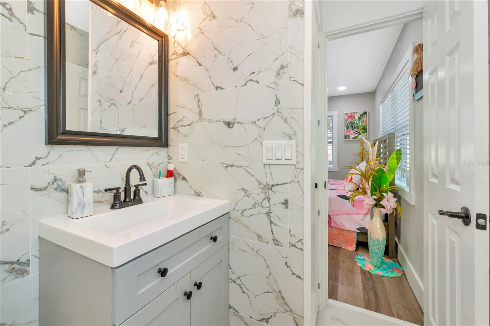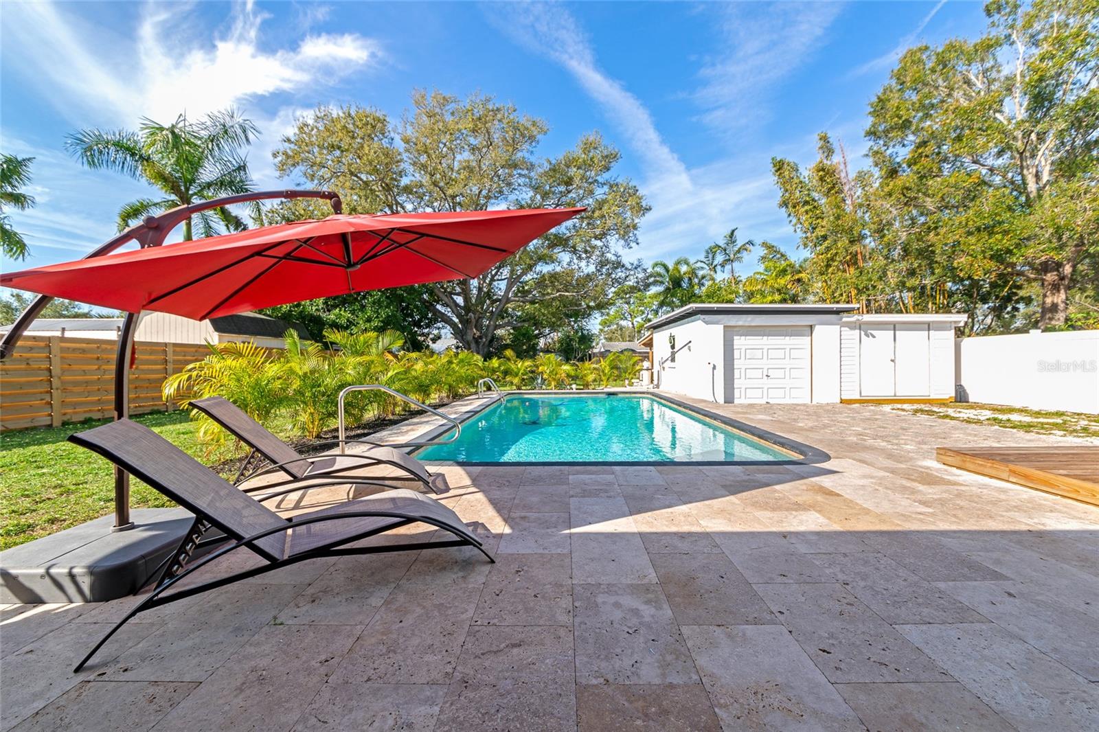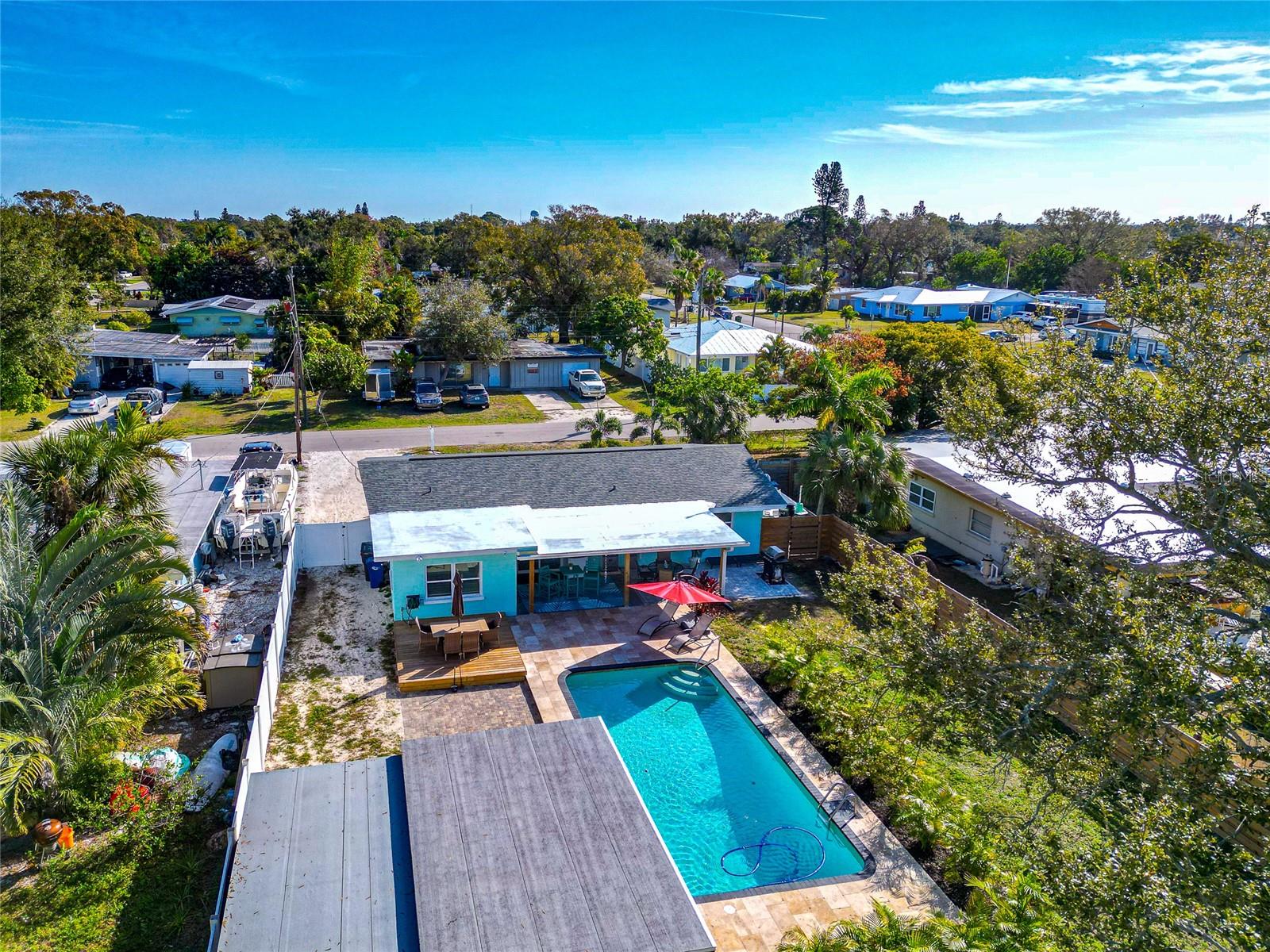 Welcome to this beautifully remodeled block home offering the perfect blend of coastal charm and modern updates. NO HOA! Bring your boat, RV or trailers. Completely renovated from the ground up in 2023, this 4-bedroom, 2-bath home features over 1,500 square feet of living space with luxury vinyl flooring throughout. Enjoy peace of mind with new windows, roof, and AC (2023). The stylish kitchen has brand new shaker cabinets with quartz countertops and stainless steel appliances and is complemented by a water softener system for added comfort. Step outside to your private backyard oasis featuring a huge swimming pool, fully fenced yard, beautiful patio overlooking the pool, a new storage shed/workshop, and a 1-car detached garage perfect for entertaining or relaxing Florida-style. This home offers a true coastal vibe inside and out, ideally located just a short drive to Anna Maria Island and other stunning Gulf beaches. Conveniently close to schools, grocery stores, shopping, and dining. Home has been pre-inspected and has a clean 4 pt. A must-see property that combines location, lifestyle, and luxury. Schedule your private showing today.