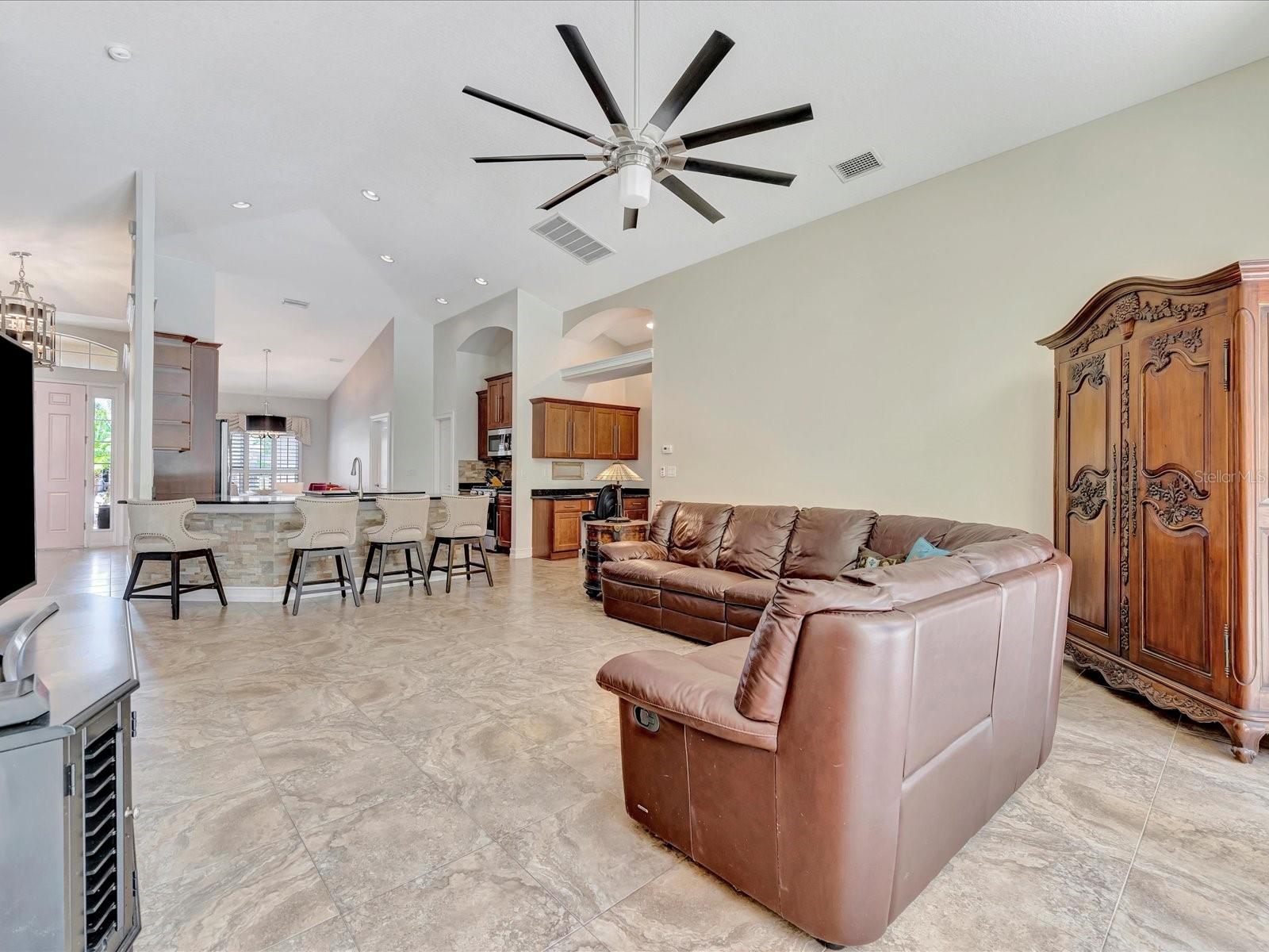 Immaculate & Updated Cardel "Kingfisher II" Home in Lakewood Ranch Central Park. This 2013-built home offers 2,883 sqft, 5 bedrooms, 3 bathrooms, and a 3-car garage. The interior shines with real hardwood floors in all bedrooms and stairs, upgraded granite countertops, a full tile backsplash, plantation shutters, Moen faucets, and a kitchen equipped with GE Profile appliances. The sought-after floor plan includes the builder's expansion option for an oversized master walk-in closet and a sunlit dining area. The versatile first floor features four bedrooms—one ideal as a home office—and two baths. Upstairs, discover a private fifth bedroom, a full bath, and a spacious bonus living area, perfect for guests or a teen retreat. Outdoor living is elevated on the extended lanai with a HEATED SALTWATER POOL in the fully fenced backyard, complete with added features like a laundry tub in the garage and extra laundry room cabinets. PEACE OF MIND WITH RECENT MAJOR UPDATES: ROOF (2024), DOWNSTAIRS A/C (2022), UPSTAIRS A/C (2019), GAS POOL HEATER (2023), & GAS RANGE (2024). Additional updates include a pool salt chlorinator system (2016), pool pump (2016), Maytag washer (2016), Maytag gas dryer (2020), and Bosch dishwasher (2018). The home is built with a radiant barrier and extra insulation between floors. Enjoy the vibrant, family-centric lifestyle of Central Park, with its 10-acre park, splash park, new playground, tennis courts, two dog parks, and community events like Food Truck Fridays. The neighborhood provides access to top-rated schools, the Lakewood Ranch Farmers' Market, shopping, and dining. World-famous Siesta Key Beach, Lido Beach, and St. Armand’s Circle are just 15 miles away. Located in FLOOD ZONE X for peace of mind, with no flood insurance required. A truly move-in-ready family home.