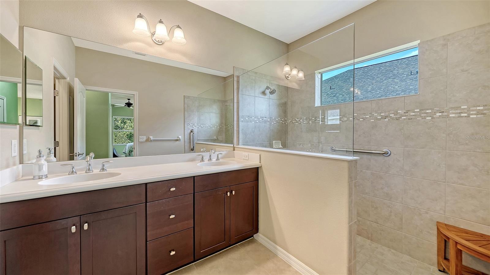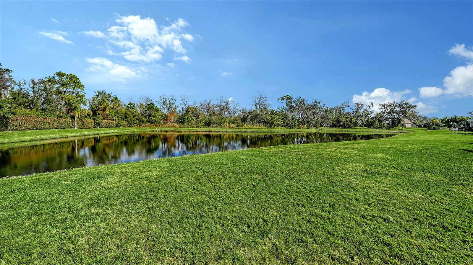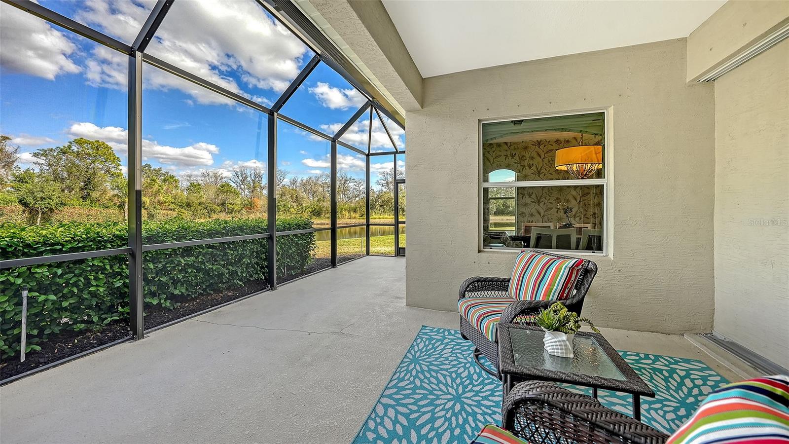 The beauty of this spacious home strikes you the moment you enter! The custom color scheme is accentuated with expansive high ceilings, crown molding, and beautiful wood flooring throughout the living area. Enjoy the large den with double doors just off the entry, perfect for an office space or private retreat. The foyer seamlessly blends into the unique and desirable gallery; an area perfect for showcasing works of art, library shelves, or other prized decor. This sought after Starlight model built by Neal Communities embodies the Florida lifestyle with its open living area combined with the huge, deluxe kitchen complete with a substantial kitchen island creating a focal point for sharing and entertaining. The kitchen boasts an abundance of cabinetry and beautiful granite countertops, custom tile backsplash, and seating at the kitchen island, as well as in the gorgeously appointed adjoining dining room complete with custom wall paper, matching window treatments, and a stunning designer chandelier. The primary suite is a place of serenity, with newer plush carpeting, calming colors, and a beautiful view of the pond and surrounding trees. In addition, there are his and hers closets and a sunny ensuite bath with dual sinks and walk-in shower. This home has a split bedroom plan, with 2 bedrooms and a full bath just off of the gallery, as well as a roomy interior laundry featuring upgraded cabinetry and closet storage. The private half bath off the gallery hallway is outfitted with stunning custom wallpaper and filled with natural sunlight from the accent window. Just off the living area, through sliding glass doors, is an extended rear patio with natural gas already plumbed for a grill or summer kitchen. Enjoy relaxing outside while soaking up the beauty of the forest trees and mature hedge surrounding the tranquil pond where birds often visit. Also relax knowing the A/C system was replaced in 2025, and there are builder provided hurricane shutters in the garage. This lovely home is located in Eagle Trace, a gem of a community on the northern end of Lakewood Ranch. The community is gated and prides itself on its small, friendly, neighborhood feel. Plus, the neighborhood amenities are well-maintained, fun, and inviting! Residents and guests can relax and grill by the refreshing community pool, enjoy a game of pickleball at the tennis courts, or take their furry friend for a run in the dog park. In addition, the community provides lawn maintenance services to all owners. No need to bring the mower! Conveniently located minutes from shopping, dining, I-75, Lakewood Ranch, and the UTC Mall area, this home and community embody the Florida lifestyle!