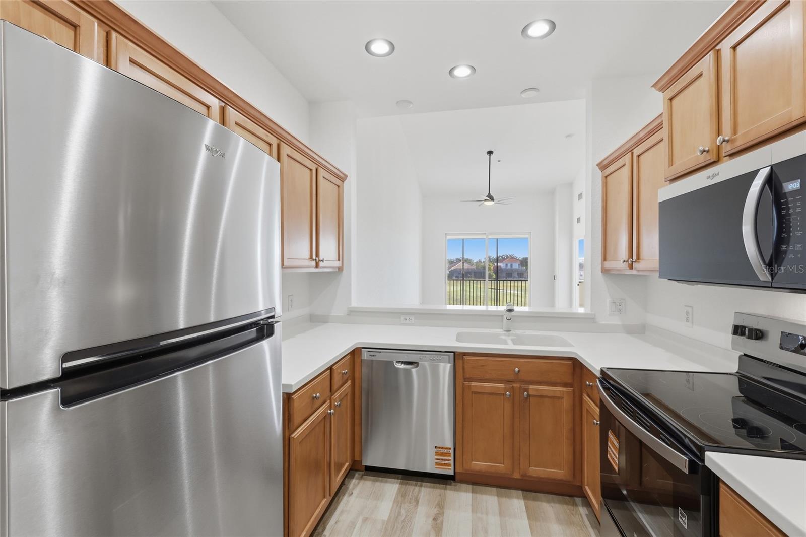 This move-in ready, second-floor 2-bedroom, 2-bath condo offers 1,104 square feet of bright living with golf course views. Enjoy an Arthur Hills-designed course, updated bathrooms (2025), and branded Whirlpool appliances, including a new fridge, dishwasher, stove, and microwave. Fresh paint, new floors, impact windows, and a newly screened lanai complete the package. Stoneybrook offers a dog park, pools, tennis, trails, and more. Minutes from beaches, Sarasota, and Tampa Airport—this condo is ready to be your next home!