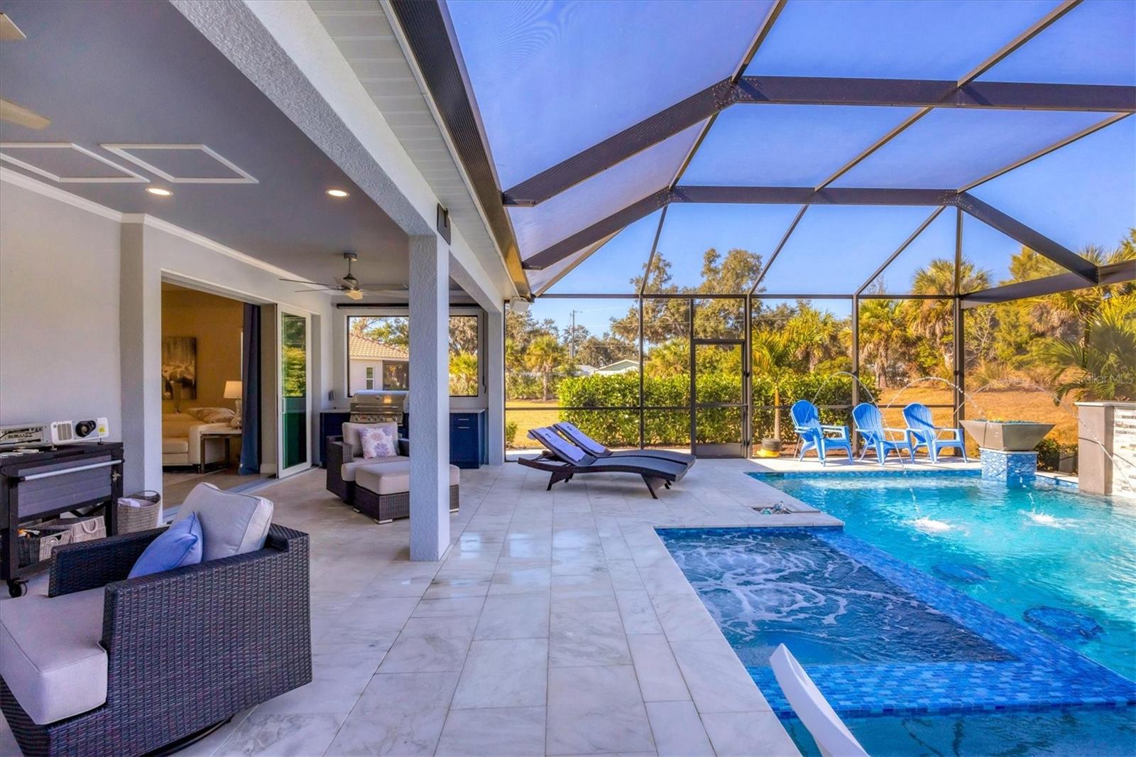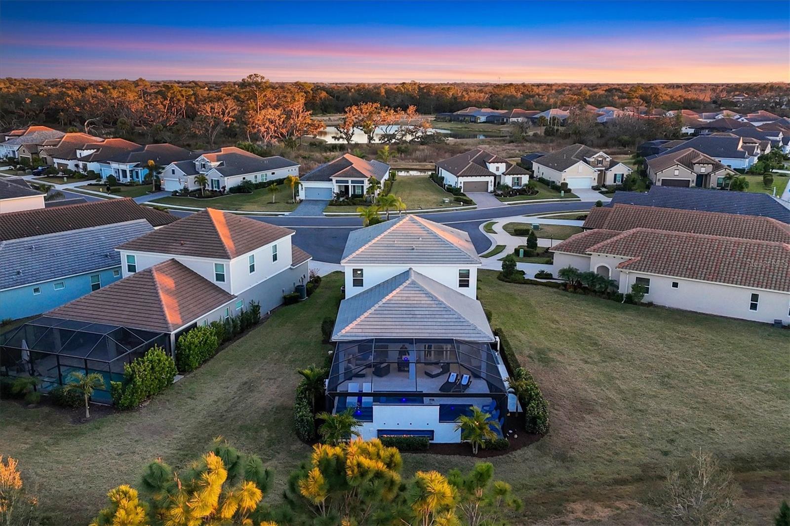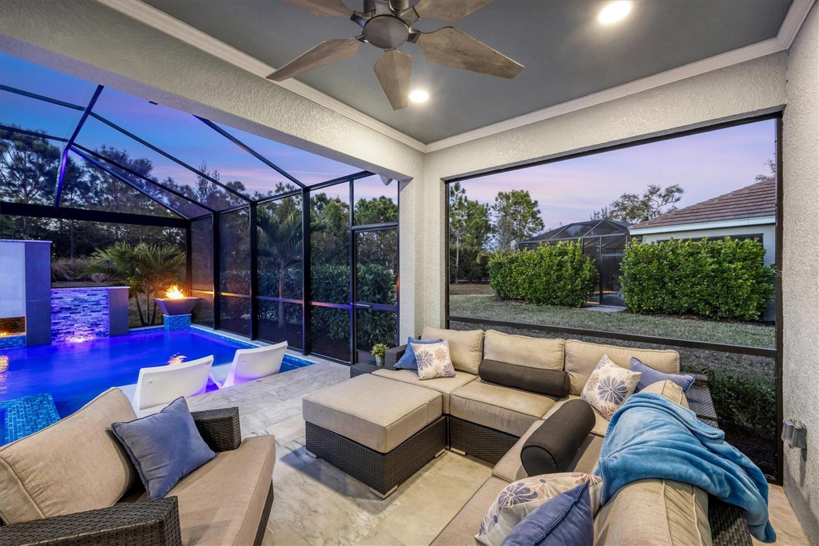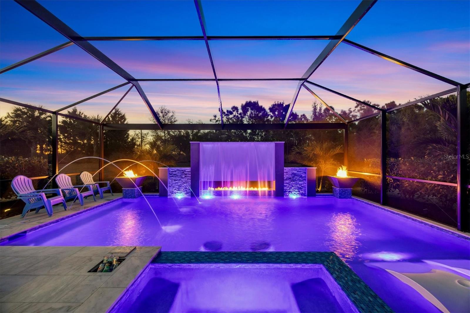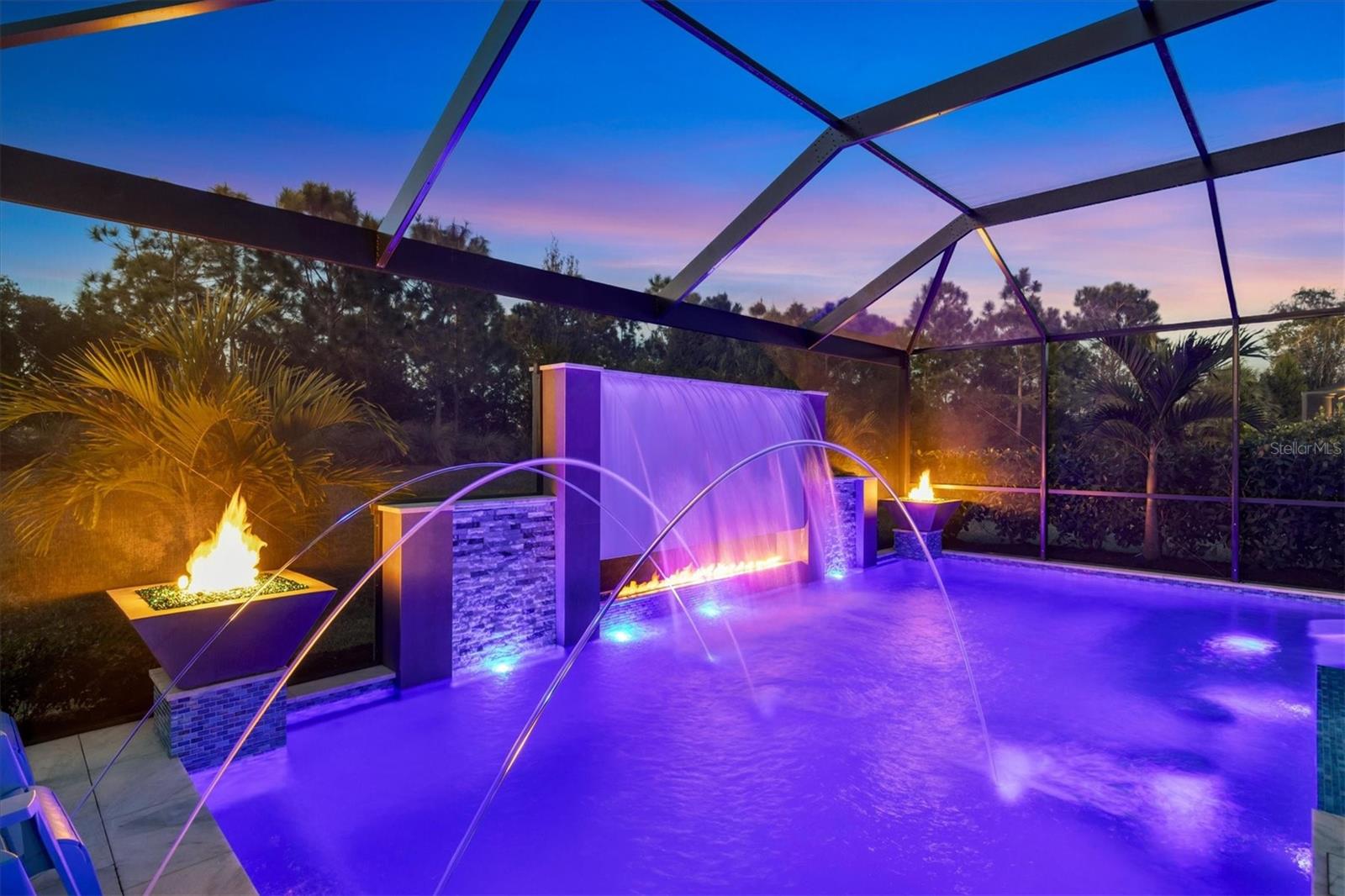 Wait till you see this "Heritage" floorplan with its modern features, impeccable condition AND private pie shaped lot on a cul-de-sac road! This expansive home boasts 4 bedrooms, a LARGE loft area, 3 bathrooms, 2-car garage and a breathtaking covered lanai space with a one off ultra premium saltwater pool spa! Rest assured your new home is built strong and safe with its HURRICANE IMPACT rated glass throughout, cinder block construction, concrete tile roof, ''Guardian'' home alarm system and is located in the highly desirable X floodzone. Throughout the interior you will find 5 1/4" deco baseboards, multiple trey ceilings, LED recessed lighting, high level quartz countertops throughout, custom cabinetry in closets and much more! This home will continue to surprise you with it's private pet room located under the staircase, with its easy access and private location, your beloved pet (s) will be overjoyed to have their own space to relax. The great room with its expansive tray ceiling showcases a spacious environment with more than enough room to entertain guests. For all you kitchen enthusiasts, you will surely gravitate to this custom kitchen featuring a large Island with breakfast bar, upgraded porcelain backsplash, shaker cabinetry with LED undermount lighting that complements the high-level quartz countertops, and an oversized walk-in pantry. The exterior of this home sits very well with its larger than normal lot size, super private rear setting, and brand-new professionally installed landscaping throughout which further sets this home apart from the others! Open up the three paneled HURRICANE IMPACT rated POCKET sliders and prepare to be absolutely amazed! As you walk on the premium marble flooring upon entering the lanai, you'll be in absolute awe of the custom built-in kitchenette with "Bull" stainless steel gas grill with a matching fridge AND one of the most desirable pools seen in a residential home. This expansive fully optioned pool has: numerous water features, movie wall with "Sonos" outdoor sound system with underground subwoofer, TWO fire bowls with a fire trey under movie wall, multi-color LED lighting for pool/spa/barstoools with vertically mounted wall lights, "PebbleTec' with luminous glass blend and shimmering seas abalone, gas and electric heating, salt chlorinator w/Ph monitoring AND integrated dosing system, sunshelf w/umbrella sleeve, built-in deck drink cooler right next to your LARGE SIX person spa with DUAL QUAD therapeutic jet system all ran off its own dedicated jet pump. ALL of this can be operated from your smart device! WOW is right..Indigo is an active community that features a full time on-site manager as well as a full time activities director that manages an extensive calendar of activities for all ages. A-Rated Gullett Elementary AND Mona Jain Middle school are right outside our gates too! You can also expect sidewalks on both sides of the street, ''Oasis'' pool/spa, resort style heated community pool/spa at the main clubhouse where you will find 5 cabanas with an abundance of seating, 4 pickleball courts, 2 bocce ball courts, 24-hour exercise gym, meeting room/banquet room and playground. Indigo is not only a community that takes care of all ground maintenance to include mowing, fertilizing, irrigation, shrubs and mulch but is right around the corner to a plethora of dining, banking, entertainment, public transportation and MORE!