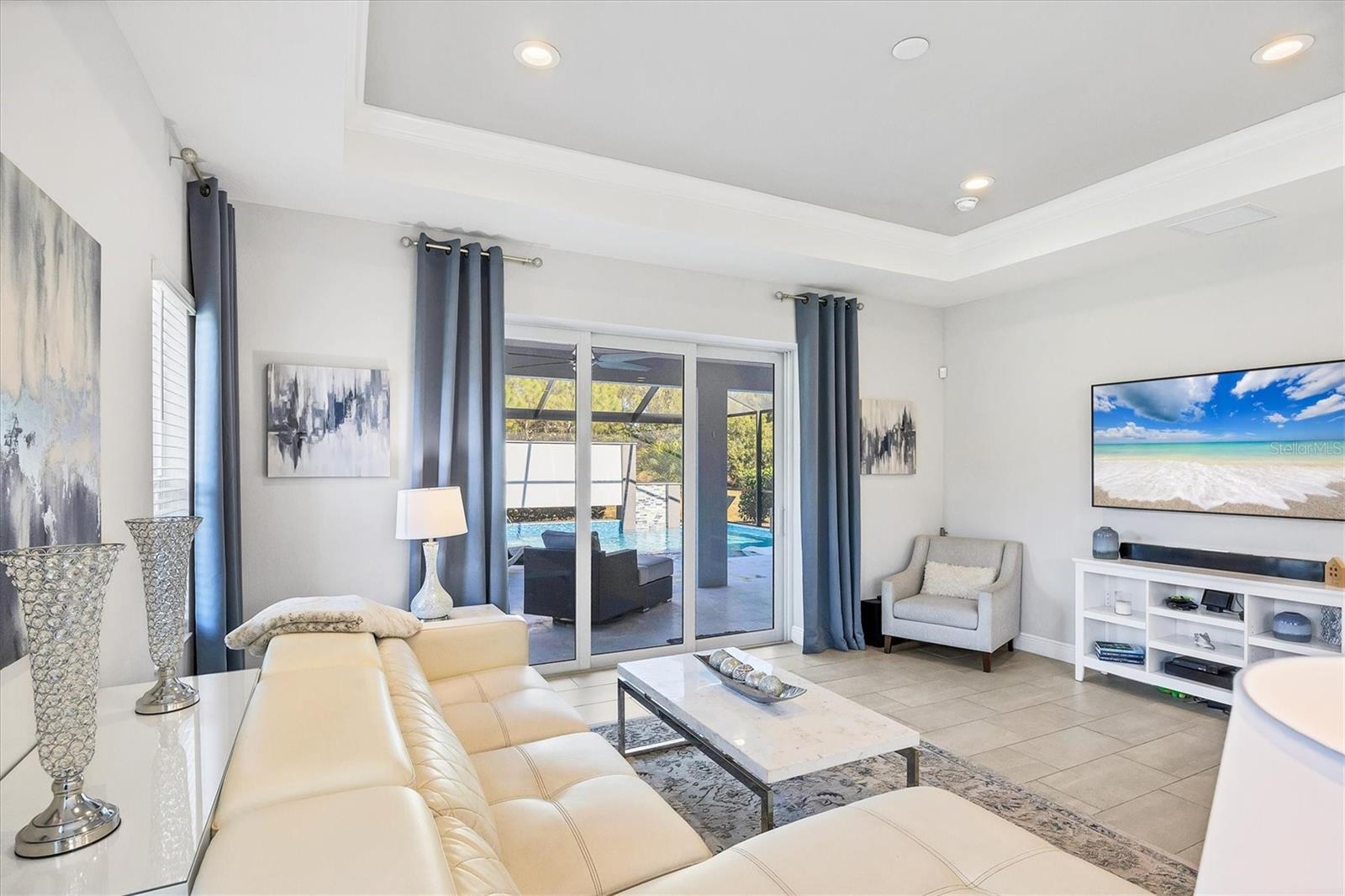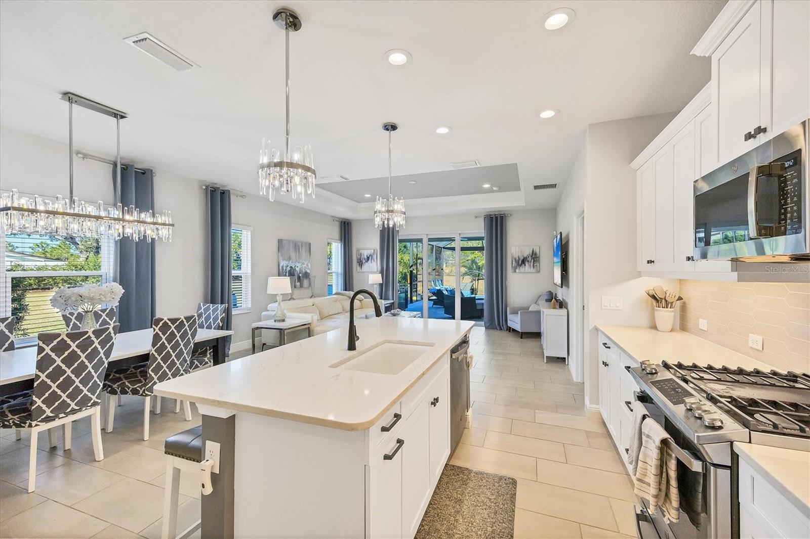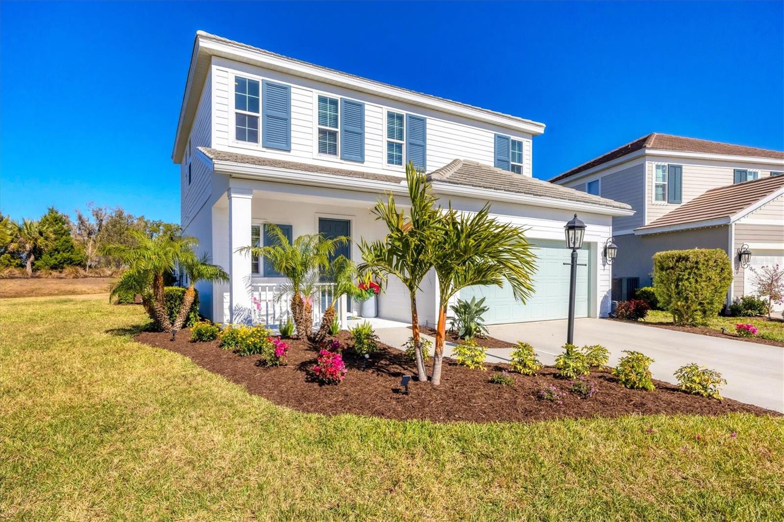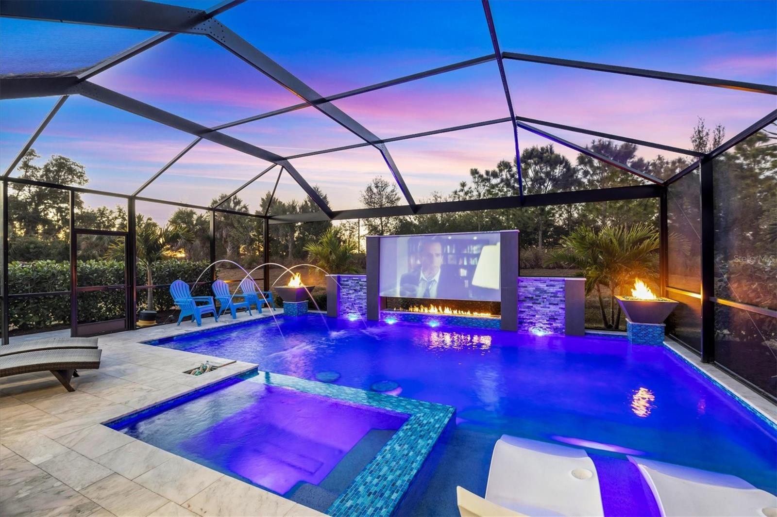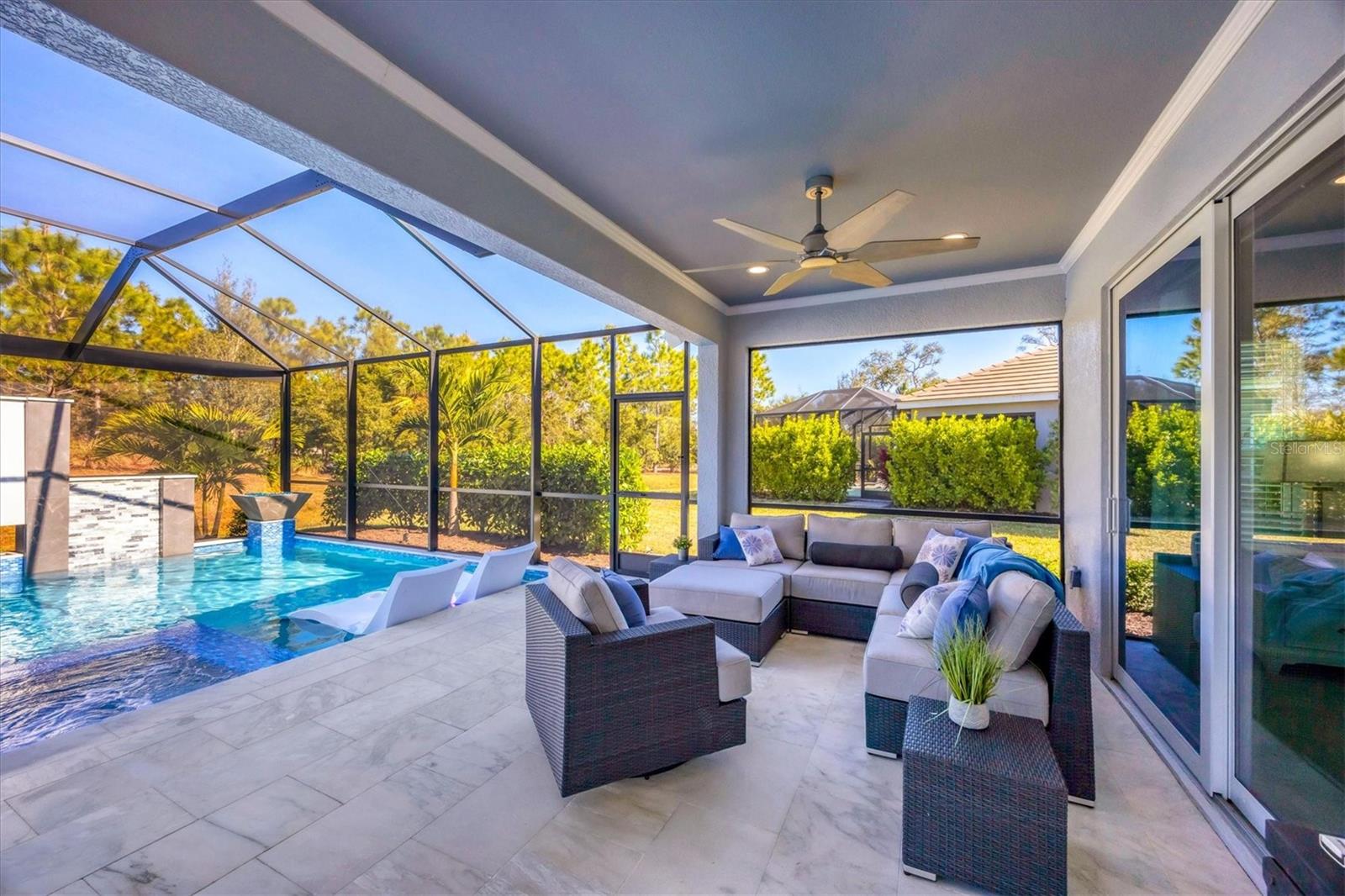 Wait till you see this "Heritage" floorplan with its modern features, impeccable condition AND private pie shaped lot on a cul-de-sac road! This expansive home boasts 4 bedrooms, a LARGE loft area, 3 bathrooms, 2-car garage and a breathtaking covered lanai space with a one off ultra premium saltwater pool spa! Rest assured your new home is built strong and safe with its HURRICANE IMPACT rated glass throughout, cinder block construction, concrete tile roof, ''Guardian'' home alarm system and is located in the highly desirable X floodzone. Throughout the interior you will find 5 1/4" deco baseboards, multiple trey ceilings, LED recessed lighting, high level quartz countertops throughout, custom cabinetry in closets and much more! This home will continue to surprise you with it's private pet room located under the staircase, with its easy access and private location, your beloved pet (s) will be overjoyed to have their own space to relax. The great room with its expansive tray ceiling showcases a spacious environment with more than enough room to entertain guests. For all you kitchen enthusiasts, you will surely gravitate to this custom kitchen featuring a large Island with breakfast bar, upgraded porcelain backsplash, shaker cabinetry with LED undermount lighting that complements the high-level quartz countertops, and an oversized walk-in pantry. The exterior of this home sits very well with its larger than normal lot size, super private rear setting, and brand-new professionally installed landscaping throughout which further sets this home apart from the others! Open up the three paneled HURRICANE IMPACT rated POCKET sliders and prepare to be absolutely amazed! As you walk on the premium marble flooring upon entering the lanai, you'll be in absolute awe of the custom built-in kitchenette with "Bull" stainless steel gas grill with a matching fridge AND one of the most desirable pools seen in a residential home. This expansive fully optioned pool has: numerous water features, movie wall with "Sonos" outdoor sound system with underground subwoofer, TWO fire bowls with a fire trey under movie wall, multi-color LED lighting for pool/spa/barstoools with vertically mounted wall lights, "PebbleTec' with luminous glass blend and shimmering seas abalone, gas and electric heating, salt chlorinator w/Ph monitoring AND integrated dosing system, sunshelf w/umbrella sleeve, built-in deck drink cooler right next to your LARGE SIX person spa with DUAL QUAD therapeutic jet system all ran off its own dedicated jet pump. ALL of this can be operated from your smart device! WOW is right..Indigo is an active community that features a full time on-site manager as well as a full time activities director that manages an extensive calendar of activities for all ages. A-Rated Gullett Elementary AND Mona Jain Middle school are right outside our gates too! You can also expect sidewalks on both sides of the street, ''Oasis'' pool/spa, resort style heated community pool/spa at the main clubhouse where you will find 5 cabanas with an abundance of seating, 4 pickleball courts, 2 bocce ball courts, 24-hour exercise gym, meeting room/banquet room and playground. Indigo is not only a community that takes care of all ground maintenance to include mowing, fertilizing, irrigation, shrubs and mulch but is right around the corner to a plethora of dining, banking, entertainment, public transportation and MORE!
