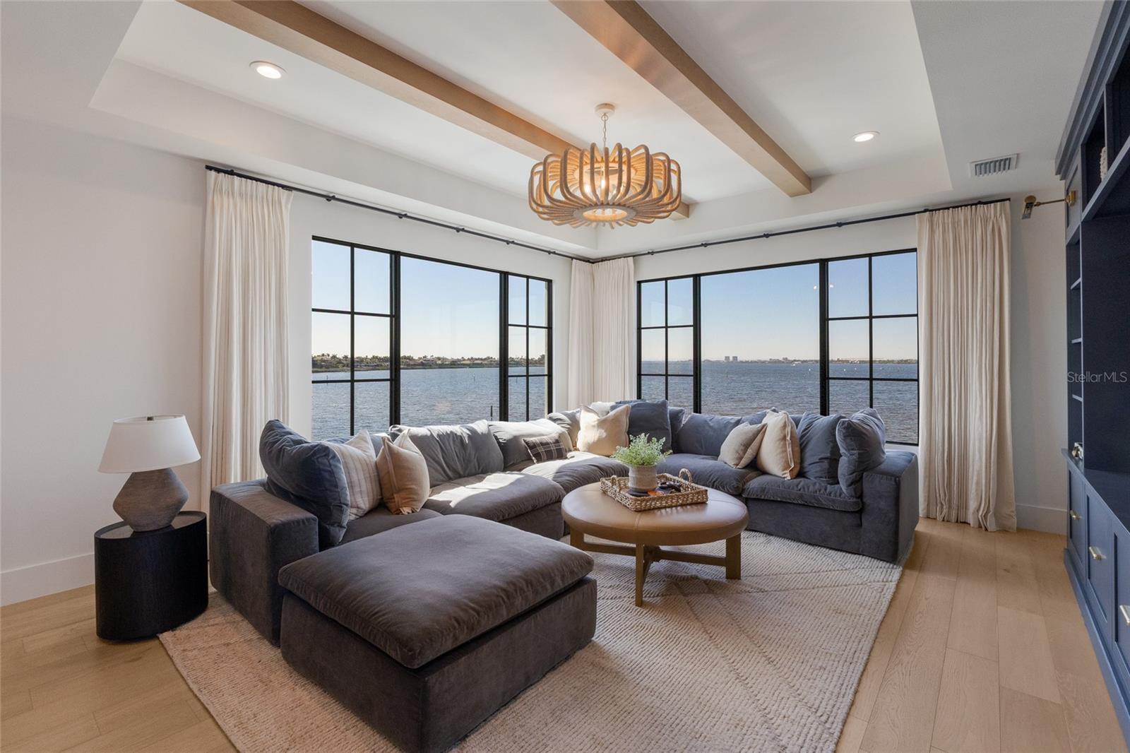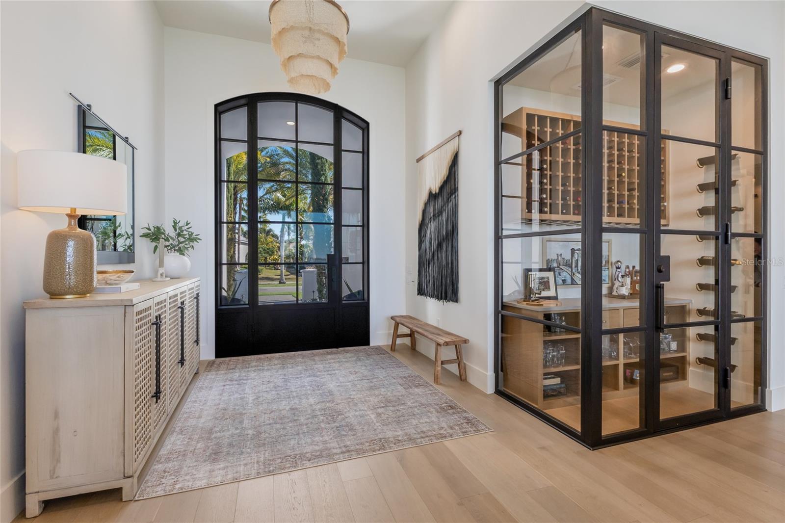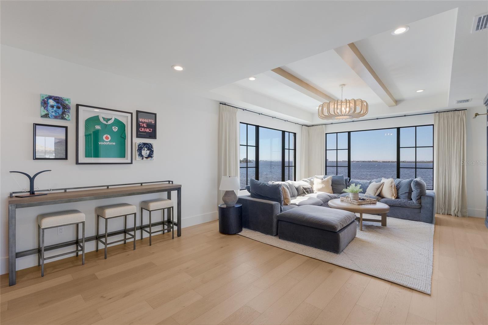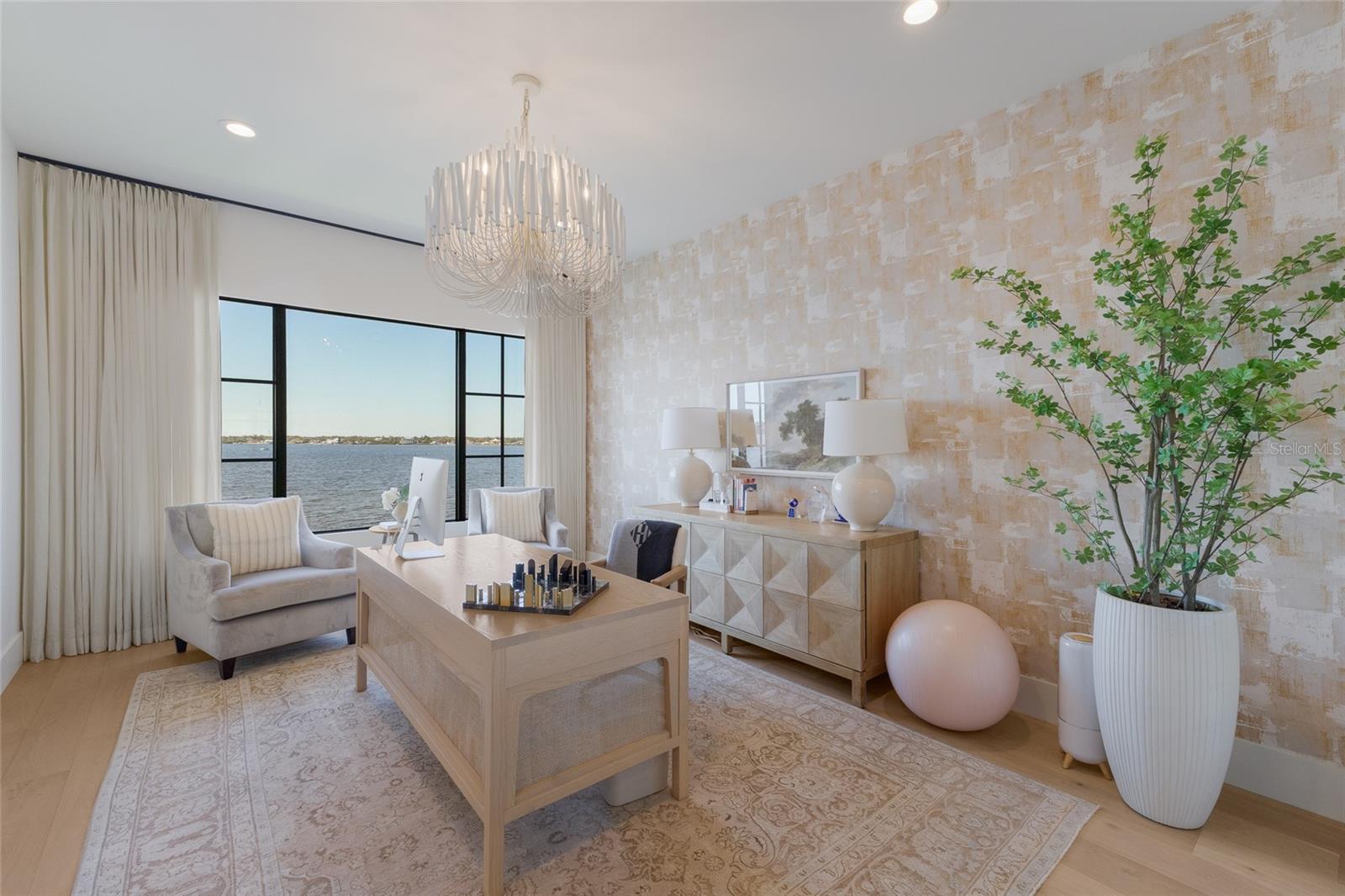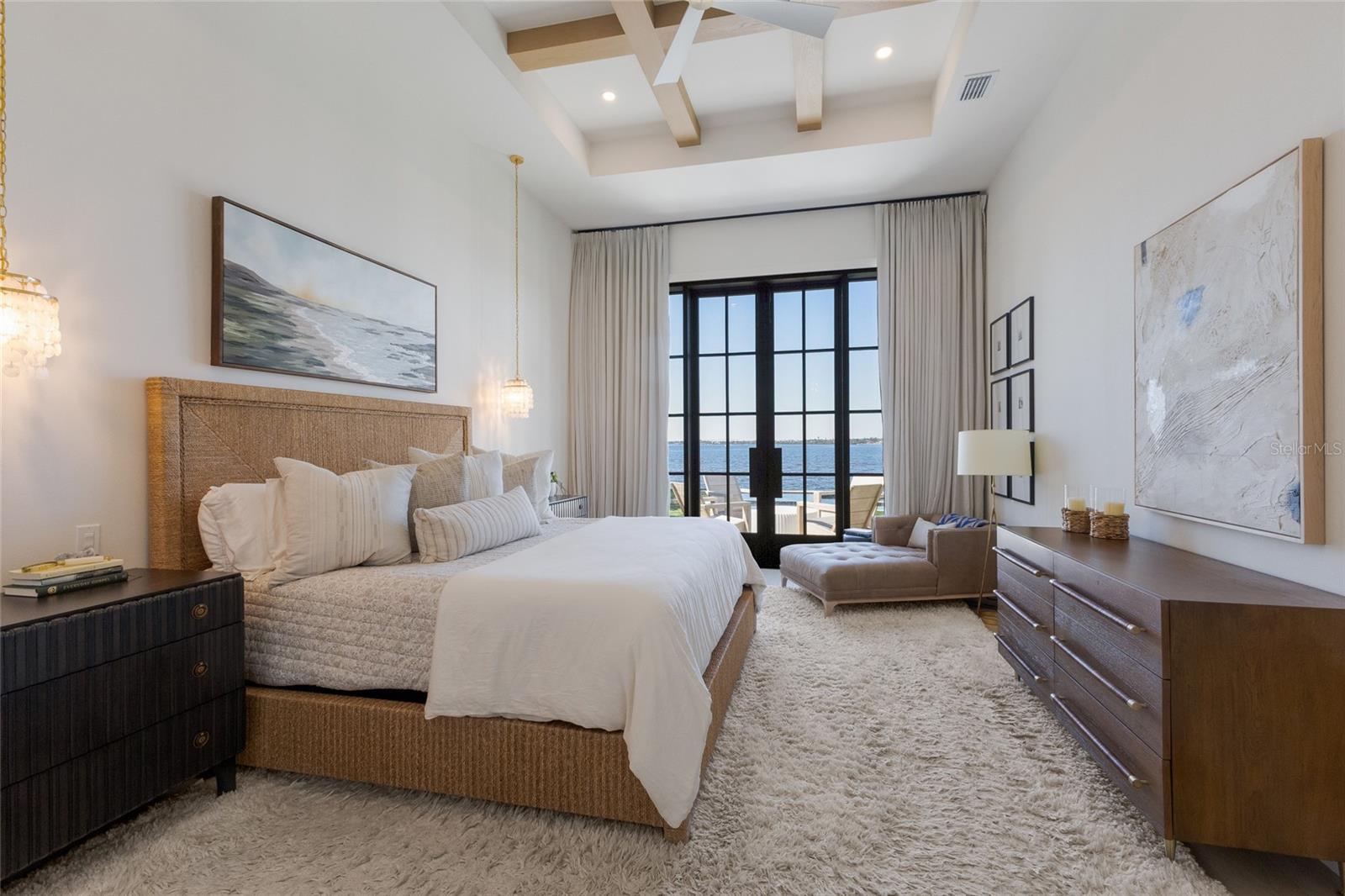 WELCOME to a breathtaking WATERFRONT masterpiece in the EXCLUSIVE double-gated BOATING community of The Reserve at Harbour Walk, where a PRIVATE deep-water DOCK on the Manatee River with direct access to the Gulf of Mexico sets the stage for a life of unmatched luxury, tranquility, and adventure. Built by CAMLIN Custom Homes, this 5,147 sq ft CUSTOM ESTATE offers 4 bedrooms plus a den or office, 3.5 baths, and a 4 car garage, all designed with a peaceful, Zen inspired aesthetic where every detail has been thoughtfully curated and flawlessly executed. A dramatic GLASS and STEEL front door opens to soaring, light-filled interiors with uninterrupted blue-water views that draw your eye straight through the home to the pool and river beyond. The living room is a showpiece with a custom CONCRETE GAS FIREPLACE, illuminated built-in shelving, wood beams in the vaulted ceiling, and an entire wall of oversized windows capturing the serene backdrop. The chef’s kitchen showcases custom cabinetry, MARBLE countertops and backsplash, a massive entertainer’s island with a thick granite slab, Belfast sink, seating, gold accents, and world-class appliances including a SUB-ZERO designer series refrigerator and freezer and a rare LACANCHE UL SULLY CLASSIQUE range IMPORTED from France, plus a custom pantry behind an iron and steel sliding door. The open dining area flows seamlessly for entertaining, while an additional family room with double FRENCH DOORS offers a relaxed escape to the lanai. The owner’s suite is PRIVATELY tucked away and features CUSTOM his-and-hers closets, a spa-inspired ENSUITE bath with a glass enclosed STEAM shower with twin showerheads, built-in bench, side jets, a garden tub, dual vanities, a dedicated makeup area and private lanai access beneath a tray ceiling with custom WOOD BEAMS. Two additional bedrooms share a beautifully appointed Jack-and-Jill bath with marble countertops, dual sinks, and a tub/shower combo. A STUNNING temperature-controlled wine room enclosed in iron and glass with custom cabinetry adds a dramatic focal point for entertaining. Upstairs, you will find a fourth bedroom with custom BUILT-INS, a MEDIA and GAME room with wood beams, river views, and a bespoke WET BAR with sink and refrigerator drawers, along with a flexible FITNESS AREA, a sunlit OFFICE with water views, and a full bath with an oversized glass walk-in shower and custom marble-topped vanity. The entire home is equipped with HURRICANE IMPACT GLASS for peace of mind. Step outside to your private RESORT with a pool and spa overlooking the water, a custom WOOD-BURNING fireplace with seating, a charming DOUBLE SWING, checkered-pattern lanai tile, a fully equipped OUTDOOR KITCHEN and outdoor SHOWER, creating the ultimate space for relaxation, entertaining, and unforgettable SUNSET evenings. Your PRIVATE DOCK is fully equipped with a 16,000 lb BOAT LIFT, TWIN JET SKI LIFT, and fiberglass HEAT-RESISTANT composite decking, creating the perfect launch point for boating, fishing, paddleboarding, and sunset cruises. Residents of this private enclave enjoy pickleball and tennis courts, a playground, kayak and canoe launches, and peaceful walking paths, all within a custom home community known for its LUXURY, privacy, and natural beauty. This extraordinary residence is truly move-in ready and offers a rare opportunity to own a one-of-a-kind waterfront sanctuary where elegance, craftsmanship, and lifestyle come together in perfect harmony.