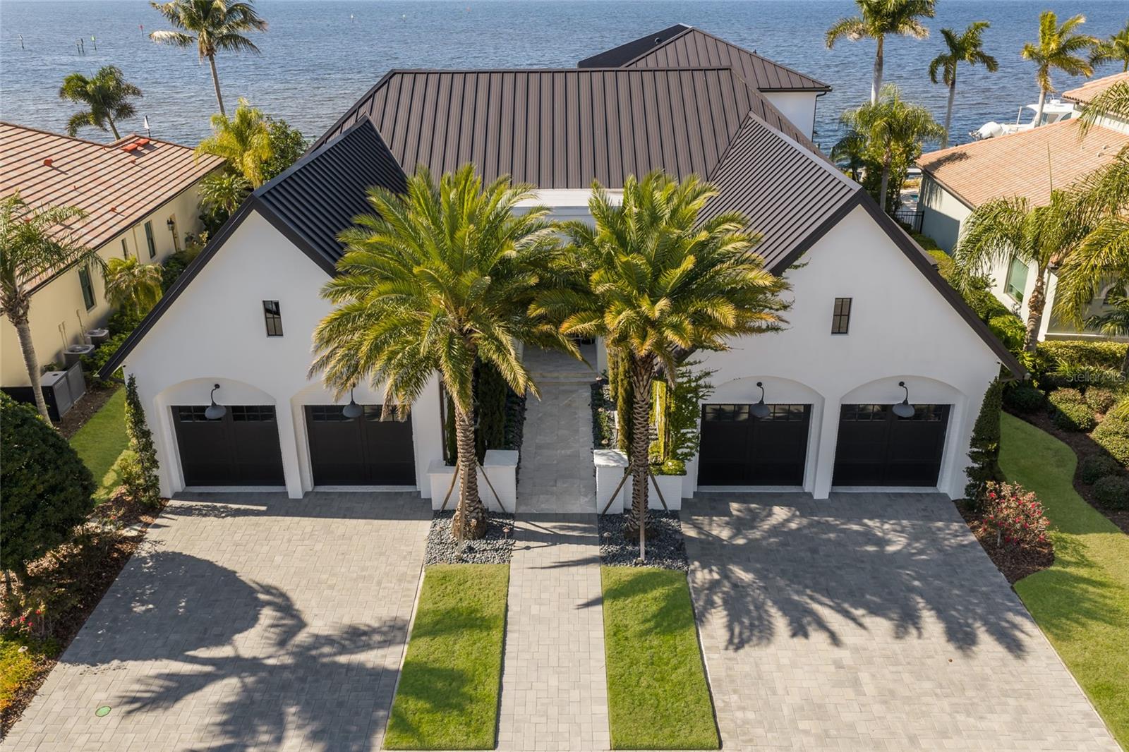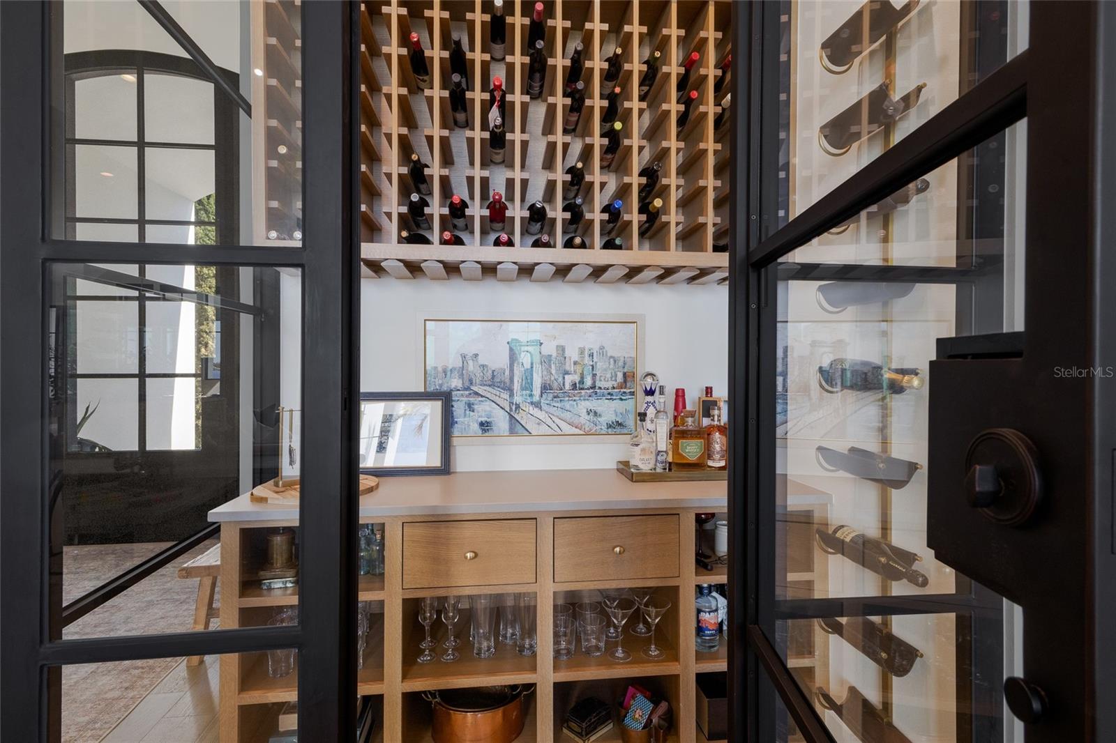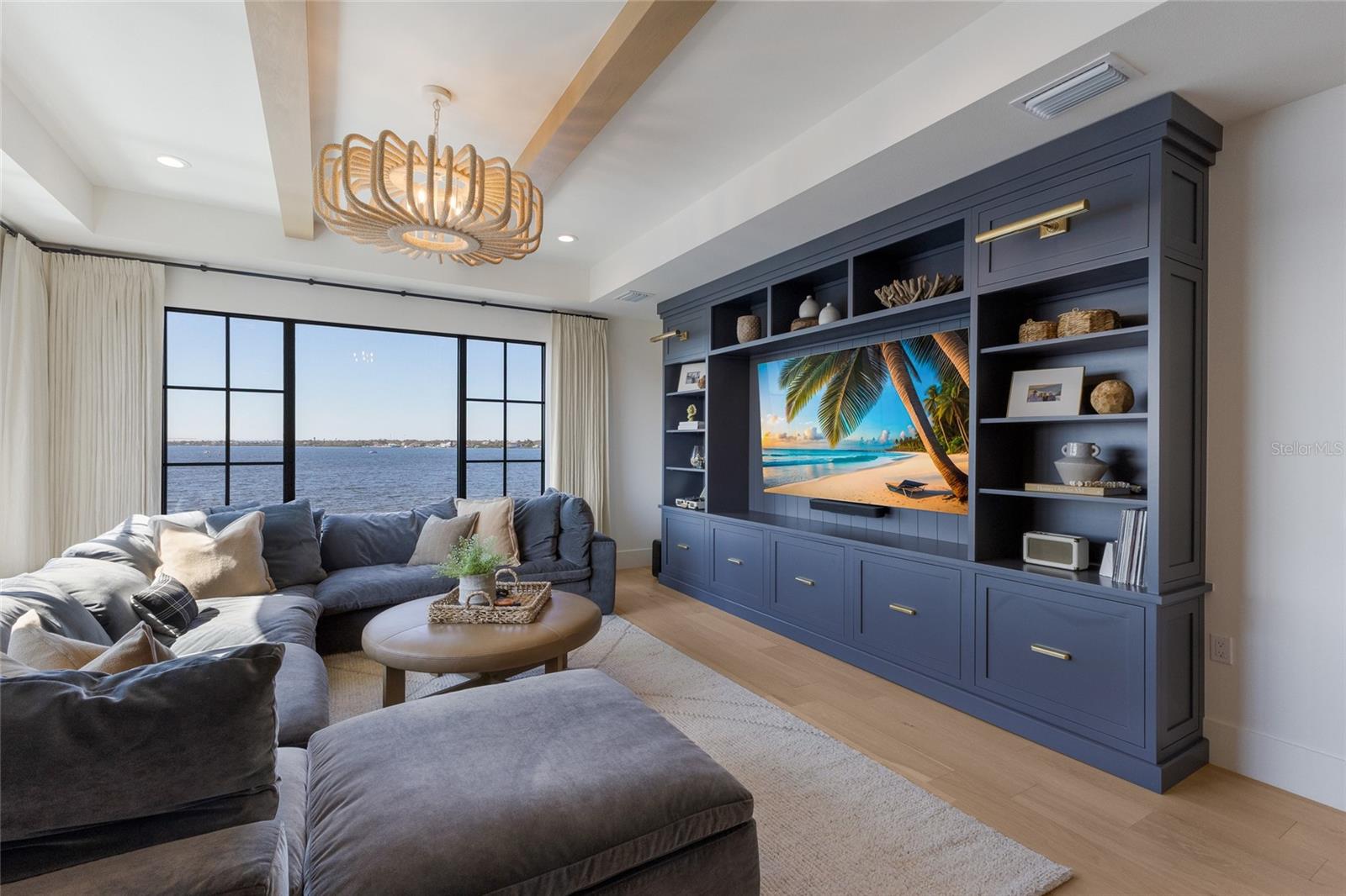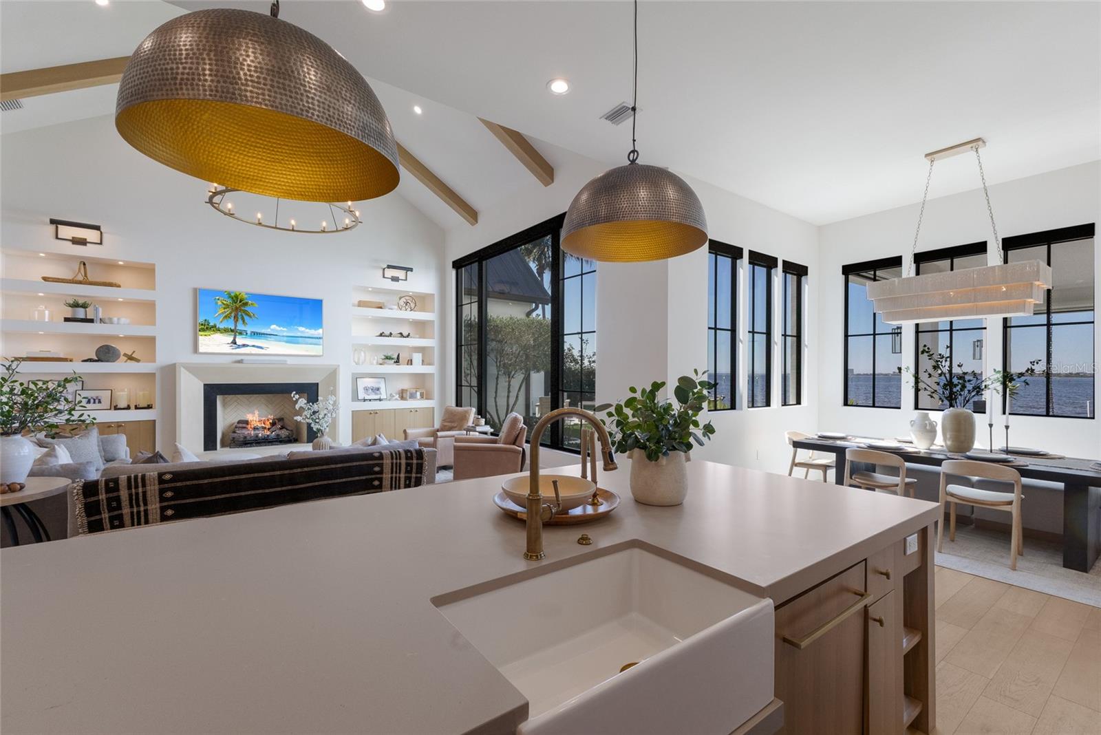 WELCOME to a breathtaking WATERFRONT masterpiece in the EXCLUSIVE double-gated BOATING community of The Reserve at Harbour Walk, where a PRIVATE deep-water DOCK on the Manatee River with direct access to the Gulf of Mexico sets the stage for a life of unmatched luxury, tranquility, and adventure. Built by CAMLIN Custom Homes, this 5,147 sq ft CUSTOM ESTATE offers 4 bedrooms plus a den or office, 3.5 baths, and a 4 car garage, all designed with a peaceful, Zen inspired aesthetic where every detail has been thoughtfully curated and flawlessly executed. A dramatic GLASS and STEEL front door opens to soaring, light-filled interiors with uninterrupted blue-water views that draw your eye straight through the home to the pool and river beyond. The living room is a showpiece with a custom CONCRETE GAS FIREPLACE, illuminated built-in shelving, wood beams in the vaulted ceiling, and an entire wall of oversized windows capturing the serene backdrop. The chef’s kitchen showcases custom cabinetry, MARBLE countertops and backsplash, a massive entertainer’s island with a thick granite slab, Belfast sink, seating, gold accents, and world-class appliances including a SUB-ZERO designer series refrigerator and freezer and a rare LACANCHE UL SULLY CLASSIQUE range IMPORTED from France, plus a custom pantry behind an iron and steel sliding door. The open dining area flows seamlessly for entertaining, while an additional family room with double FRENCH DOORS offers a relaxed escape to the lanai. The owner’s suite is PRIVATELY tucked away and features CUSTOM his-and-hers closets, a spa-inspired ENSUITE bath with a glass enclosed STEAM shower with twin showerheads, built-in bench, side jets, a garden tub, dual vanities, a dedicated makeup area and private lanai access beneath a tray ceiling with custom WOOD BEAMS. Two additional bedrooms share a beautifully appointed Jack-and-Jill bath with marble countertops, dual sinks, and a tub/shower combo. A STUNNING temperature-controlled wine room enclosed in iron and glass with custom cabinetry adds a dramatic focal point for entertaining. Upstairs, you will find a fourth bedroom with custom BUILT-INS, a MEDIA and GAME room with wood beams, river views, and a bespoke WET BAR with sink and refrigerator drawers, along with a flexible FITNESS AREA, a sunlit OFFICE with water views, and a full bath with an oversized glass walk-in shower and custom marble-topped vanity. The entire home is equipped with HURRICANE IMPACT GLASS for peace of mind. Step outside to your private RESORT with a pool and spa overlooking the water, a custom WOOD-BURNING fireplace with seating, a charming DOUBLE SWING, checkered-pattern lanai tile, a fully equipped OUTDOOR KITCHEN and outdoor SHOWER, creating the ultimate space for relaxation, entertaining, and unforgettable SUNSET evenings. Your PRIVATE DOCK is fully equipped with a 16,000 lb BOAT LIFT, TWIN JET SKI LIFT, and fiberglass HEAT-RESISTANT composite decking, creating the perfect launch point for boating, fishing, paddleboarding, and sunset cruises. Residents of this private enclave enjoy pickleball and tennis courts, a playground, kayak and canoe launches, and peaceful walking paths, all within a custom home community known for its LUXURY, privacy, and natural beauty. This extraordinary residence is truly move-in ready and offers a rare opportunity to own a one-of-a-kind waterfront sanctuary where elegance, craftsmanship, and lifestyle come together in perfect harmony.