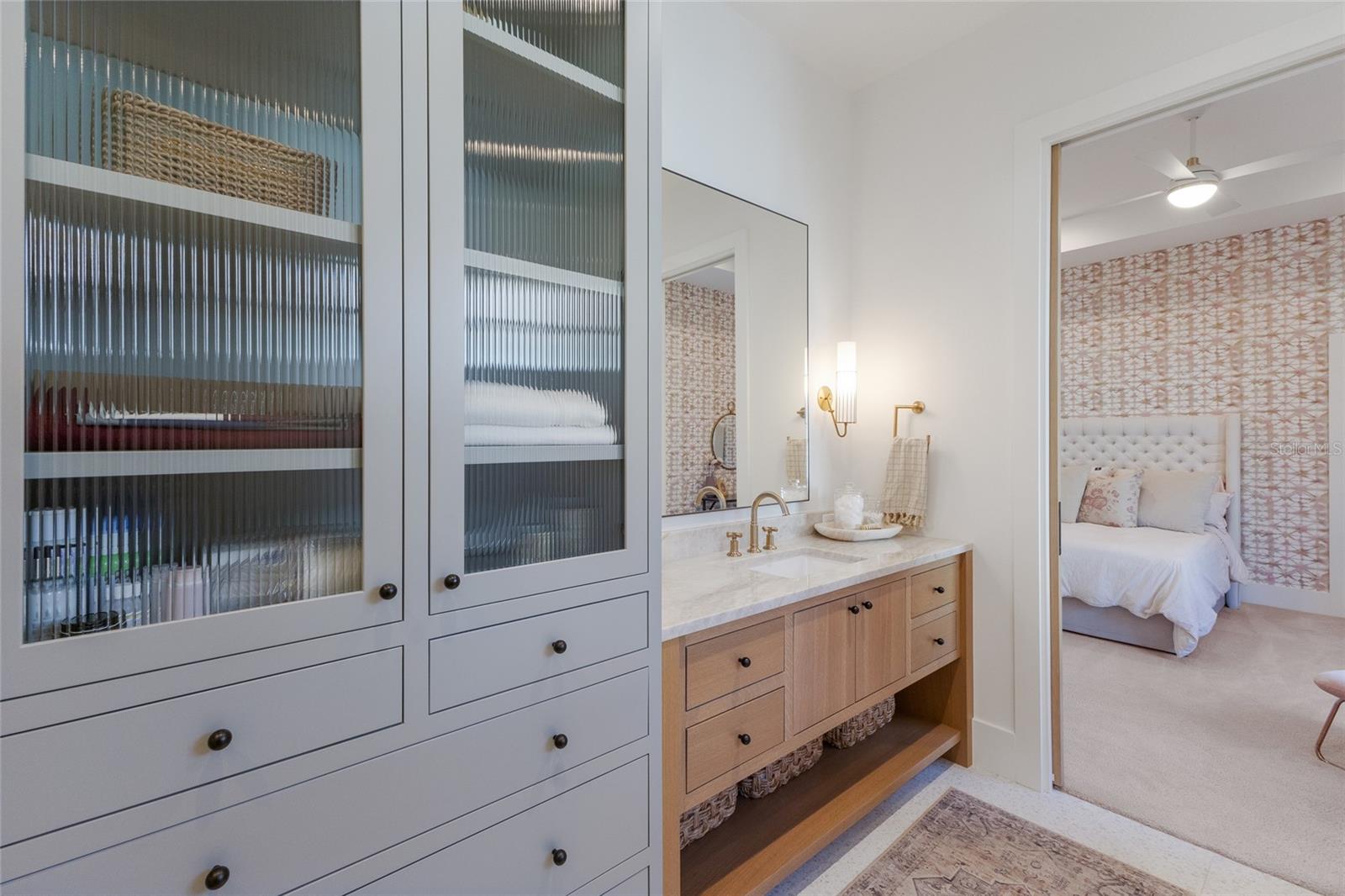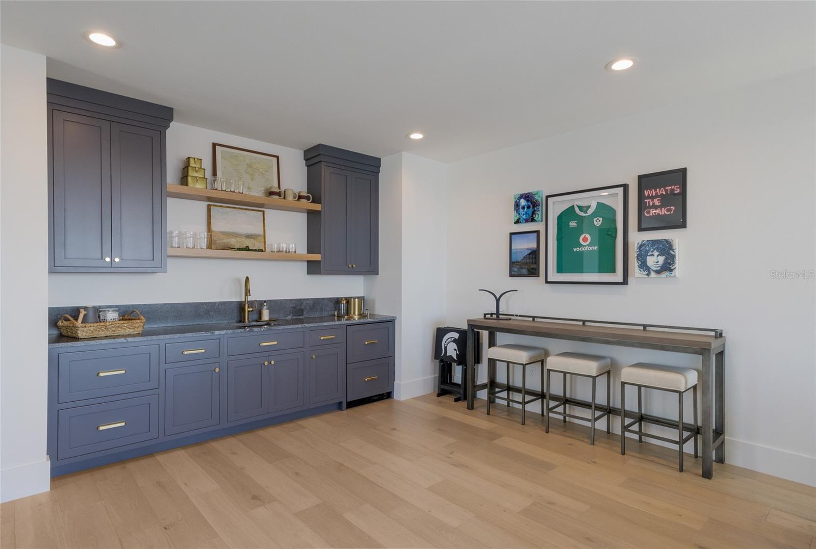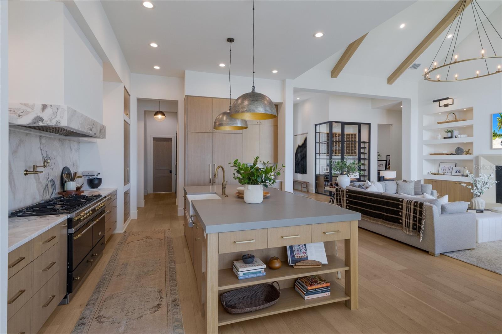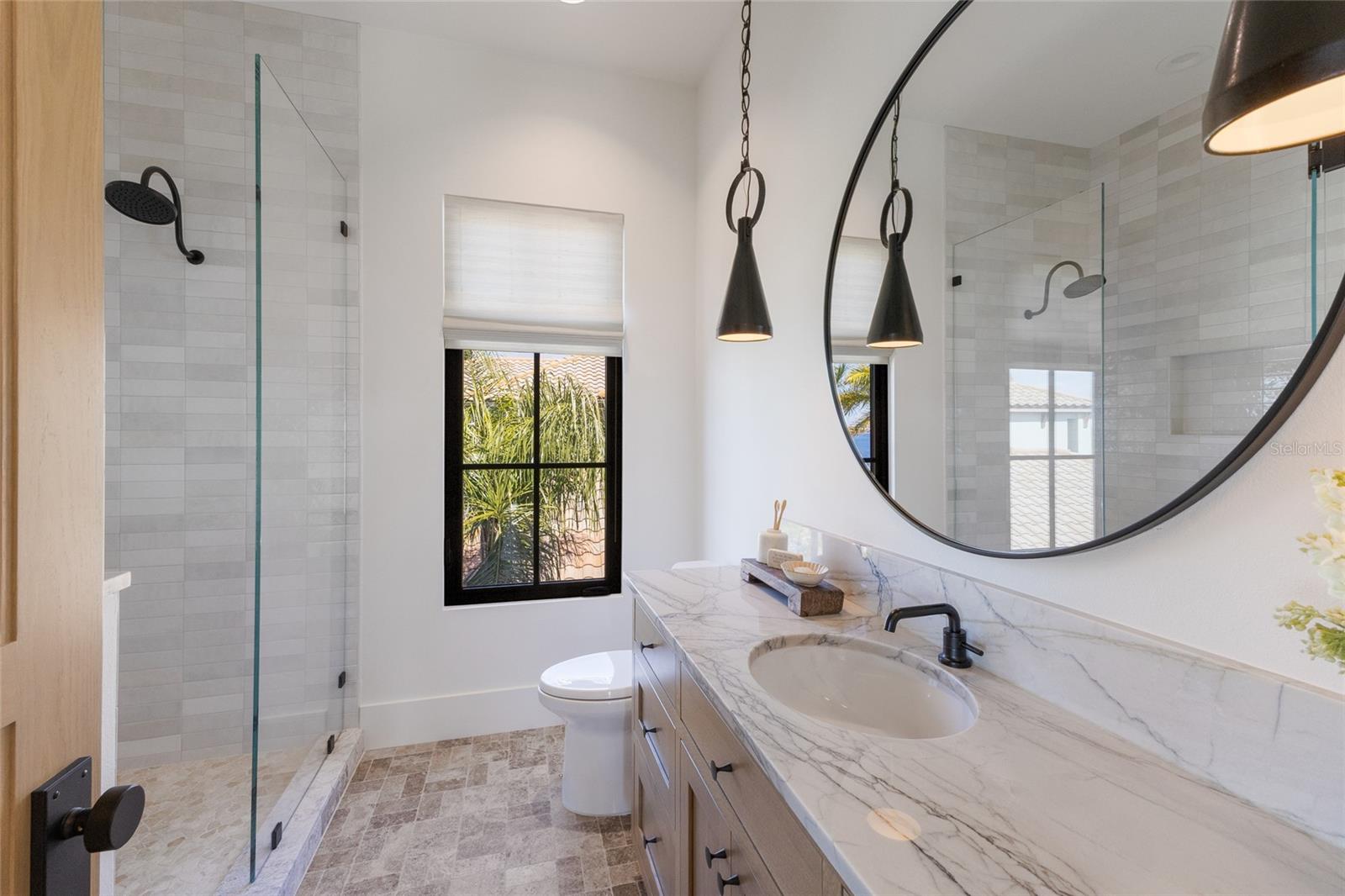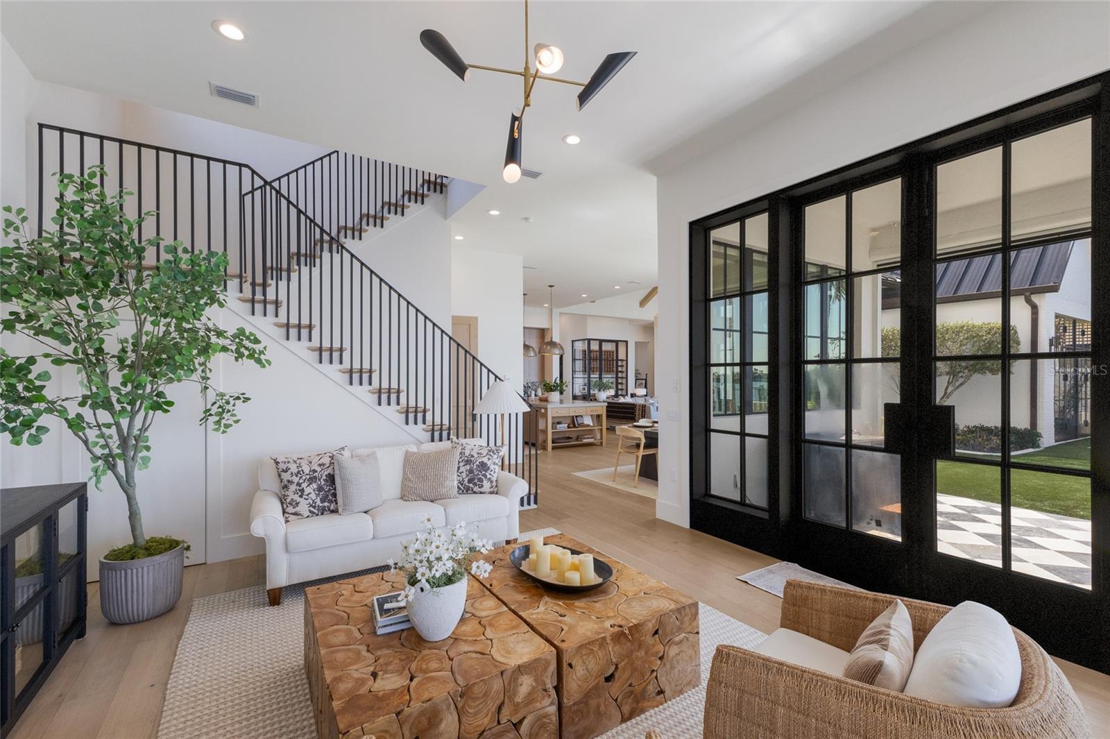 WELCOME to a breathtaking WATERFRONT masterpiece in the EXCLUSIVE double-gated BOATING community of The Reserve at Harbour Walk, where a PRIVATE deep-water DOCK on the Manatee River with direct access to the Gulf of Mexico sets the stage for a life of unmatched luxury, tranquility, and adventure. Built by CAMLIN Custom Homes, this 5,147 sq ft CUSTOM ESTATE offers 4 bedrooms plus a den or office, 3.5 baths, and a 4 car garage, all designed with a peaceful, Zen inspired aesthetic where every detail has been thoughtfully curated and flawlessly executed. A dramatic GLASS and STEEL front door opens to soaring, light-filled interiors with uninterrupted blue-water views that draw your eye straight through the home to the pool and river beyond. The living room is a showpiece with a custom CONCRETE GAS FIREPLACE, illuminated built-in shelving, wood beams in the vaulted ceiling, and an entire wall of oversized windows capturing the serene backdrop. The chef’s kitchen showcases custom cabinetry, MARBLE countertops and backsplash, a massive entertainer’s island with a thick granite slab, Belfast sink, seating, gold accents, and world-class appliances including a SUB-ZERO designer series refrigerator and freezer and a rare LACANCHE UL SULLY CLASSIQUE range IMPORTED from France, plus a custom pantry behind an iron and steel sliding door. The open dining area flows seamlessly for entertaining, while an additional family room with double FRENCH DOORS offers a relaxed escape to the lanai. The owner’s suite is PRIVATELY tucked away and features CUSTOM his-and-hers closets, a spa-inspired ENSUITE bath with a glass enclosed STEAM shower with twin showerheads, built-in bench, side jets, a garden tub, dual vanities, a dedicated makeup area and private lanai access beneath a tray ceiling with custom WOOD BEAMS. Two additional bedrooms share a beautifully appointed Jack-and-Jill bath with marble countertops, dual sinks, and a tub/shower combo. A STUNNING temperature-controlled wine room enclosed in iron and glass with custom cabinetry adds a dramatic focal point for entertaining. Upstairs, you will find a fourth bedroom with custom BUILT-INS, a MEDIA and GAME room with wood beams, river views, and a bespoke WET BAR with sink and refrigerator drawers, along with a flexible FITNESS AREA, a sunlit OFFICE with water views, and a full bath with an oversized glass walk-in shower and custom marble-topped vanity. The entire home is equipped with HURRICANE IMPACT GLASS for peace of mind. Step outside to your private RESORT with a pool and spa overlooking the water, a custom WOOD-BURNING fireplace with seating, a charming DOUBLE SWING, checkered-pattern lanai tile, a fully equipped OUTDOOR KITCHEN and outdoor SHOWER, creating the ultimate space for relaxation, entertaining, and unforgettable SUNSET evenings. Your PRIVATE DOCK is fully equipped with a 16,000 lb BOAT LIFT, TWIN JET SKI LIFT, and fiberglass HEAT-RESISTANT composite decking, creating the perfect launch point for boating, fishing, paddleboarding, and sunset cruises. Residents of this private enclave enjoy pickleball and tennis courts, a playground, kayak and canoe launches, and peaceful walking paths, all within a custom home community known for its LUXURY, privacy, and natural beauty. This extraordinary residence is truly move-in ready and offers a rare opportunity to own a one-of-a-kind waterfront sanctuary where elegance, craftsmanship, and lifestyle come together in perfect harmony.