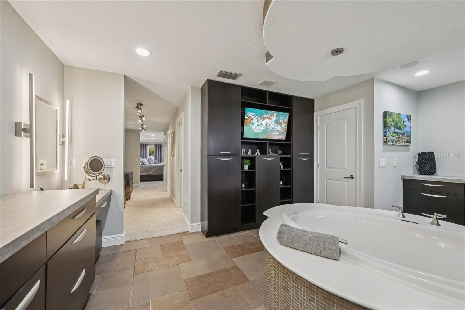 Are you looking for a BIG and BEAUTIFUL Northwest Bradenton home on over a HALF ACRE? This 4-bedroom, 4.5-bath residence delivers space, privacy, and high-end finishes thoughtfully designed for both everyday living and entertaining. The TRIPLE SPLIT floor plan offers exceptional flexibility, ideal for guests or multigenerational living. The heart of the home is a chef’s kitchen, featuring premium appliances including a Sub-Zero refrigerator, induction range, double ovens, wine refrigerator, beverage fridge, built-in Miele coffee maker, and a discreet hidden walk-in pantry that blends style with functionality. The open-concept layout flows into multiple living and entertaining spaces, creating a warm and inviting atmosphere for gatherings large or small. The spacious primary suite is a true retreat, complete with soaking tub, oversized walk-in shower, and dual walk-in closets. Two of the additional bedrooms feature ensuite bathrooms, while a convenient full bath provides direct access to the pool, perfect for seamless indoor-outdoor living. Step outside to enjoy a huge pool and hot tub, outdoor kitchen, and fire pit—an entertainer’s dream. The property is fully fenced, offers room to park a boat, and provides both privacy and versatility. Additional highlights include impact windows, new flooring throughout, Flood Zone X, and a prime location in the heart of Northwest Bradenton, just minutes from Robinson Preserve, Anna Maria Island, and top-rated schools. Come see this exceptional property before it’s gone.