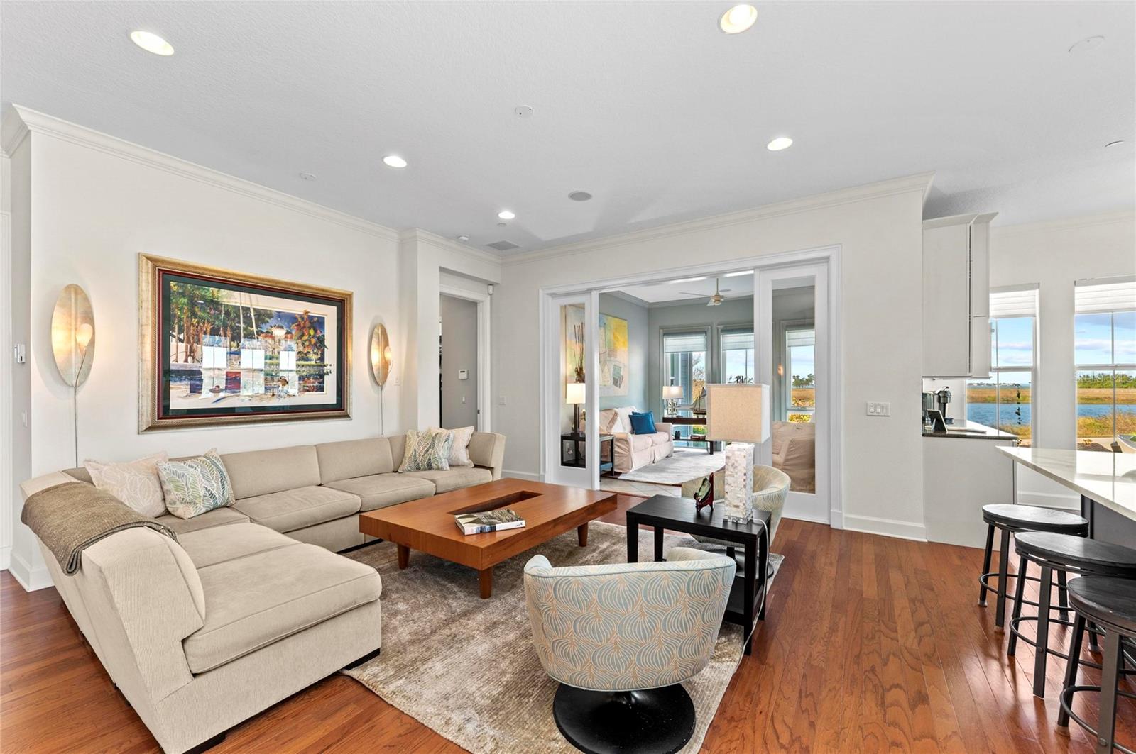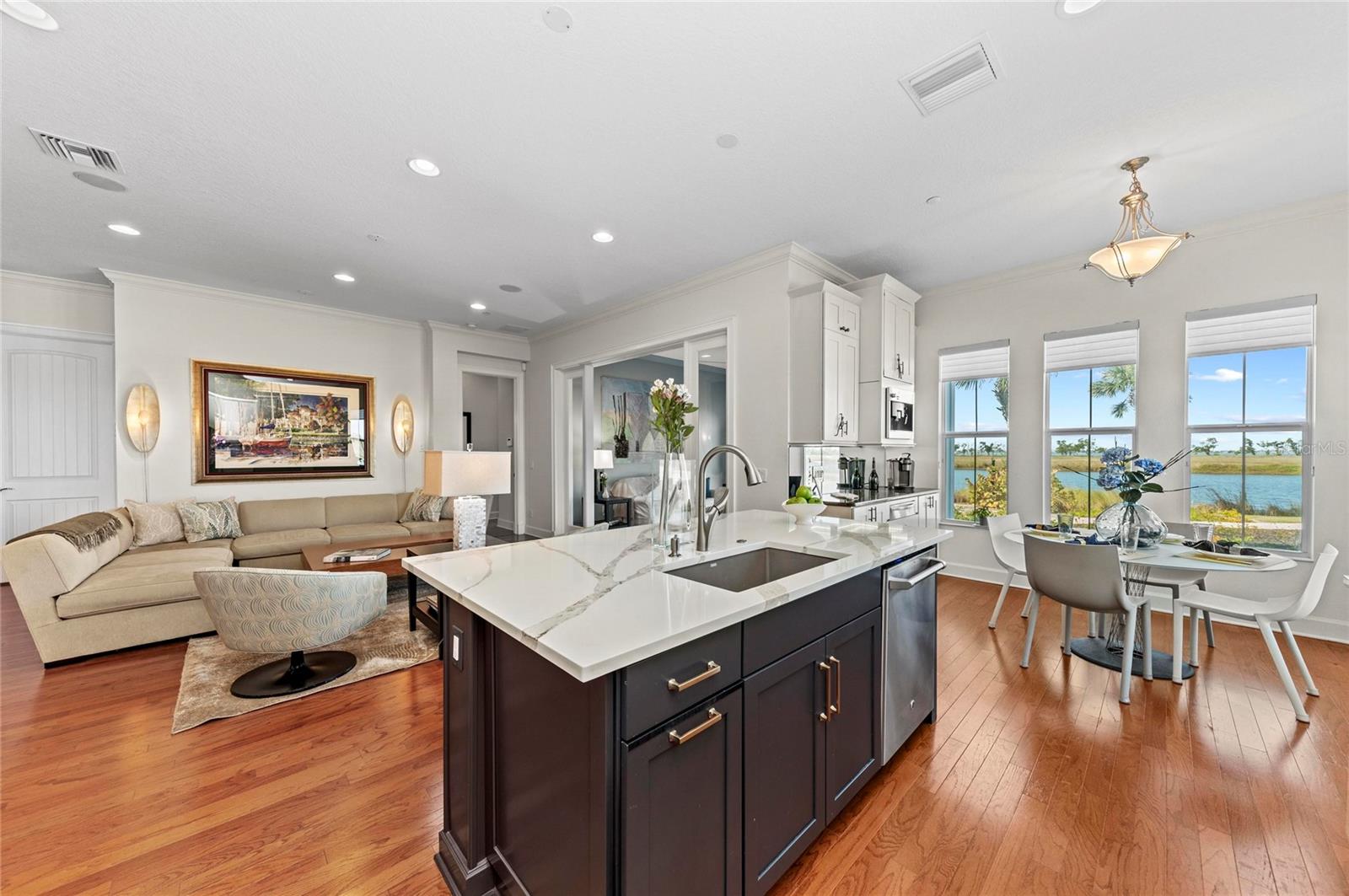 Welcome to your beautiful home with spectacular water views in the luxurious, gated, much sought after, coastal resort community of Harbour Isle on Anna Maria Sound. This spacious three bedroom and three bath Abaco style home has exquisite decor and upgrades galore. (Some furnishings are negotiable.) This light and bright home has expansive water views from the owner’s suite, sunroom (with wall to ceiling windows), kitchen and living area where you can experience unparalleled sunsets and views all the way to Tampa Bay and the Sunshine Skyway Bridge. Focusing on the interior of the property, it features a multitude of upgrades. To name a few, Custom Granite Coffee Bar with built-in warming drawer, back lighting and custom hand made handles, New Quartz countertops throughout, 42” solid wood cabinets, updated granite(Banco) sink in the Kitchen, updated Laundry room, Dining room custom built in Book Shelve with back lighting, Custom music speakers throughout the home. Custom window treatments including hunter douglas pirouettes and silhouettes, gorgeous tile and wood flooring in main living area, kitchen and bath, upgraded carpet in two bedrooms, stainless steel appliances in the kitchen, custom window treatments, crown molding and an oversized two-car garage. The building has green LEED certification, block construction with Hardie board exterior siding and PGT impact rated windows. It is strong and built to last. Harbour Isle is second to none. While inside the gates at Harbour Isle, explore two miles of neighborhood walking trails and stroll to the nearby neighborhood pools with outdoor grills, cabanas, fire pit and kayak launch for the 38-acre lake. End the day with an incredible sunset at the 23,000 square foot Beach Club overlooking Anna Maria Sound. The Beach Club features resort-style amenities with the Sky Bar, Lounge, Pavilion, Fitness Center, Yoga Lawn, Event Lawn, resort pool, hot tub and a private beach to launch a kayak in the Sound. Just outside the gates of Harbour Isle you’ll find the Margaritaville inspired Compass Hotel, Safe Harbor Marina with wet and dry storage and Floridays waterfront tiki restaurant. Cross the Manatee Bridge and you’re on Anna Maria Island with its sugar sand beaches and quaint island charm. It’s time to start living your best life. Live, relax, enjoy an active lifestyle in award-winning Harbour Isle. This home is special!