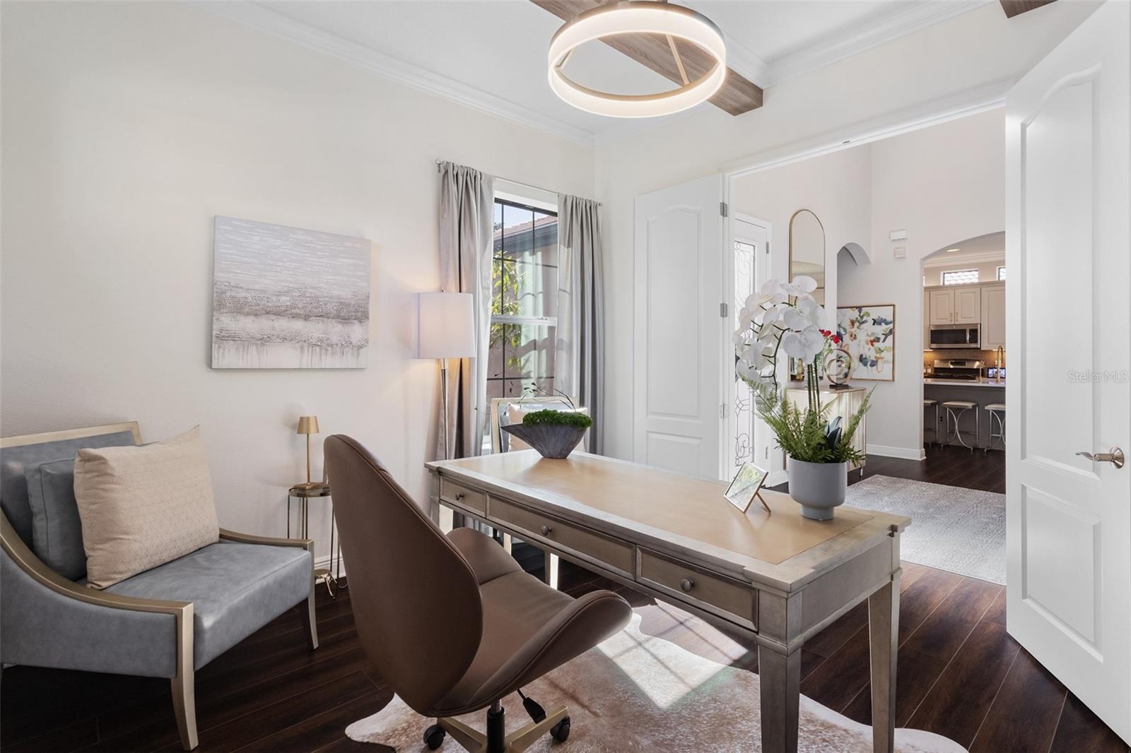 SHOWSTOPPER MULTI-GENERATIONAL POOL HOME WITH DETACHED CASITA IN GATED COMMUNITY – NO CDD! Designed for today’s lifestyle, this stunning 4 bedroom, 3.5 bath, 2,651 sq ft home, saltwater pool with SPF retractable shades for added privacy, offers exceptional flexibility with separate guest quarters / detached casita, perfect for in-laws, guests, home office, or private retreat. Situated on an oversized corner lot with side yard and oversized circular paver driveway, separate side load golf cart garage, this upgraded Chateau floor plan truly has it all. From the moment you enter the grand foyer with glass entry door, you’ll appreciate the designer finishes throughout, including soaring ceilings, cypress accent walls, designer lighting and fans, beams accents, crown molding, custom window treatments, built-ins, cable staircase, and custom closets. A dedicated work-from-home office/study plus an upstairs bonus room provide ideal spaces for productivity and play for the whole family! The chef’s kitchen is the heart of the home, featuring high-end wood cabinetry, abundant counter space, oversized quartz island with breakfast bar, quarts countertops, tiled backsplash, stylish designer hardware, stainless steel appliances, reverse osmosis system, closet pantry, and a dry bar with additional cabinetry—perfect for entertaining. Step outside to your private lanai with heated saltwater pool, ideal for year-round Florida living. This home was built with all the options and is ideal for multigenerational living, remote work households, or anyone seeking space and versatility. Located in Rosedale Golf & Country Club, a 24-hour guard-gated community with NO CDD fees, residents enjoy a full calendar of activities and resort-style amenities including golf, tennis, fitness center, clubhouse, heated Junior Olympic pool, bocce ball, dining, social clubs, and events. HOA INCLUDES: manned gates, security, cable & internet, lawn care, community management, and common area landscaping. PRIME LOCATION: Just outside the gates are A-rated schools, minutes to Lakewood Ranch, UTC shopping, dining, gyms, medical facilities, I-75, Sarasota International Airport, downtown Sarasota, and some of the top-rated beaches in the country. Homes with a detached casita in this location are rare—schedule your private showing today!