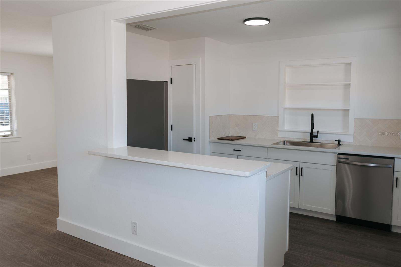 Experience refined coastal living in this completely renovated residence located on one of the highest elevations in Bradenton, where flood concerns are not an issue and no flood insurance is required. Thoughtfully updated from top to bottom with exceptional construction quality, this home offers true peace of mind with a 2022 roof, brand new 2025 water heater, and beautifully refreshed systems and finishes throughout. The interior showcases a bright, open layout with designer flooring, a stunning kitchen featuring custom cabinetry, quartz countertops, stainless steel appliances, open shelving, and seamless flow into the living and dining areas, ideal for both everyday living and entertaining. The spa inspired bathroom features elegant tilework and modern fixtures, while a versatile laundry room offers flexibility to easily convert into an additional bedroom, office, or bonus space, with plumbing already in place. The spacious yard provides ample room to add a pool and is complemented by newly installed fencing along both sides of the property for added privacy. Located in a great neighborhood close to top rated schools, IMG Academy, shopping, dining, downtown Bradenton, Sarasota, and the world renowned beaches of Anna Maria Island, this home offers a rare combination of elevated location, quality craftsmanship, and true turnkey convenience with absolutely nothing left to worry about.