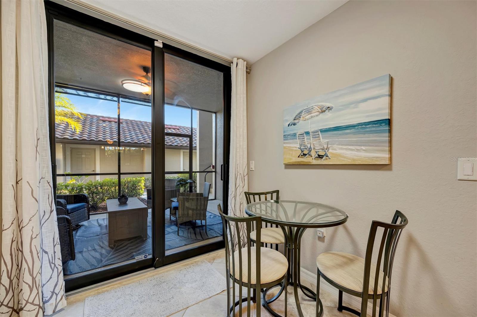 Welcome to 6807 Grand Estuary Trail, Unit 102—a beautifully positioned first-floor River Strand Veranda condo offering the perfect blend of comfort, style, and true resort living. This turn-key furnished, 2-bedroom, 2-bath residence with a den features a flexible, well-designed floor plan, a private one-car garage, and the highly desirable benefit of a golf-deeded membership, allowing you to move in and immediately enjoy the River Strand lifestyle. Inside, the layout feels open, bright, and easy to enjoy. The main living space flows naturally into the kitchen and dining area, creating a welcoming setting for everyday living and relaxed entertaining. The den provides valuable bonus space—ideal for a home office, hobby room, or quiet retreat. Both bedrooms are thoughtfully placed for privacy, while the primary suite offers a calm and comfortable escape at the end of the day. Large windows bring in abundant natural light, and the overall design feels clean, spacious, and ready to enjoy. One of the most appreciated features of this home is its first-floor location. Enjoy the everyday convenience of walking directly from your private garage into the home—no stairs required. Bringing in groceries, golf clubs, or daily essentials is simple and stress-free, with quick access to the kitchen and main living areas. A standout feature of this River Strand condo is the seamless connection to outdoor living. The home offers two separate lanai spaces, giving you more room to relax and entertain. From the back lanai, enjoy a peaceful and private golf course view that creates a quiet, scenic backdrop and enhances the home’s resort-style feel. The front lanai connects directly to the kitchen through glass sliders, making entertaining easy and convenient. This residence is located within the gated and highly sought-after River Strand Golf & Country Club. As a golf-deeded home, it includes full golf privileges with access to the community’s impressive 27-hole championship golf course designed by Andrew Green. A social membership is also included. Beyond golf, River Strand delivers a true resort lifestyle with nine Har-Tru tennis courts, eight pickleball courts, two resort-style pools with spas, multiple satellite pools, two fully equipped fitness centers, and an active social calendar. The clubhouse offers on-site dining along with popular poolside and tiki-style service. The newly updated Tiki Bar is now open, and additional clubhouse and amenity enhancements are underway and scheduled for completion in March 2026. For added convenience and everyday savings, the HOA fee includes lawn care, Spectrum cable and high-speed internet, water, sewer, and trash service, helping simplify monthly expenses and maintenance. Conveniently located just minutes from I-75, this Veranda condo offers easy access to Lakewood Ranch, Sarasota, Tampa, nearby shopping and dining, and the beautiful Gulf Coast beaches. With its first-floor convenience, peaceful golf course views, turn-key furnished interior, flexible den, private garage, golf-deeded and social memberships, and outstanding community amenities, 6807 Grand Estuary Trail, Unit 102 offers a rare opportunity to enjoy easy, resort-style living in one of Bradenton’s most desirable gated golf communities