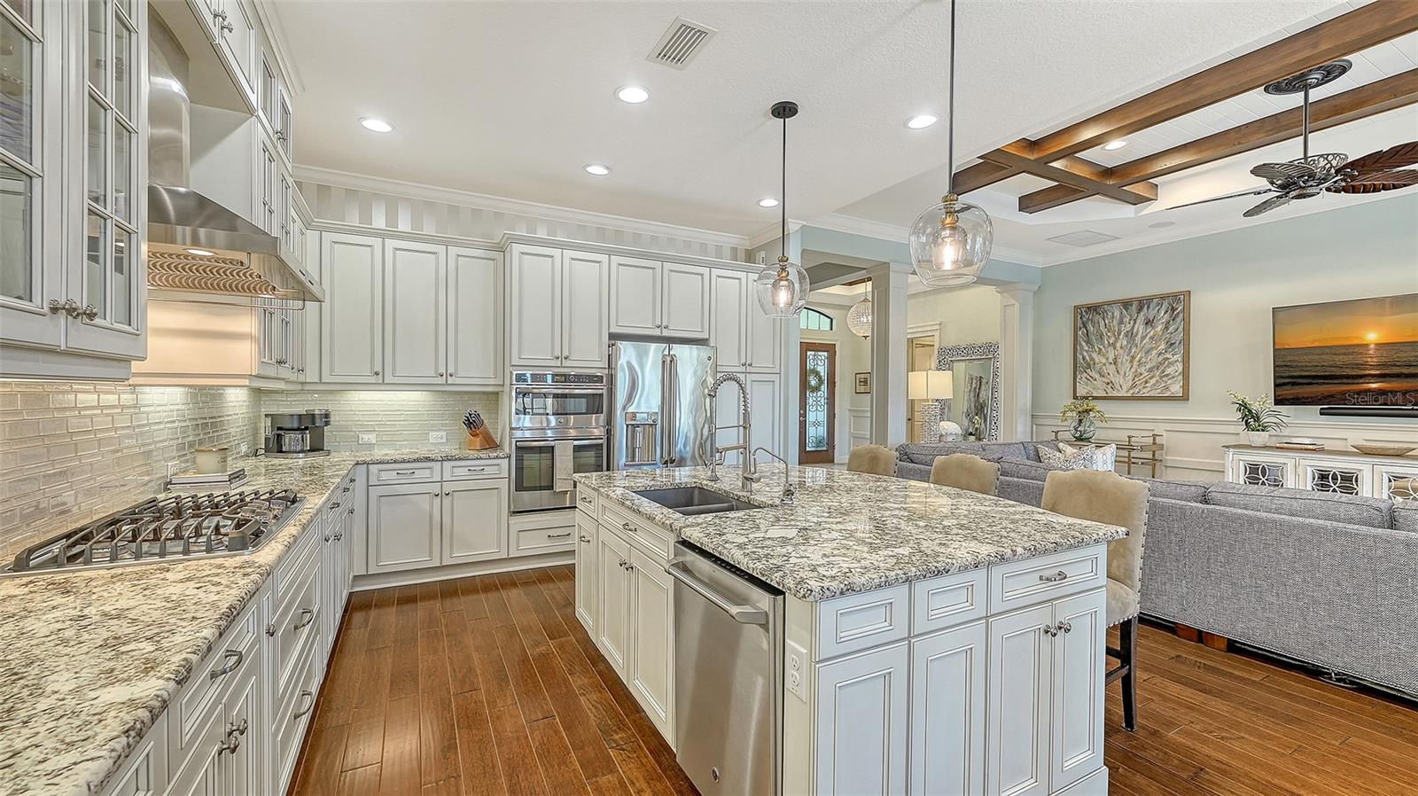 Stunning and immaculate perfectly describe this exceptional home in the highly sought-after Country Club East neighborhood of Lakewood Ranch. From the moment you step inside, you’ll be captivated by breathtaking golf course views showcased through brand-new panoramic lanai screens, creating a seamless connection between indoor comfort and outdoor beauty. The light-filled primary suite is a true retreat, featuring automated window blinds for added privacy, dual walk-in closets, and a spacious spa-inspired bath designed for relaxation. A thoughtfully designed split floor plan ensures comfort for guests, with both guest bedrooms offering walk-in closets and convenient access to a well-appointed guest bath. The chef’s kitchen is both stylish and functional, boasting upgraded GE Profile stainless steel appliances, designer cabinetry, custom pull-outs and shelving, and an oversized center island with additional storage—perfect for entertaining or everyday living. Step outside to your private resort-style oasis, where a custom pool and spa overlook the 10th hole of the golf course. The expansive lanai also features a summer kitchen and television, making it ideal for year-round entertaining and relaxation. Additional highlights include a spacious laundry room with abundant cabinetry and a large storage closet, whole-home water softener system, a new HVAC unit, impact glass windows and doors on the front of the home, and two roll down hurricane screens on the lanai for added peace of mind. Enjoy the convenience of being just a short stroll from The Lodge, where you can dine while taking in views of Royal Lakes Golf Course. Country Club East is located within Lakewood Ranch—the nation’s #1 master-planned community—offering its own hospital, top-rated dining, shopping at UTC, easy access to I-75, and Sarasota’s world-renowned beaches just a short drive away.