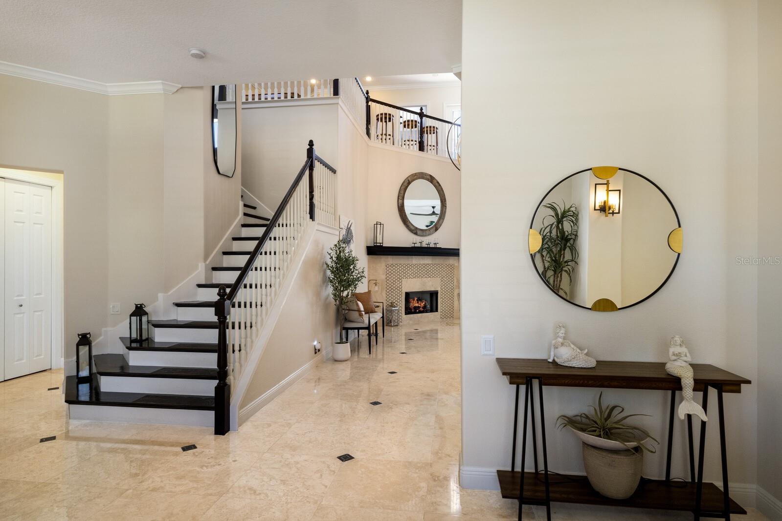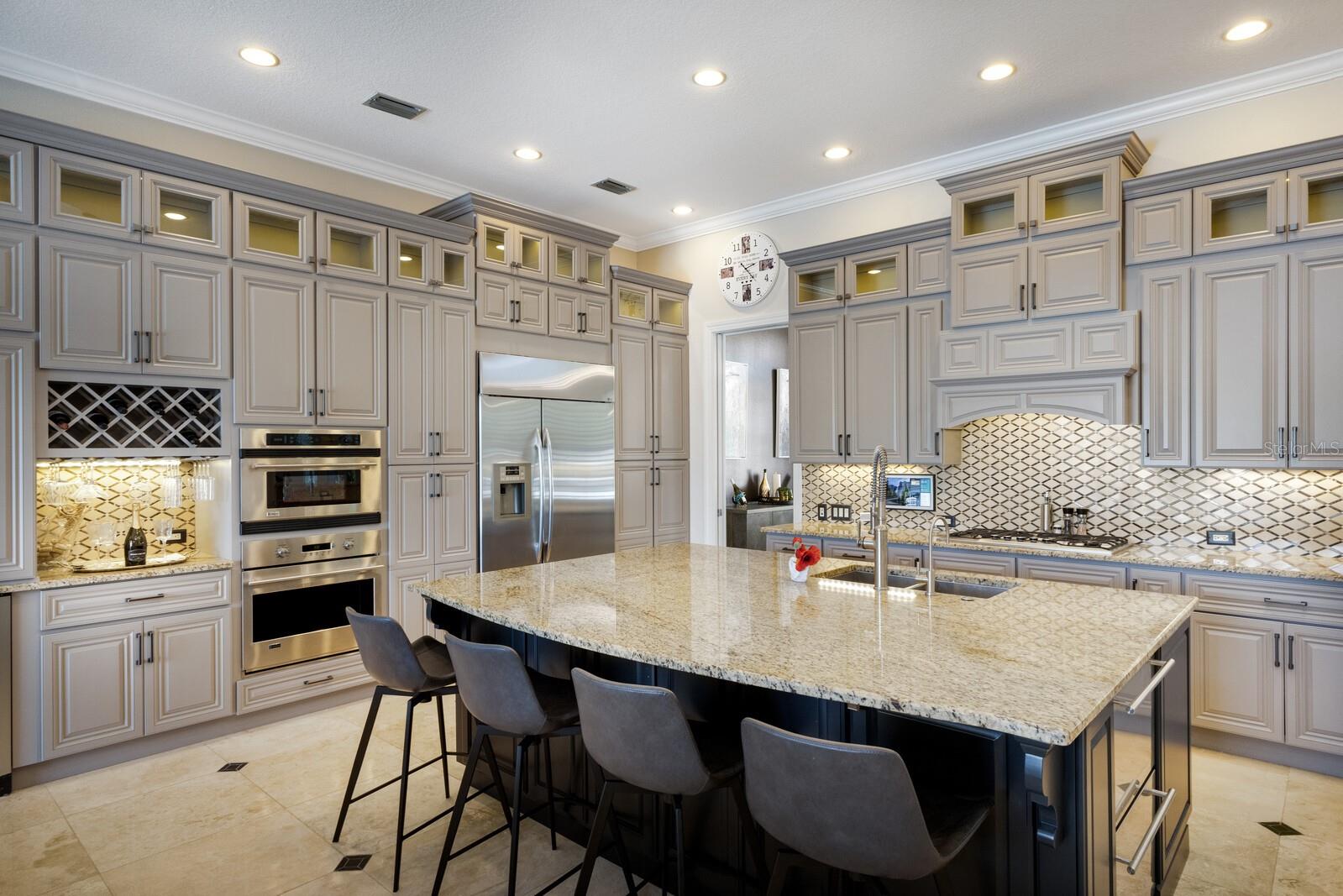 Step into refined coastal living in this five-bedroom residence with office and bonus loft, located within the gated boating community of Harbour Walk at The Inlets. Designed by Rutenberg Homes, this Key West–inspired property blends timeless architecture with modern functionality and direct water access—creating an exceptional opportunity for boaters and those seeking an elevated Florida lifestyle. A welcoming front porch, porte-cochère, and three-car tandem garage introduce the home’s thoughtful design. Notable features include impact glass throughout, new storm shutters, a Generac whole-house generator, water softener, and a kitchen reverse osmosis system—providing comfort and peace of mind. Glass double doors open to a dramatic foyer anchored by a handcrafted wood staircase, flanked by formal living and dining rooms. Inside, travertine flooring, cathedral ceilings, and expansive windows and sliders fill the home with natural light. The chef’s kitchen is equipped with custom cabinetry featuring glass display panels, stainless-steel appliances, granite countertops, and a center island with seating. The adjoining family room flows seamlessly to the outdoor living area, extending the home’s livable space by more than 1,200 square feet. Outdoor living is a true highlight, with polyaspartic flooring spanning the lanai, front entry, and garage for durability and style. The covered lanai includes a summer kitchen with built-in gas grill, ideal for entertaining. The heated pool and spa feature a swim-up table and seating, all overlooking nearly 100 feet of canal frontage. A 22,000-lb boat lift offers quick access to the Manatee River, making this property ideal for boating enthusiasts. The first-floor primary suite serves as a private retreat, offering a sitting area, terrace access, and a spacious en-suite bath. A dedicated office with custom built-ins is also located on the main level. Upstairs, a bonus loft with morning kitchen and private balcony overlooks the pool and waterway. Four additional bedrooms provide flexible accommodations, including one with a Murphy bed, two sharing a Jack-and-Jill bath, and a fifth with a private en-suite and walk-in closet. Ideally located near Sarasota, Bradenton, and Lakewood Ranch, this waterfront home offers convenient access to dining, shopping, and cultural attractions. Award-winning beaches including Anna Maria Island, Longboat Key, and Siesta Key are just a short drive away, along with premier golf courses and marinas—delivering the very best of Florida’s coastal lifestyle.