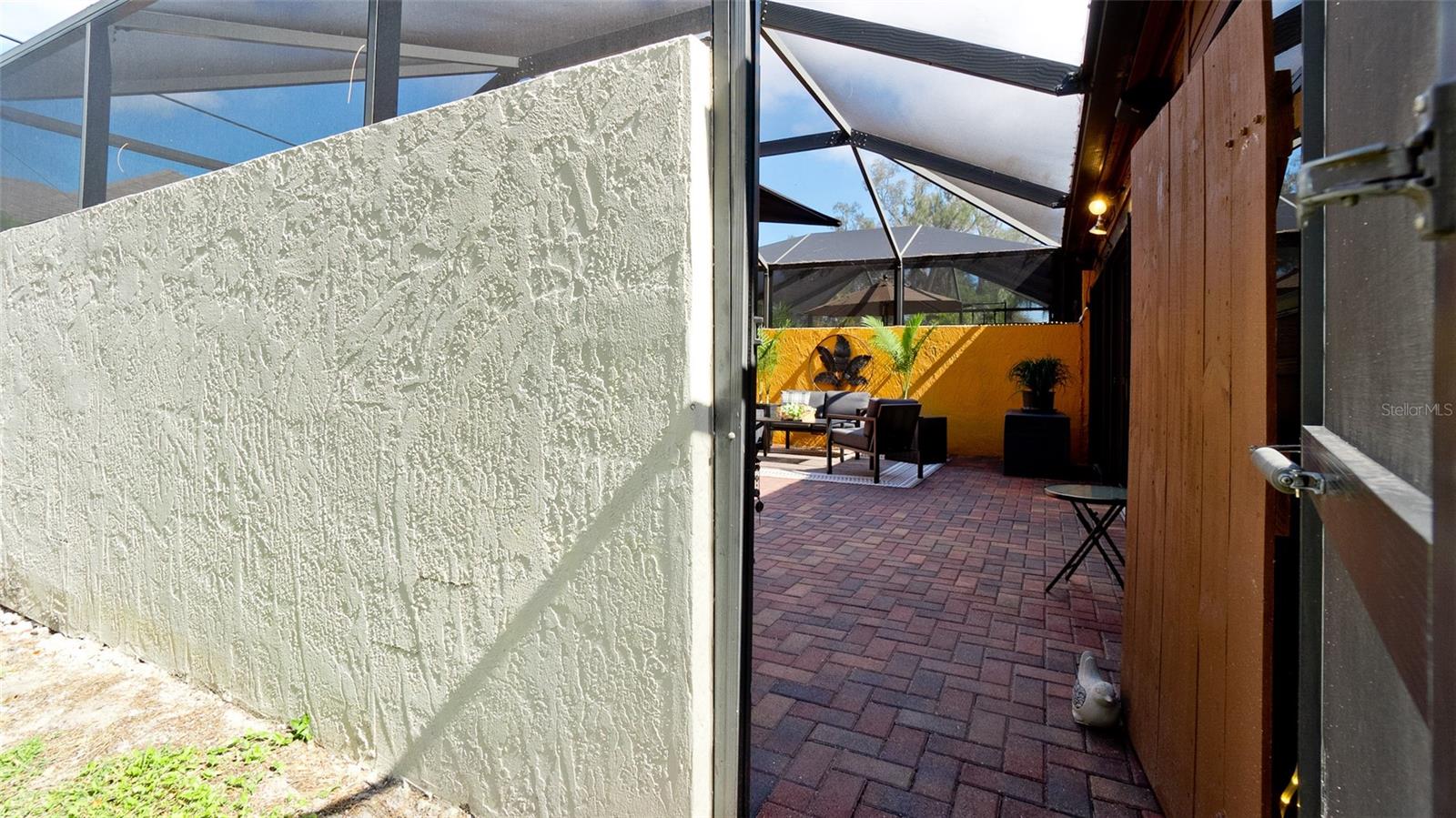 Welcome to this meticulously maintained 2 bedroom, 2 bath end-unit villa with pride of ownership in the heart of Bradenton at Forty Three West Community. Both front and rear screened spacious brick patios for entertaining, relaxing and enjoying Florida living. Because it is an end-unit your guests can park in the designated space and walk directly into the property for convenience. Open great-room living with vaulted ceilings and skylights. Kitchen is well appointed with sliding glass doors to front patio, box window over kitchen sink for herbs or plants with newer stainless steel appliances (Refrigerator 2025, disposal 2024, range, microwave, dishwasher 2010) and granite counter tops. Florida room has been enclosed with sliding doors (shutters included) across the back over looking the massive screened patio with brick pavers for your outdoor retreat ideal for reading, sunning, dining & entertaining. Utility room off of Florida room has ample space for storage and the washer & dryer 2025. Attached one car garage for parking, storage or workshop. Move-in ready. Furniture can stay or be removed for the convenience of the buyer. Forty Three West offers a community pool, spa, clubhouse and tennis/pickleball courts. Minutes to the beautiful world class beaches, schools, parks, golf, medical facilities, restaurants and shopping.
