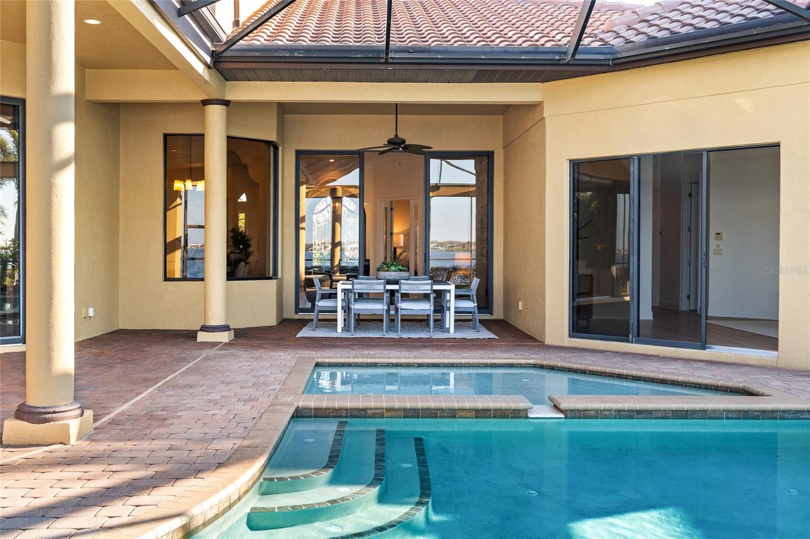 4003 Hawk Island Drive, Bradenton FL Positioned along the picturesque private street that defines Hawk Island, this waterfront estate delivers architectural scale, exceptional privacy, and direct boating access inside one of Bradenton’s most exclusive guard gated communities. With a single road serving the entire peninsula, the setting feels discreet and insulated, yet close to everything that makes life on Florida’s Gulf Coast so desirable. Extensively refreshed with a new roof, new interior and exterior paint, and new flooring throughout, the home presents with a clean, cohesive aesthetic. Inside, beautiful 18 foot ceilings elevate the main living areas, bringing in natural light and showcasing long water views from nearly every primary space. The kitchen anchors the home with generous proportions and seamless connectivity to both formal and casual living areas, designed for everyday living and entertaining without feeling segmented. Expansive glass doors open to a sprawling covered lower lanai, while the upper open air terrace captures elevated sunset views and coastal breezes. The floor plan was intentionally designed for flexibility. In addition to the primary suite, a true second master suite offers comfort and separation for extended guests or multigenerational living. Upstairs, a substantial bonus room and private living area create an ideal retreat for older children or visiting family, offering independence while still connected to the home’s central spaces. Two dedicated office spaces support a work from home lifestyle, including a main office with a private flex room positioned just behind it, ideal for a curated wine room, fitness studio, or secure specialty space tailored to the next owner’s preferences. Outdoor living unfolds across multiple seating areas and is anchored by an oversized pool and spa, along with a separate soak pool that enhances the resort-style setting. A private dock with lift and an observation and fishing pier extend from the rear of the property. With water exposure on both sides of the residence, the views and atmosphere feel expansive, while the positioning remains composed and protected, a rare advantage in Manatee County waterfront living. Enjoy sunrise over the Manatee River where dolphin, rays, sharks, and coastal fish feed in the shallows just offshore. Car enthusiasts will appreciate the four car garage configuration, including two detached bays, along with an oversized drive offering additional parking and a strong sense of arrival. Mature, lush landscaping surrounds the property, reinforcing its privacy and established character. Convenient to Gulf beaches, private golf clubs, dining, no-bridge boating access to Anna Maria Island and Tampa Bay, and the airports of Sarasota and Tampa, 4003 Hawk Island Drive presents a distinctive opportunity within a tightly held waterfront community defined by scale, discretion, and lifestyle.