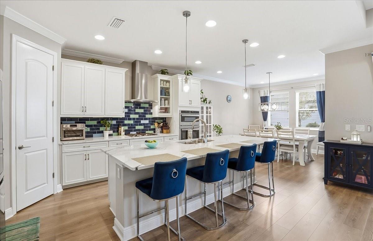 Incredible Lakewood Ranch pool home with a private attached in-law suite and extensive upgrades throughout. Located in the gated community of Woodleaf Hammock, this spacious residence offers 4 bedrooms, 5 bathrooms, a first-floor office, and an upstairs loft ideal for a gym, playroom, or hobby space. The second level also features a full bath and generous storage. The attached in-law suite includes its own exterior entrance, making it ideal for multigenerational living, long-term guests, or a private caretaker space. Complete with a living room, kitchenette, bedroom, and full bath with walk-in shower, it providing comfort and independence. In the main home, the upgraded gourmet kitchen is designed for both everyday living and entertaining, featuring quartz countertops, a large center island, soft-close cabinetry, and a dedicated coffee bar area. The kitchen opens seamlessly to the spacious living room with tray ceiling and whole-home stereo system. Each bedroom includes its own bathroom, offering privacy and convenience for everyone. Step outside to a true backyard retreat. The extended travertine lanai surrounds a heated saltwater pool and a fully equipped outdoor kitchen with cabinetry and gas hookup, perfect for year-round entertaining. Additional features include a tile roof, brick paver driveway, full gutter system, two zoned HVAC systems, and no storm damage from recent hurricanes. Located in preferred Flood Zone X (no flood insurance required). Woodleaf Hammock residents enjoy a resort-style community pool, grill area, pickleball courts, dog park, and playground. Lakewood Ranch has been the nation’s top-selling multigenerational master-planned community for eight consecutive years, offering A+ rated schools, dining, shopping, and entertainment, all just under 18 miles from the Gulf Coast beaches.
