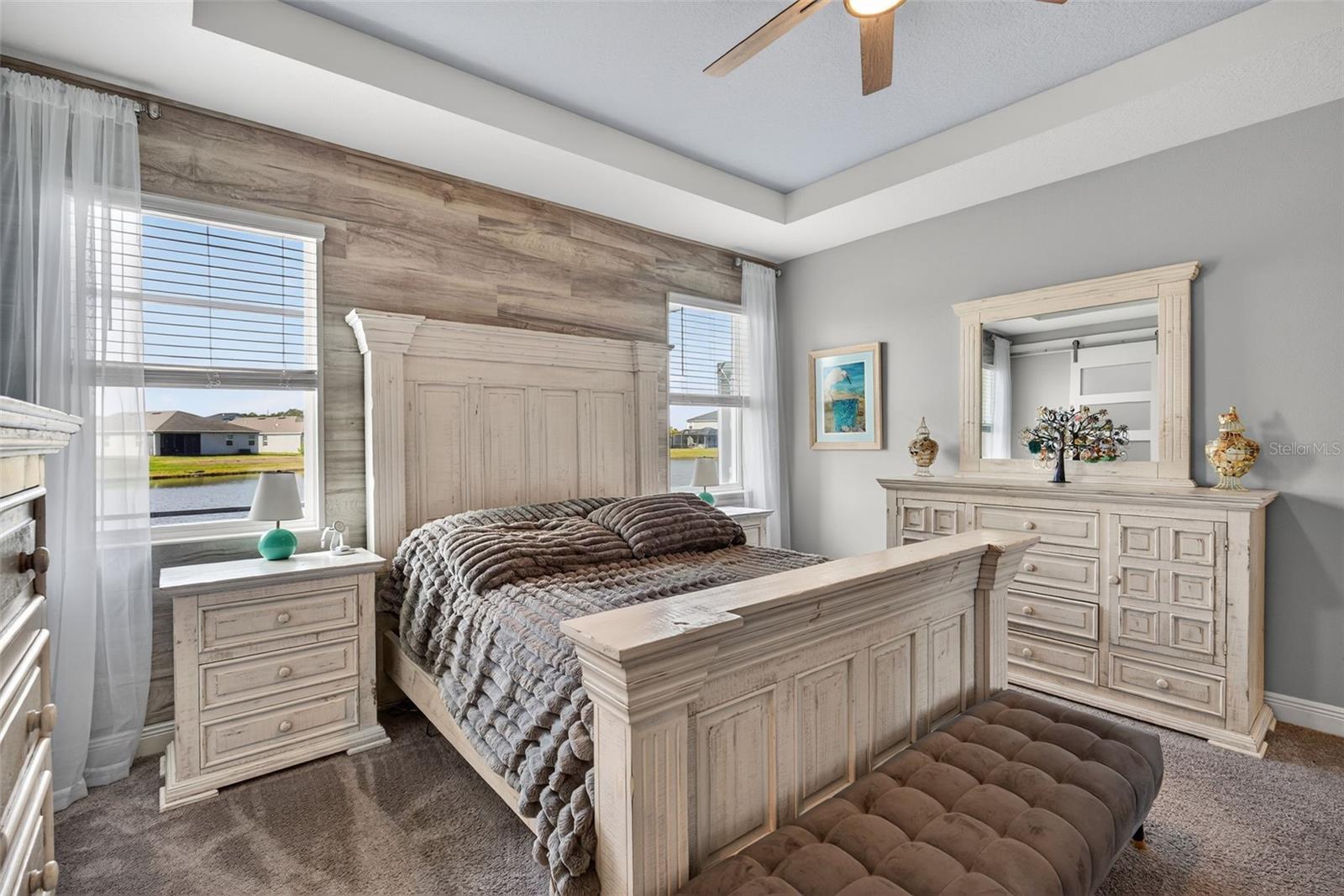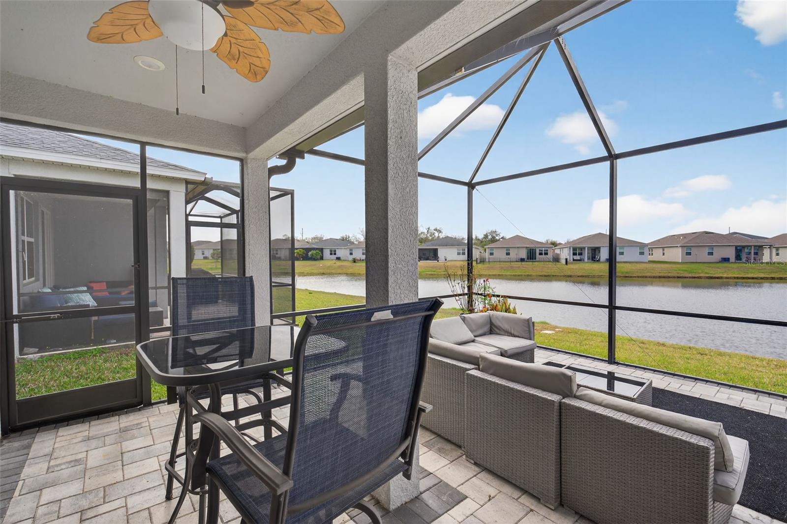 Located in the sought after gated community of Avaunce in Lakewood Ranch where residents enjoy low HOA fees and no CDD fees. This beautifully upgraded 4 bedroom 3 bathroom home offers 2,340 square feet of thoughtfully designed living space. Upon arrival, you are greeted by a beautifully kept exterior with a wide paver driveway, lush landscaping, and a welcoming front porch that sets the tone for the elevated finishes found inside. Step into a bright, custom-designed interior that feels like a model home with luxury vinyl flooring, custom painting, upgraded lighting, and thoughtful woodwork throughout. The open living room is anchored by a stunning custom built-in entertainment center that instantly elevates the space while offering both beauty and function. Large windows frame peaceful water views and fill the room with natural light, creating a relaxing atmosphere whether you're hosting guests or enjoying a quiet night in. The kitchen features rich cabinetry, quartz counters, a beautiful tile backsplash, updated fixtures, and an oversized island perfect for gathering. A walk-in pantry with custom shelving adds convenient storage. The adjoining dining area blends seamlessly with the main living space, keeping everything connected. The owner’s suite is a retreat of its own with tray ceilings, custom woodwork, a spa-like bathroom, and a dream closet outfitted by Closets by Design. Wake up to gorgeous water views and enjoy the peace of a truly private space. At the front of the home, an additional bedroom with en suite bathroom offers a second primary suite option that is ideal for multigenerational living, guests, or a private office suite. Two additional bedrooms and a full bathroom are positioned thoughtfully for privacy and convenience. Custom closet systems continue throughout the home, making organization effortless. Step outside to the screened-in back porch with over almost 640 sq ft of outdoor living. Brick pavers, custom lighting, a mounted TV, and a private hot tub create a resort-style atmosphere that overlooks the sparkling lake. This is the perfect setting for morning coffee, sunset cocktails, or weekend gatherings. Additional upgrades include a water filtration system, epoxy flooring in the garage, custom fans throughout the home, and impeccable attention to detail in every room. Avaunce is a gated community offering a pool, outdoor kitchen area, and activity center. Everyday conveniences are just minutes away with major grocery stores, shopping, and restaurants nearby. For lifestyle and entertainment, you are close to UTC Mall, Waterside Place, and endless dining and cultural experiences. Florida’s world-famous beaches are only a short drive away, and the home is zoned for A+ rated schools. Enjoy the convenience of being only eight houses away from the community pool. Even better, there are no CDD fees for added value and peace of mind. This home brings together luxury, comfort, and a beautifully designed floor plan in one of Lakewood Ranch’s most desirable gated communities.