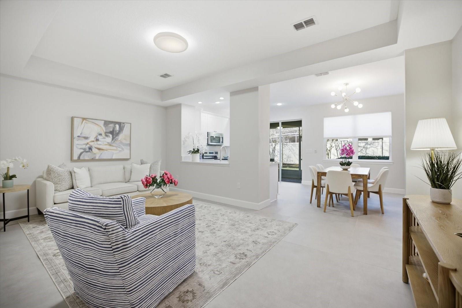 Welcome to 11969 Brookside Drive, a thoughtful blend of smart design and modern comfort in the desirable Harmony community of Lakewood Ranch. This 3-bedroom, 2.5-bath (new toilets) townhome features 1,698 sq. ft. of beautifully updated living space with a 2-car attached garage. A new roof was installed in November of 2024. Step inside and discover the open concept first floor, perfect for entertaining. The living and dining areas flow seamlessly into an eat-in kitchen that boasts brand-new quartz countertops, shaker-style cabinets, a farmhouse sink, garbage disposal, stove, and dishwasher. Durable, large ceramic tile flooring was added in 2024, complementing the freshly repainted interior and providing a polished, cohesive look throughout. A convenient half-bath and screened porch complete the main floor. Upstairs, the spacious owner’s suite offers tray ceilings, a large walk-in closet, and an ensuite bathroom. Two additional bedrooms provide ample space, each thoughtfully designed. An upstairs laundry room with a washer and dryer adds to the convenience. New luxury vinyl plank flooring with new baseboards were installed in November of 2024. Enjoy a host of community amenities, including a heated pool, fitness center, playground, clubhouse, and walking trails. With central heating, electric heat, new high-efficiency AC (installed September 2025), and pet-friendly policies, this home truly checks all the boxes. Nestled in a prime location near shopping, dining, and the area’s stunning beaches, this townhome invites you to live the Lakewood Ranch lifestyle. Contact us today for a private showing!