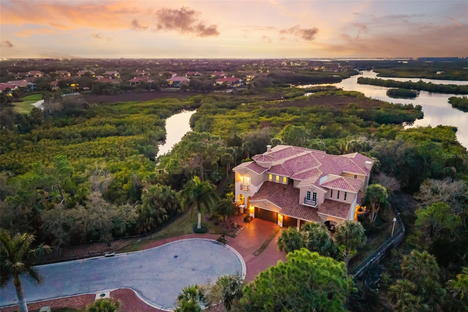 This one-of-a-kind residence in Waterlefe Golf & River Club offers a rare blend of Manatee River vistas and secluded preserve living. Positioned at the end of a private cul-de-sac, the home was specifically reconfigured to maximize westward-facing sunset views and natural privacy. Inside, artisan woodworking and soaring ceilings define the architectural aesthetic. The layout flows seamlessly from an open-concept kitchen and fireside family room to a dedicated dining area and an expansive pantry with integrated storage. A vaulted bonus room, anchored by a stately chandelier and custom millwork, serves as a refined retreat for hosting, inclusive of French doors that open to one of the home’s three private outdoor escapes. The backyard oasis features a private pool with convenient access to a built-in grill and custom firepit, all framed by lush, undisturbed greenery. Upstairs, newly installed luxury vinyl plank (LVP) flooring leads to a primary suite designed as a viewing gallery for the river. The 35-foot screened balcony provides a quiet sanctuary, combined with an over-the -top primary bathroom - allowing you to escape from the hustle and bustle of daily life - combining to create the perfect vantage point for morning coffee or evening sunsets. Follow the walkway overlooking the lower level to the front of the home which leads to the third bedroom. Featuring French doors and its own private balcony, this space offers elevated views of the saltwater preserve and the 1st and 9th holes of the championship golf course. Waterlefe is more than a home; it's a destination. The renovated River Club serves up resort amenities including a restaurant, fitness center, Tiki bar, and Junior Olympic pool. Intertwined with Waterlefe Golf Club - host of the US Open Local qualifier an unprecedented 8 times! Discover why this "one-of-one" floor plan is the hallmark of the #lefelife.. Taxes include the CDD.