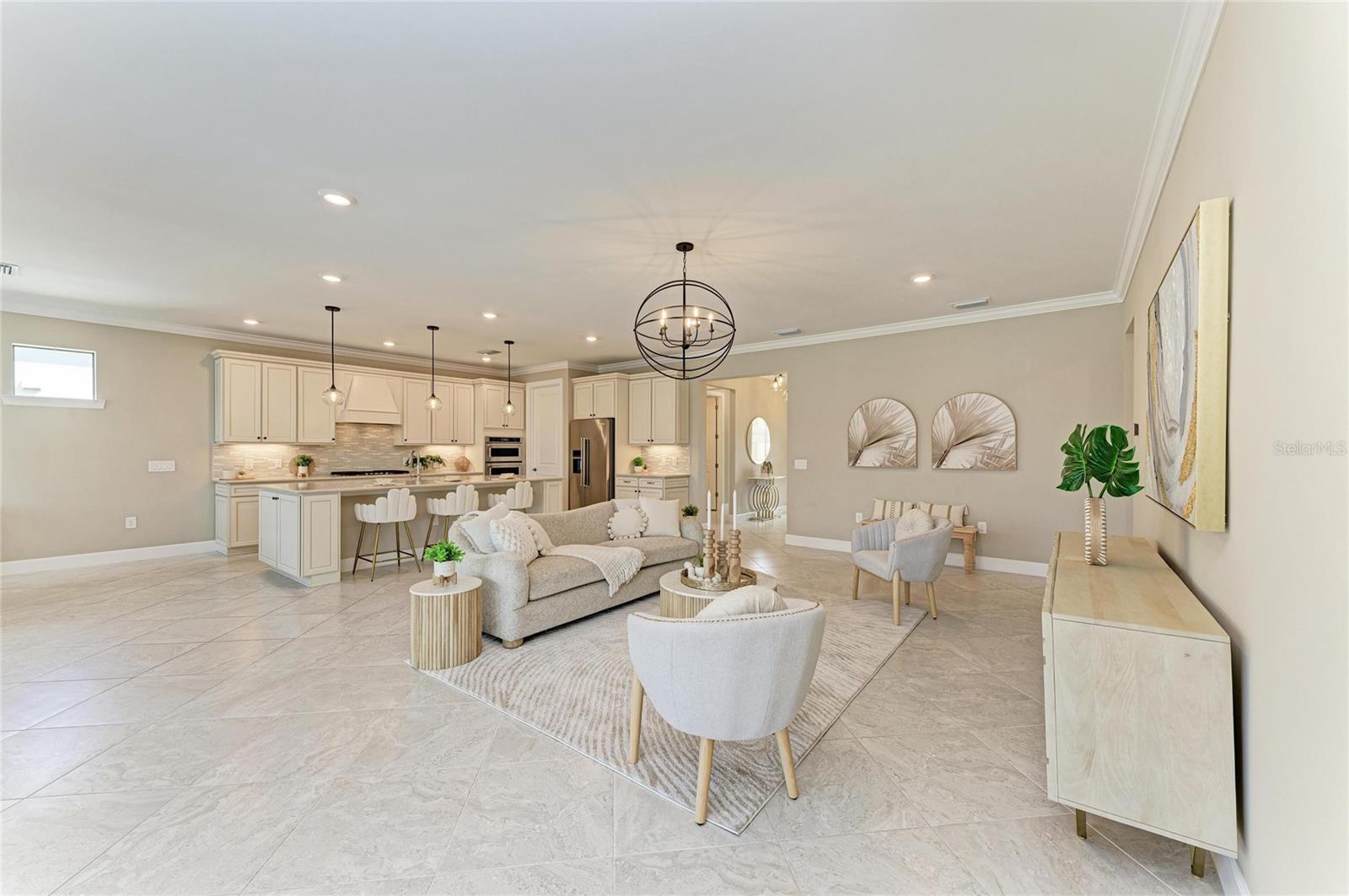 Welcome to your private sanctuary in Del Webb at Lakewood Ranch, where shimmering water views, golden sunsets, and resort-caliber living come together in perfect harmony. Set on an extra-deep cul-de-sac homesite, this expanded Stellar model with 4 bedrooms, 4 baths, and a flexible office space is designed for the way you want to live. From the moment you enter, your eyes are drawn beyond the main living space to a breathtaking panoramic lake view, framed by a panoramic screen that makes the outdoors feel like a living work of art. Imagine starting your mornings with coffee as the water glows in the early light and ending your evenings with spectacular sunset skies reflected across your custom pool and spa. The outdoor living experience is nothing short of extraordinary with an expansive paver lanai, a fully equipped outdoor kitchen, and generous gathering spaces that invite celebrations, quiet evenings, and everything in between. Enjoy safety with electronic hurricane shades in lanai. This is where memories are made. At the heart of the home, the chef’s kitchen is both stunning and practical, with glazed ivory cabinetry, quartz countertops, an impressive 11-foot breakfast bar, and top of the line KitchenAid appliances. Whether hosting holidays, intimate dinner parties, or casual brunch with friends. Throughout the home you’ll find crown molding, tray ceilings, designer lighting, and custom window treatments elevating the space with warmth and sophistication, while the thoughtfully designed layout offers the privacy and comfort you and your guests deserve. The upstairs is complete with bonus room, bedroom and bathroom making this the perfect retreat for visiting family, long-term guests, or a peaceful escape all your own. Even the oversized 3-car garage has been enhanced for real life, with abundant storage and a custom workbench for hobbies, projects, and organization. Beyond your front door, life unfolds in the vibrant, amenity-rich Del Webb community where you can enjoy morning fitness classes, afternoons by the resort pool, pickleball with neighbors, art studio creativity, evening events, and a full-time lifestyle director curating experiences that turn neighbors into lifelong friends. And all of this is set within Lakewood Ranch, where waterside dining, boutique shopping, farmers markets, championship golf, cultural events, and the Gulf Coast’s world-famous beaches are just moments away. This is more than a home, it’s where your next chapter feels like a permanent vacation. For extra peace of mind sellers providing a one year home warranty. Start living the life you deserve in this exceptional home.