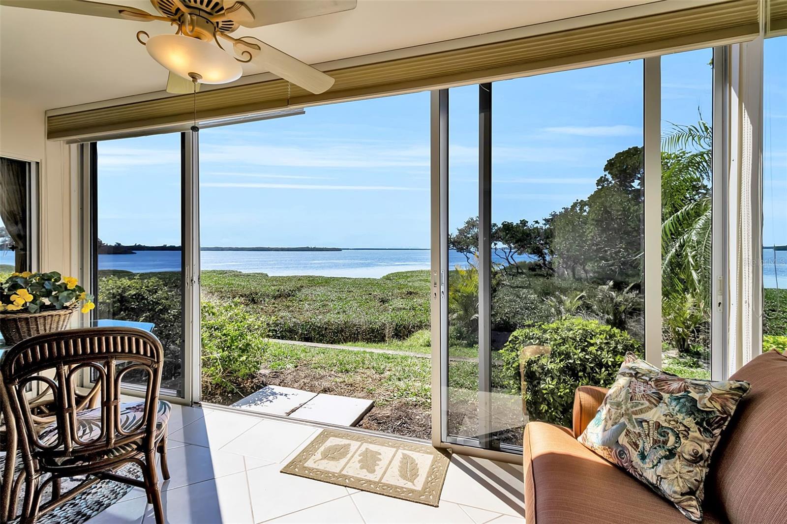 Welcome to paradise in the highly sought-after Mount Vernon community with open, million dollar bay views and gorgeous sunsets! This immaculate 2-bedroom, 2bath ground floor end unit with a carport offers the perfect blend of comfort, convenience and coastal charm. It is a rare opportunity for a bayfront, ground floor end unit to come on to the market and this one is in pristine move-in ready condition and is being sold turnkey furnished. From the moment you enter you will fall in love with the light filled open living and dining areas, beautiful decor, peaceful setting and expansive water views. This condo is ready for you to enjoy the effortless Florida living in this well maintained and active 55+plus community know for it's spectacular waterfront and park like setting. Residents of Mount Vernon enjoy an active, resort-style lifestyle featuring a clubhouse, heated swimming pool, tennis and pickleball courts, shuffleboard, fitness center, walking and biking trails, a kayak launch and storage, a bayfront covered pavilion with grills, boat slips and boat ramp providing access to the bay (only $25 one time fee, with availability). The community also offers workshop and hobby rooms along with a variety of social clubs and activities, creating a vibrant and welcoming atmosphere. Mount Vernon also offers an outstanding proximity to the region’s most desirable destinations including Anna Maria Island, Longboat Key and downtown Sarasotata, making it easy to enjoy Sarasota’s cultural scene and the areas Gulf Coast beaches. Whether you're looking for a full time residence or seasonal retreat this condo checks every box! Schedule your private showing before this gem is gone!