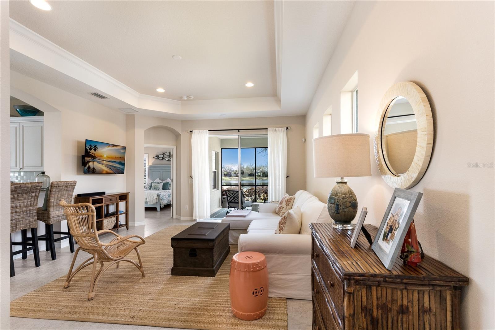 Impeccably kept and barely lived in 2 Bedroom + Den, 2 bath home with a BRAND NEW ROOF, Water Heater, and AC with a water view, is everything you need. Ample amounts of natural lighting lends itself to a peaceful and refreshing space. In addition to the upgrades in the home are plantation shutters throughout, tray ceiling in living room, transom windows, granite countertops in the kitchen, freshly renewed landscaping, and crown molding. Watch the water sparkle from the moment you walk through the front door. Have coffee on your lanai in the most peaceful setting. The home is directly situated across from the community’s walking paths, then the dog park, and then the community amenities, giving you close proximity while still feeling comfortably removed. CENTRAL PARK is a gated community in the heart of Lakewood Ranch, ideally located near everything the area has to offer, including restaurants, bars, nightlife, grocery stores, gyms, Lakewood Ranch Main Street, Waterside Place, and The Mall at UTC with its extensive shopping and dining. Just outside the gates are top-rated schools including Gullett Elementary, Mona Jain Middle School, and Lakewood Ranch High School, along with LECOM and Manatee Technical College East Campus. This location also offers convenient access to Sarasota-Bradenton International Airport and the Gulf Coast’s renowned beaches. Residents enjoy exceptionally low HOA fees that cover irrigation, gated entry, community management, common area maintenance including landscaping and irrigation, a park and pavilion, two dog parks, a playground and splash pad, tennis courts that also accommodate pickleball, and sports fields.