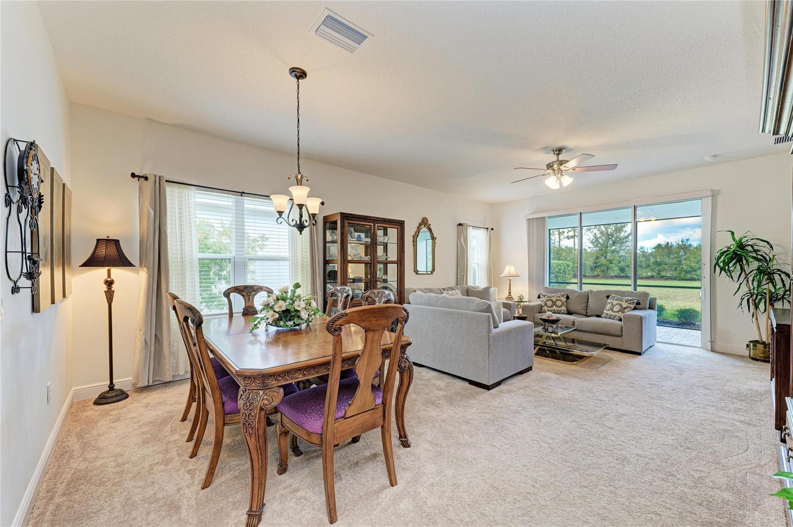 One or more photo(s) has been virtually staged. Welcome to Indigo in Bradenton, Florida! Built in 2023 by Neal Communities, this beautifully maintained Sandcastle villa offers 3 bedrooms, 2 baths, plus a versatile den/flex room with 1,832 sq ft under air (2,596 total). Ideally positioned facing a peaceful preserve, the screened lanai provides a private setting to relax and enjoy Florida living. The open-concept design features maple cabinetry with upgraded 42" uppers, undercabinet lighting, roll-out shelving, stainless steel appliances, and dimmer lighting in main living areas. The spacious primary suite includes an impressive 11x6 walk-in closet with added shelving. Additional highlights include ceiling fans with lights throughout, an interior laundry with a washer and dryer included, abundant storage, and a 2-car garage with extra driveway parking. Upgrades include range and dryer outlet conversions (electric or gas), home security system, Levolor S-shaped vertical blinds, and a screened lanai. Indigo offers a vibrant lifestyle with a private villa, pool, and outdoor kitchen, plus a main clubhouse featuring a café, kitchen, resort-style pool and spa, fitness center, and pickleball courts, and a full-time activities director coordinating social events and classes. Conveniently located near beaches, golf, shopping, dining, schools, and more. Ideal for full-time living or a seasonal retreat.
