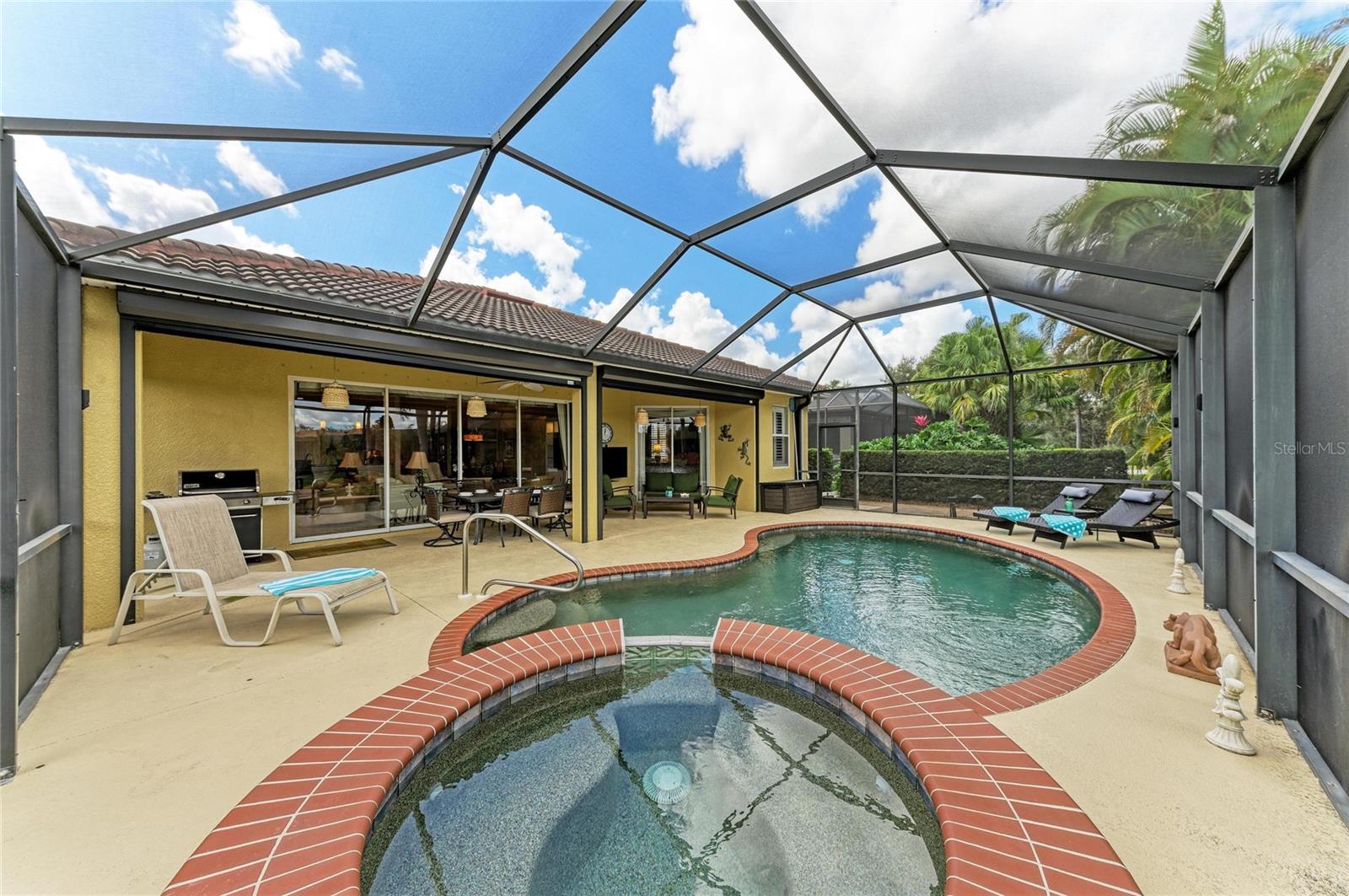 Location, location, location! You’ve heard the golden rule of real estate & that’s just one of the things that make this home so SPECIAL! Located well within the gates of River Strand Golf & Country Club with a stunning water view & a cul-de-sac location, this home is your perfect TROPICAL OASIS. This home comes with a GOLF-DEEDED Membership which means you only pay cart fees for this lush, well-maintained 27-hole golf course. The BONITA is a favorite floor plan because it offers an OPEN CONCEPT but the best part is the expansive GREAT ROOM which flows seamlessly out to your lanai through quadruple sliding glass doors. Imagine the fun you’ll have with your friends and family sitting outside enjoying your favorite beverage while grilling out or taking a dip in your SALTWATER pool and spa-this is the epitome of Florida living. Let’s talk about UPDATES which make this home unique: Starting with the front entry which has been screened, allowing you to leave the door open to feel the beautiful breeze through your home. NO CARPET here, as the bedrooms all have wood-look ceramic tile. Don’t worry about bugs, the owners have re-screened using 20/20 screening & installed a misting system around the pool cage. The Kitchen has GRANITE countertops, and the owners have contracted and paid for KITCHEN CABINETS to be refaced with new doors, facings & hardware which is to be completed in May. Newer HVAC, Water Heater, Washer & Dryer & Pool Pump add up to serious $avings for you. In the event you need it they installed hurricane rated screens which come down to cover the lanai area. Outside you’ll see the exterior has been painted, landscape lighting added in back by the pool cage, the lanai has been painted & sealed as well as the driveway and back paver area. I’m serious, they thought of everything and now this lovely home is waiting for you. River Strand Golf & Country Club is a friendly community with a 27-hole Arthur Hills designed golf course, 9 Har-Tru Tennis Courts, 8 Pickleball courts, 2 Resort-Style Pools, 6 Satellite Pools, currently renovated Clubhouse set to open mid-March with a restaurant & social events, Community Center & 2 fitness centers in this luxury gated community with 24 hr. security & lawn maintenance. Convenient location to I-75, Costco, Target, Hobby Lobby & more, University Town Center, & beaches complete the package. River Strand Golf & Country Club More than a Community, It’s a Lifestyle.