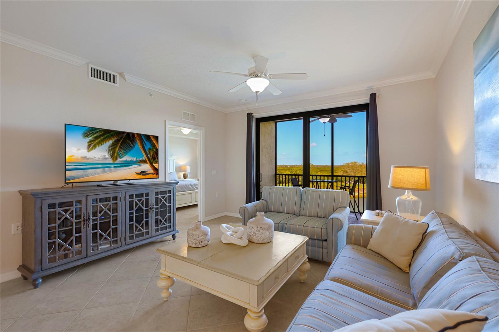 Welcome to 7005 River Hammock #304, a residence that rises above the competition by offering the complete package buyers are searching for in River Strand: a prime wide-open water and preserve view, tile flooring throughout, tasteful turn-key furnishings, a recently replaced AC unit, a private storage unit, and the tremendous value of golf membership included in the HOA dues. From the moment you enter, the difference is easy to feel. The home is bright, clean, and inviting, with an open layout that flows effortlessly from the dining area to the living room and out to the screened lanai. Large sliders frame a peaceful backdrop of water, greenery, and open sky, creating the kind of view that immediately sets this unit apart. Many condos offer interior space, but not all offer a setting like this. Here, the view becomes part of the living experience, bringing a sense of calm, privacy, and everyday beauty that buyers remember long after they leave. Inside, the tile flooring throughout is a major advantage, giving the entire residence a more cohesive, upscale look while also making maintenance simple. The kitchen features granite countertops, abundant cabinetry, stainless appliances, and an open connection to the main living area that keeps everything feeling connected and functional. The furnishings are light, coastal, and comfortable, perfectly complementing the relaxed Florida lifestyle this property is all about. Being sold turn-key furnished is another major reason this unit stands out. Buyers can close, bring a suitcase, and begin enjoying River Strand immediately. There is no long to-do list, no waiting, and no extra expense to furnish the home before it can be enjoyed. Whether you are searching for a full-time residence, a winter retreat, or a property with strong rental appeal, the convenience here is hard to overstate. The private storage unit adds even more value, giving you practical extra space for golf clubs, beach gear, owner items, and seasonal storage. The lifestyle is where this property truly separates itself. Golf membership is included in the HOA dues, giving owners access to one of the community’s most sought-after benefits without the burden of an added membership cost. Beyond golf, River Strand offers the resort-style amenities buyers want most, including pools, tennis, pickleball, fitness centers, dining, and a vibrant social atmosphere. This is the kind of community where mornings begin on the lanai, afternoons can be spent on the course or by the pool, and evenings can end with dinner, friends, and the feeling that you are living in a private resort rather than an ordinary condo community. For buyers comparing what is currently available, 7005 River Hammock #304 checks the boxes that matter most: the better view, hard-surface flooring throughout, updated comfort with the newer AC, true turn-key convenience, extra storage, and the built-in value of bundled golf and outstanding amenities. This is more than just another condo for sale. It is a polished, move-in-ready opportunity to own a beautifully furnished piece of the River Strand lifestyle with the kind of comfort, scenery, and ease that make it stand out from the rest.