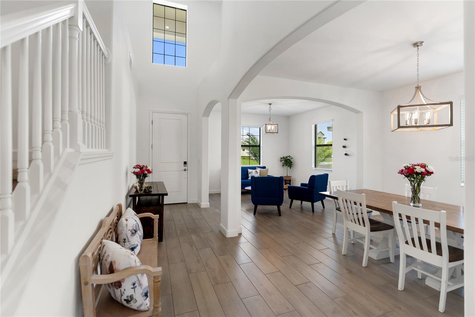Welcome to refined, resort style living in one of Lakewood Ranch’s most sought after gated communities, where space, style, and everyday comfort come together seamlessly in this beautifully designed five bedroom, three bathroom residence in Lorraine Lakes. Thoughtfully designed for both comfort and functionality, this spacious home offers a desirable layout featuring a first floor bedroom and full bath ideal for guests, multigenerational living, or a private office, while the primary suite and additional bedrooms are privately situated upstairs alongside a versatile loft space. The main living area showcases an open concept design filled with natural light, enhanced by soaring ceilings, expansive tile flooring, and seamless indoor outdoor flow overlooking peaceful water views. The chef’s kitchen is both stylish and functional, complete with crisp white cabinetry, quartz countertops, stainless steel appliances, a large center island with seating, and a walk in pantry, all opening to the dining and living areas perfect for everyday living and entertaining. The primary suite offers a relaxing retreat with generous space, a spa inspired bathroom, and ample storage, while the upstairs layout provides flexibility for a variety of lifestyles. Step outside to a covered and screened lanai where tranquil lake views create the perfect backdrop for morning coffee or evening relaxation. Residents of Lorraine Lakes enjoy an exceptional resort style lifestyle with amenities including a grand clubhouse, resort pool with cabanas, lap pool, state of the art fitness center, indoor basketball and volleyball courts, tennis and pickleball courts, playground, splash park, arcade, social director, and an on site restaurant and bar. Ideally located in the heart of Lakewood Ranch, this home offers convenient access to top rated schools, shopping, dining, golf courses, and is just a short drive to the world renowned beaches of the Gulf Coast including Anna Maria Island, Siesta Key, and Lido Key, as well as Sarasota, Bradenton, St Petersburg, and Tampa. This is a rare opportunity to enjoy luxury, space, and resort style living all in one exceptional home.
