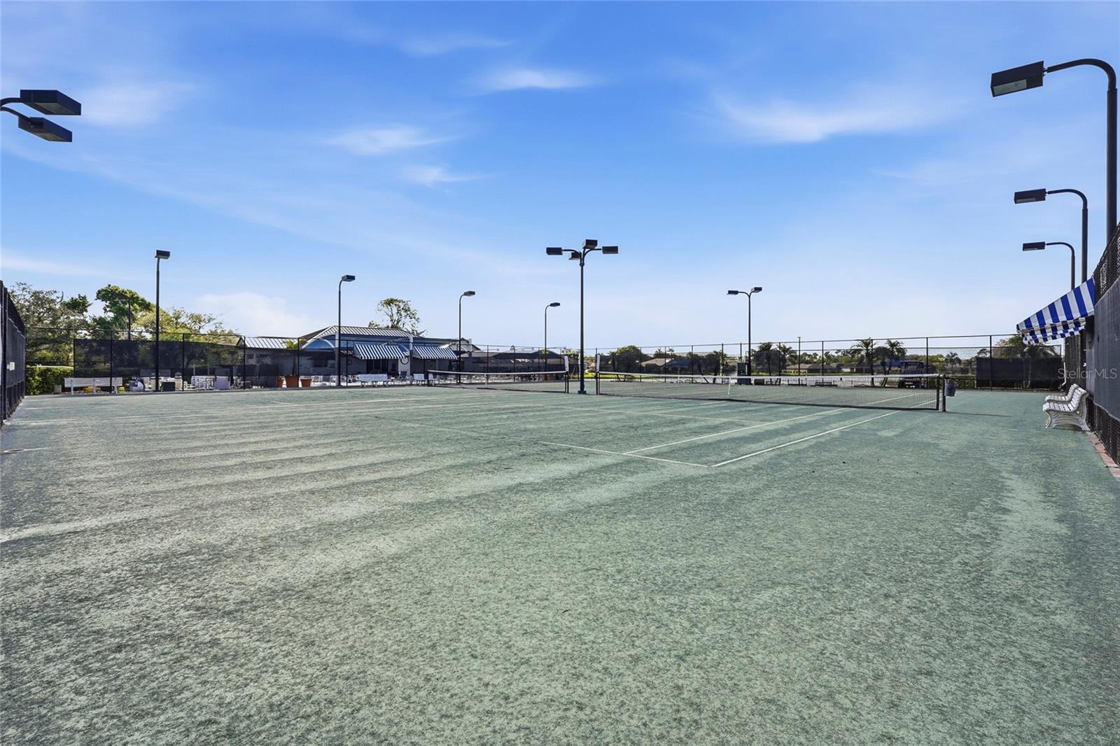 Welcome to this charming 2-Bedroom, 2-Bathroom + Den Pool home ready for immediate occupancy. As you enter through the front door, you'll be delighted by the light and airy living space and the tile and laminate flooring throughout. The split bedroom floor plan is ideal for both owner and guest privacy. The spacious den, featuring French doors, is perfect for a home-office or bonus room, or it could easily be converted to a 3rd bedroom. The sliding doors pocket seamlessly into the outdoor area creating an easy indoor-outdoor transition that welcomes the ultimate Florida lifestyle. The interior features crown molding, upgraded lighting and fans, and plantation shutters throughout. The thoughtfully designed kitchen features granite countertops, stainless steel appliances, a spacious island, and extra storage all overlooking the main living area. The inviting patio features brick pavers, a built-in outdoor grill and bar with a mini-refrigerator, a sparkling pool, and a private view with no rear neighbors. Here you will experience a lifestyle of comfort and sophistication in a serene golf community setting. Enjoy peace of mind knowing these major updates are complete: tile roof (2017), HVAC (2022), a new well pump, hot water heater, a re-screened pool cage, exterior repainting, and a whole-home surge protector installed within the last couple of years (2023-2024). Tara Golf & Country Club offers residents a vibrant country club lifestyle with outstanding amenities, including a championship 18-hole golf course, driving range, practice facilities, a pro shop, tennis and pickleball courts, a fitness and aquatics center, dining, and a full social calendar with events suited for a variety of interests. This is a Class A Golf Membership home. Centrally located just minutes from the area's finest shopping and dining, Lakewood Ranch Main Street, Lakewood Ranch Hospital, and I-75.