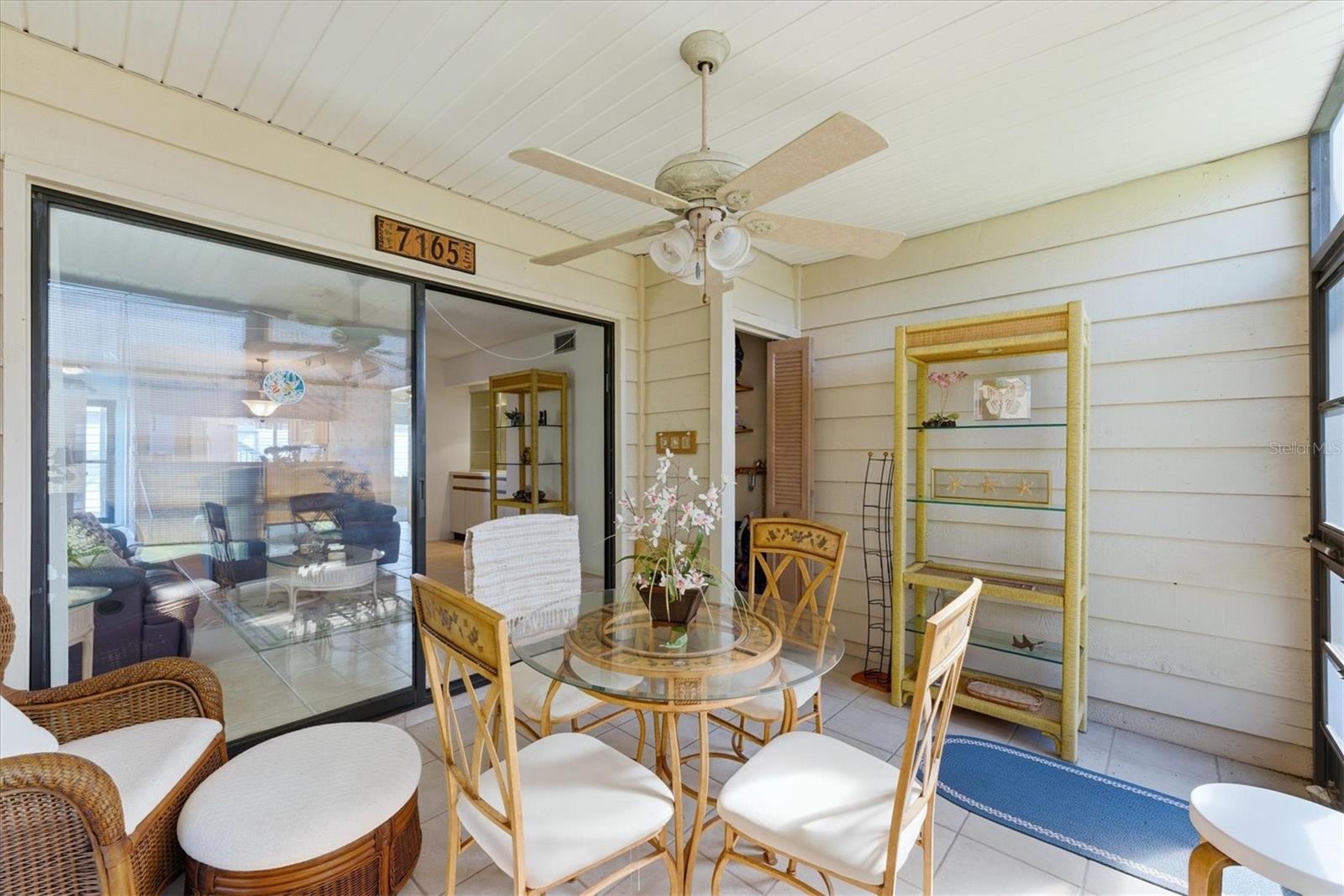 Wake up just steps from the sparkling community pool in this bright, turnkey-furnished first-floor corner condo with a NEW A/C (2025), located in the welcoming 55+ community of Country Village. The corner location brings in extra natural light, while the ground-floor setting offers easy everyday living just outside your door. Inside, the dining area opens to a spacious living room that becomes the home’s main gathering space—perfect for relaxing evenings, visiting with friends, or simply enjoying the day-to-day rhythm of home. The kitchen features abundant cabinetry, a large pass-through that keeps it connected to the dining area, and a sunny breakfast nook for casual meals and everyday routine. Sliding glass doors from the living room open to the screened lanai, where you can enjoy the fresh Florida air and peaceful green surroundings. The split bedroom layout offers comfortable separation between spaces. The primary suite provides generous room to unwind along with a large vanity area and an en suite bathroom with walk-in shower, while the second bedroom and full guest bath offer flexible space for visitors, hobbies, or a home office. Residents enjoy beautifully maintained grounds, cable and internet service, exterior pest control, and roof care, along with community amenities that include a sparkling pool and spa, shuffleboard courts, and inviting gathering spaces for social events and laid-back afternoons. Just minutes from some of Florida’s most breathtaking Gulf beaches, this location also places shopping, dining, and entertainment within easy reach—making it simple to enjoy everything the Gulf Coast lifestyle is known for.