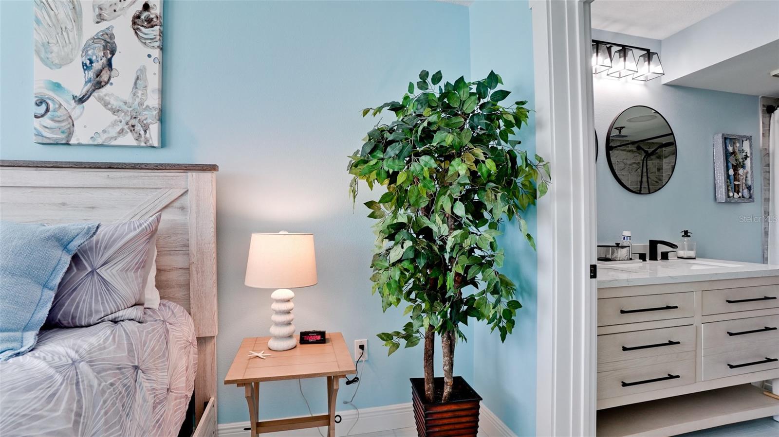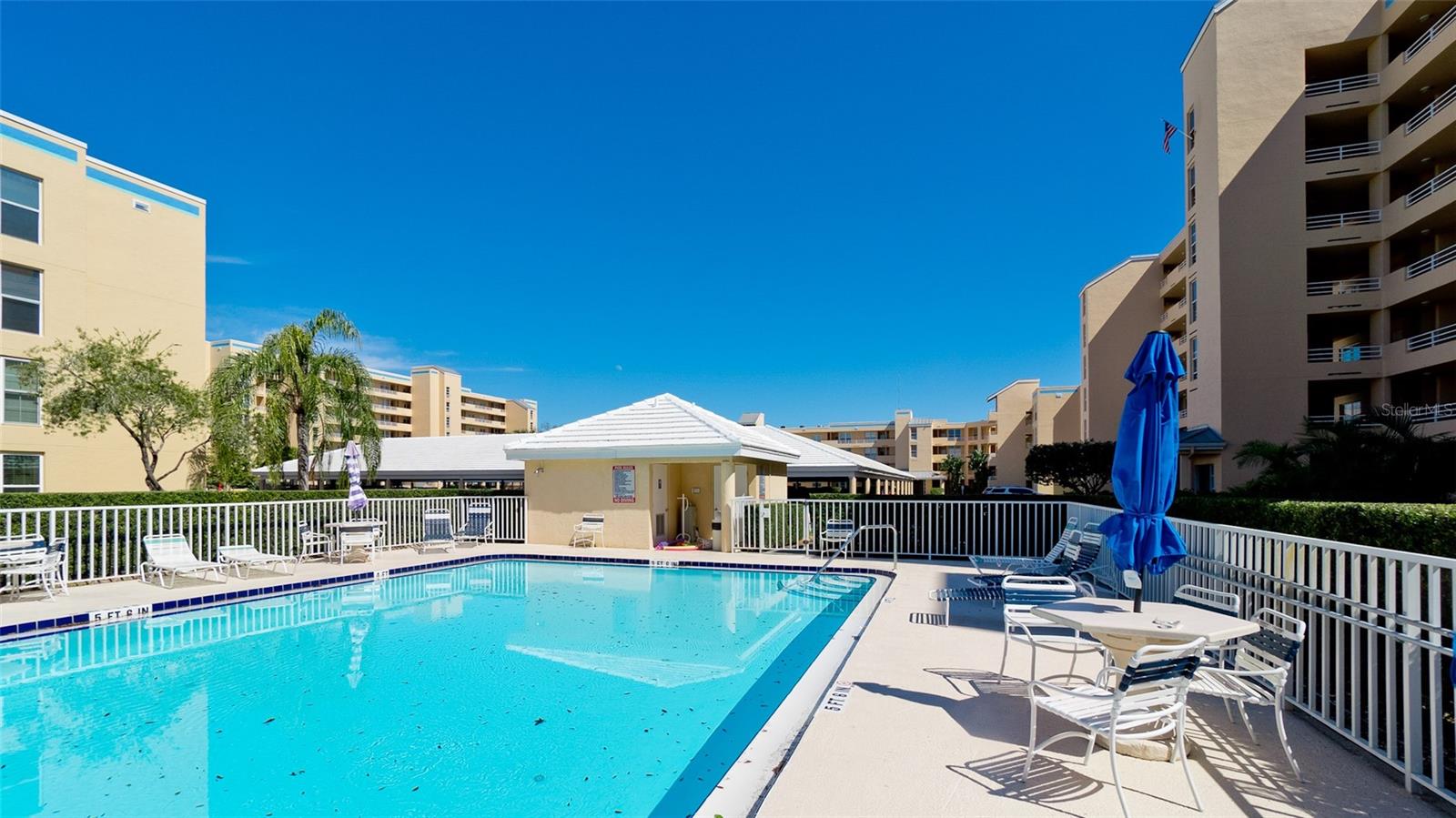 Walk right into tropical splendor, from the tranquil color palate, extended open concept design & the full wall of hurricane sliders providing your unobstructed view, from your 250 sq foot open air balcony, overlooking the golf course! (Pay as you play, NO membership required!) You've just entered into this spacious 2-bedroom, 2 bath split plan that is beckoning you to enjoy the "vacation lifestyle", permanently. Tastefully decorated & coordinated throughout, you'll want your friends & family to invite themselves over to show off this exceptional find. Complete with stainless steel appliances w/water & ice in the door, quartz counters throughout, new led lighting & ceiling fans, bathrooms including vanities & new water saver toilets & dual sink vanity in primary bathroom. Tiled floors throughout the home add to the ease of care. You have the option to eat at the table in your large kitchen or enjoy the bar pass through, which can accommodate up to 4 barstools. Extra floor to ceiling pantry cabinets were also completed in the renovation less than 3 years ago. Your guest room is located in the front of the unit to allow privacy from the primary suite. This area also has a full bath, complete with a soaking tub for relaxation. Your full size laundry room is conveniently located in this vicinity & includes cabinets for extra storage as well. Extra cabinets & counters were also added to your generous size kitchen. Everything can be tucked neatly away. To conclude this project, hurricane windows & sliders completed the ambiance throughout. Continue onto your dining area which leads into the living room and then right onto the lanai. The open air balcony is rare and only available to the first floor units in 2 buildings. The primary suite has a generous size walk in closet that was carefully planned out with the design to accommodate all your essentials. The bathroom has two vanities to allow space for getting ready. A custom glass door was specially designed for this space, completely frosted for privacy with allowing light to permeate in. The assigned covered parking is right underneath the building with ample guest parking throughout the complex. Enjoy 2 pools, one right downstairs, the other at the clubhouse & fitness center, just a short walk from the unit. There is an abundance of activities in the area including world famous beaches, fast food to 5 star restaurants, golf, boating, fishing, shopping & boutiques, grocery stores, cruise ports, spring training & multiple airports. Come and discover this exceptional unit & lifestyle! AC 5 years old, water heater, less than 3 years old. Furnishings negotiable. Home was rented out for 2 seasons, never occupied full time, only seasonal. Locked storage closet is also included in the owner storage area on the same floor, perfect for seasonal items.