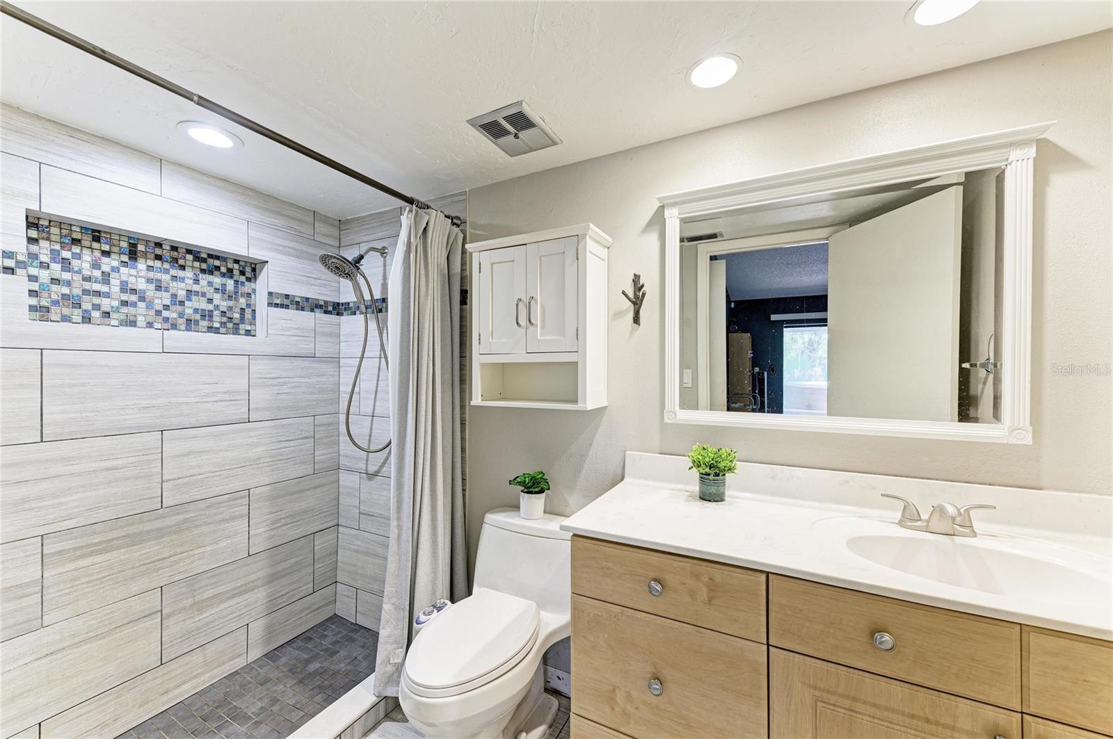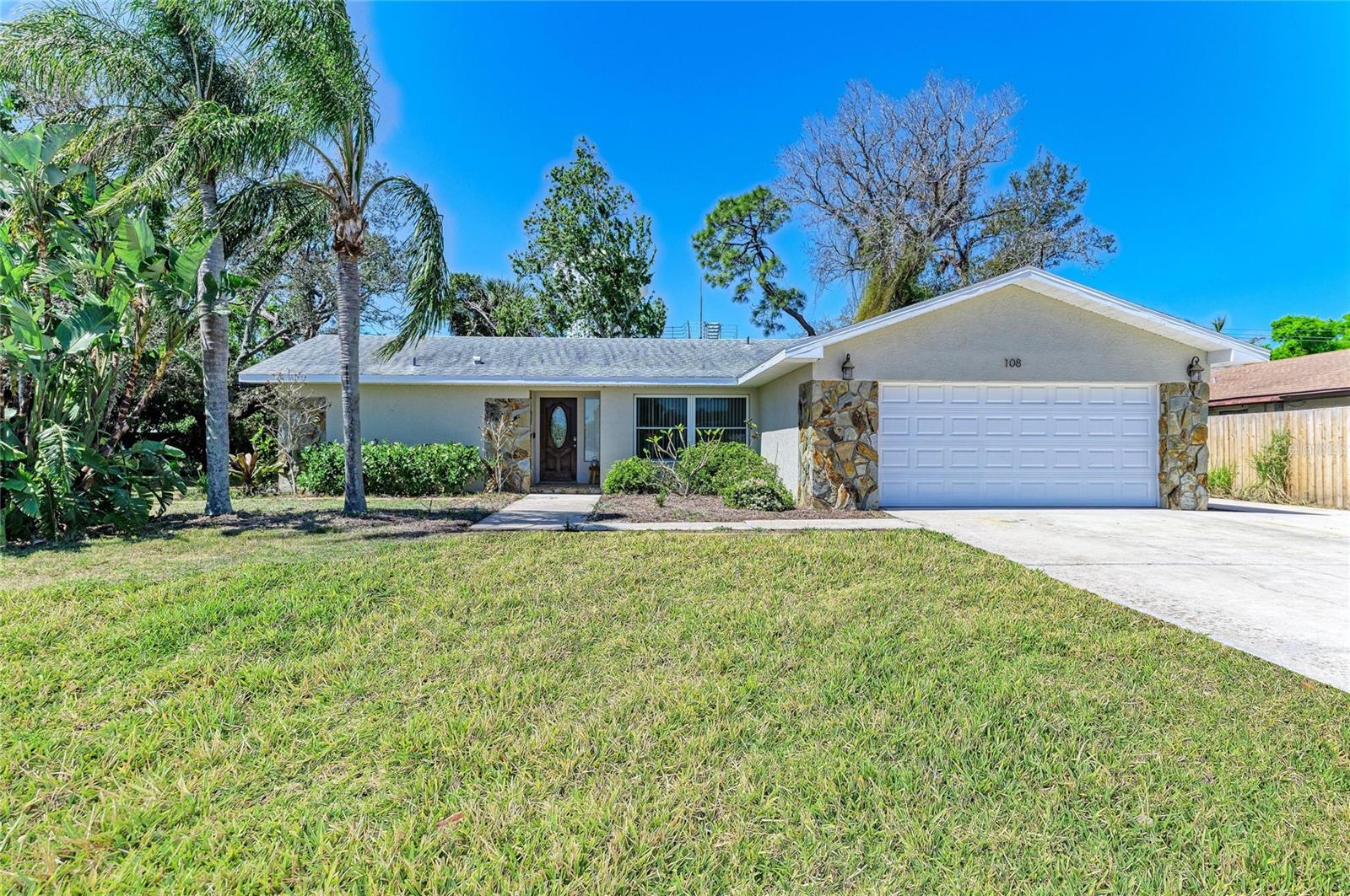 One or more photo(s) has been virtually staged. This charming, move-in-ready home in Palma Sola Village is located just minutes from the pristine beaches of Anna Maria Island. Nestled on a spacious 1/3 acre corner lot, this 3-bedroom, 2-bathroom, 2-car garage house with storage shelves features a split floor plan and vaulted ceilings with an abundance of living space. This home is brimming with potential to become your personal paradise with plenty of room to add a pool, outdoor kitchen or storage shed. The home provides with 3 separate pocket door sliders that open to the screened-in lanai with a luxurious hot tub. The large family room off the kitchen is outfitted with a wood burning fireplace, offering a cozy and warm area for family gatherings. The primary bedroom provides a high vaulted ceiling, ensuite bathroom, walk-in closet and sliders to the lanai. The guest bedrooms provide privacy or is perfect for a home office. Outside, enjoy extra parking space with a wide driveway including a parking pad, providing plenty of room for multiple cars and vehicles.. The friendly neighborhood often gathers for holiday celebrations with the best Halloween Trick-or-Treating in the area and Christmas eve luminaries, plus top rated schools, Publix, Target and post office nearby adds to the convenience of this perfect location. The HOA fee is only $150 annually, allows minimum one year rentals and is pet friendly. Spend your weekends exploring the stunning beaches, boutique shops, and delectable dining options that Anna Maria Island has to offer. The vibrant arts and culture scene, as well as various outdoor activities, are all within easy reach. Don't miss the opportunity to make this home in NW Bradenton your own private haven. Don’t miss out on this fantastic opportunity to make it your own. Homes rarely come available in this neighborhood, schedule a showing today!