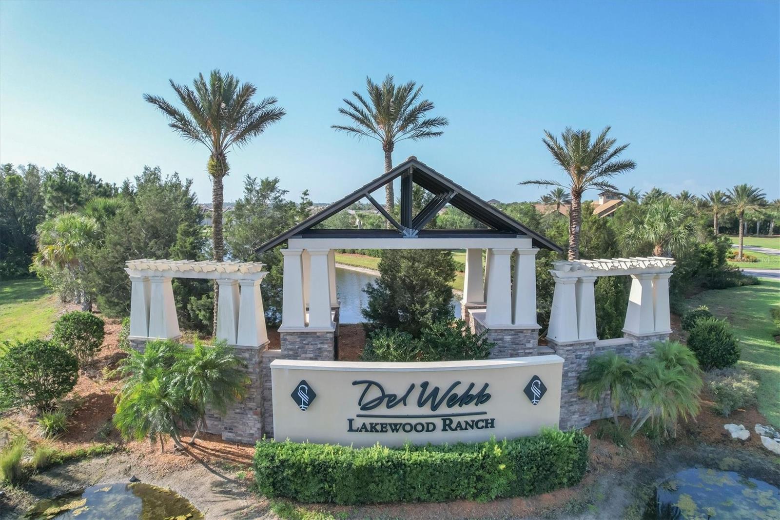 One or more photo(s) has been virtually staged. Welcome to one of the best-kept secrets in the premier 55+ Del Webb community of LAKEWOOD RANCH - where pristine condition, thoughtful design, and an unbeatable location come together in perfect harmony. Just a short stroll or golf cart ride to the amenity center, this beautifully maintained villa offers the ideal blend of privacy, comfort, and connection. This villa offers a flexible floor plan with 2 bedrooms plus a den, complete with solid French doors and a generous alcove-ideal as a third bedroom, office, or hobby space. From the moment you arrive, the curb appeal sets the tone with a paver driveway and walkway leading to a charming gated courtyard - and an inviting and private entry that feels both elegant and welcoming. Inside, the home shines with immaculate, like-new condition and newer waterproof laminate flooring flowing seamlessly throughout. The open-concept design features an extended kitchen, dining, and living space - perfectly arranged for easy everyday living and effortless entertaining. The kitchen overlooks the entire main living area, keeping everything connected and bright. Sliding glass doors lead to a brick paver, screened-in lanai, offering a peaceful outdoor retreat with a glimpse of the lake and a sense of privacy. The primary suite, privately situated at the rear of the home, offers a quiet retreat with an en-suite bath featuring dual vanities, granite countertops, a glass-enclosed shower with dual showerheads, and a spacious walk-in closet. Guests will appreciate the secondary bedroom and full bath located at the front of the home, ideal for visiting family and friends. Additional highlights include: Generac full house generator, Culligan water purification and softener systems, hurricane protection panels, freshly painted garage floor. exceptionally clean, move-in-ready condition. Residents of Del Webb Lakewood Ranch enjoy a vibrant lifestyle with resort-style amenities including a stunning pool, state-of-the-art fitness center, pickleball and tennis, social clubs, dining, and endless opportunities to connect or simply relax. All of this within Lakewood Ranch, the nation's top-ranked multi-generational community, known for its lifestyle, beauty, and convenience. Just a short ride from the renowned UTC shopping and dining complex, downtown Sarasota, and her award-winning beaches... Welcome home!