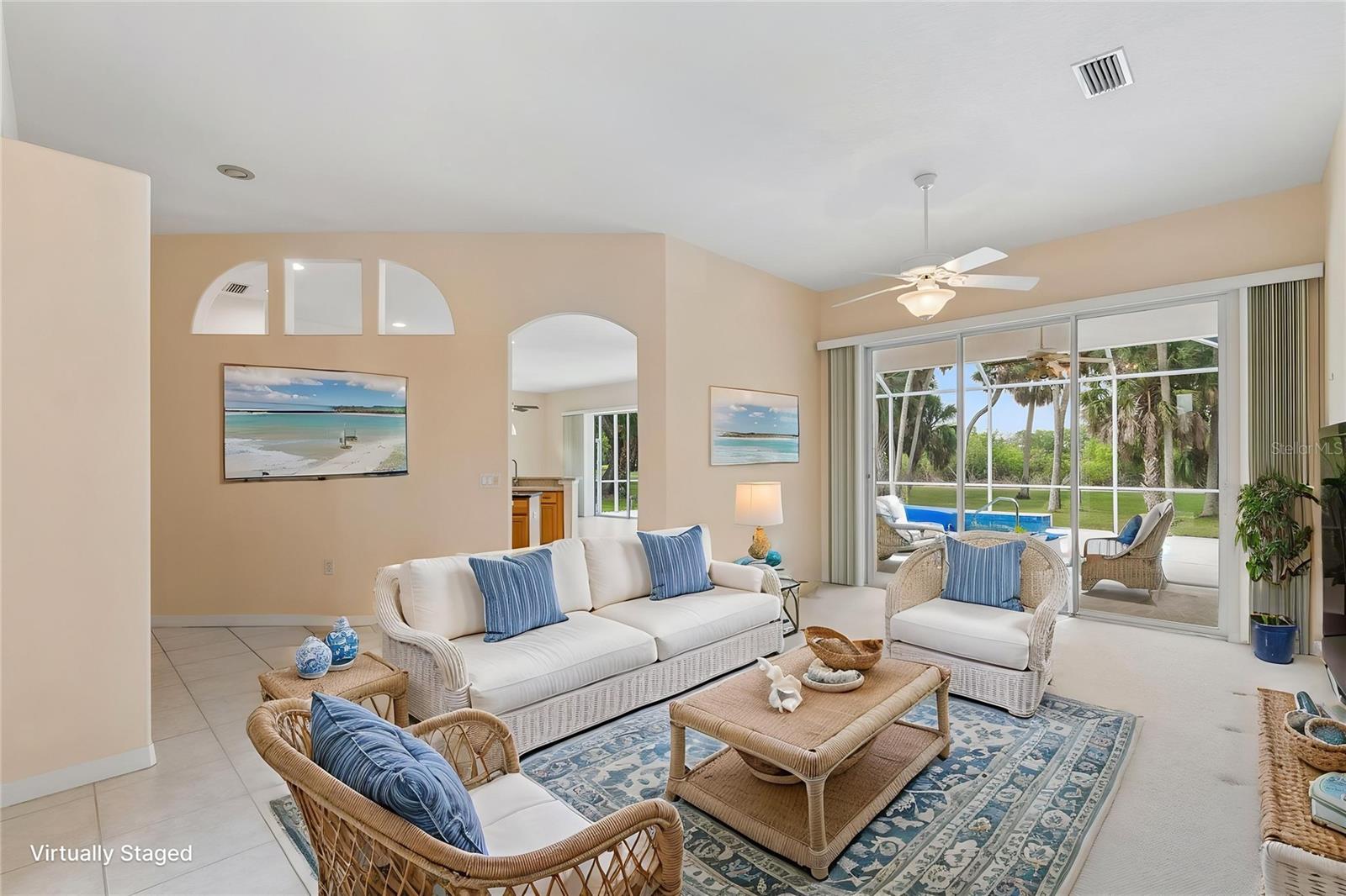 One or more photo(s) has been virtually staged. Best value in Lakewood Ranch! This 4 bedroom, 3 car garage pool home is waiting for your personal touches in Greenfield Plantation - the most affordable community in the Lakewood Ranch area with HOA fees averaging only $43 per month, and NO CDD FEES. All of the major work has been done: ROOF 2018, A/C 2020, and HOT WATER HEATER 2024. Accordian shutters in the back of the home provide wind protection if needed, and solar panels heat the pool. Inside you are greeted by a formal living room, spacious kitchen with island that is open to the family room, and a breakfast nook for everyday meals. Plus, with 4 bedrooms, there's room for everyone in the family - and if you wish, use one of the bedrooms as a home office. Don't forget, no basements in Florida, so that 3-car garage will come in really handy for both of your cars, plus room for your 'stuff'. Check out the view! The gently wooded backyard offers shade when you want it plus private screening from the golf course beyond. Adjacent to the community and within WALKING DISTANCE distance without crossing a single road are Freedom ELEMENTARY SCHOOL and Haile MIDDLE SCHOOL. Greenfield Plantation is located 2 miles from I-75 and a major shopping center - the Marketplace at Heritage Harbour which offers major national retailers like Costco, Target, Whole Foods, and Hobby Lobby; restaurants include Seasons 52, Miller's Ale House, LongHorn Steakhouse, Cold Stone Creamery and more. For health care and physical fitness, Crunch Fitness is 5 minutes away as is the Sarasota Memorial Health Care Center featuring a 7 day a week Urgent Care facility with lab and imaging services plus a primary care physicians practice. This home truly has it all, plus a fantastic location, and HOA fees that cost less than lunch for two at Panera Bread. Contact your agent for a showing today.
