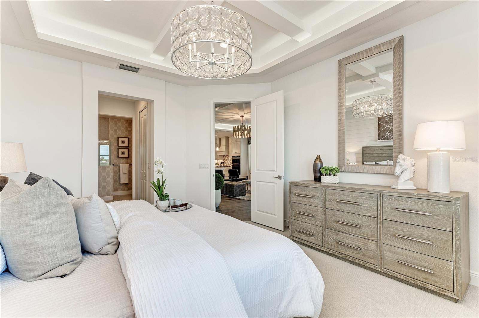 Rare, furnished model home available in Watercolor Place. Introducing the Paradise! Contemporary, stylish, and filled with charm from top to bottom, there’s a reason why we call this two-bedroom, two-bathroom home Paradise… Just step inside and feel its undeniable magic. A large entryway leads right into the beautiful kitchen, which provides all the space you need to create and enjoy life’s best moments, from birthday dinners to holiday celebrations to simple, weeknight meals with family. Past the gourmet kitchen, an abundant great room opens up to a luxurious lanai that truly makes every day feel like vacation. But the luxury doesn’t stop there — just off of the lanai, a stunning owner’s suite awaits with two walk-in closets and a spa-like bathroom with dual vanities and a walk-in shower. Enjoy the comfort of a private suite that understands exactly how you love to relax. Best of all, the Paradise home is just as convenient as it is beautiful — a well-placed laundry room, a second bedroom and bathroom, and a two-car garage with luggage shelves add ease to your daily life. With the perfect amount of room to be your most comfortable self, your Paradise home truly is your greatest treasure.
